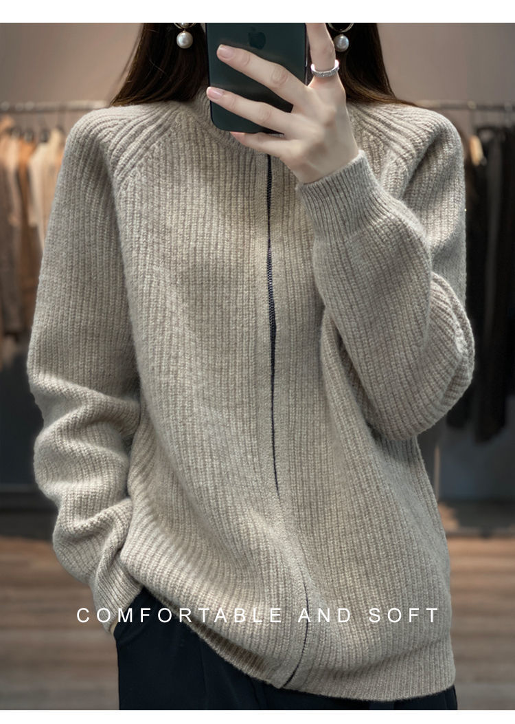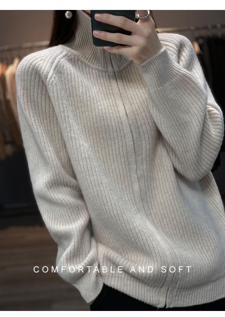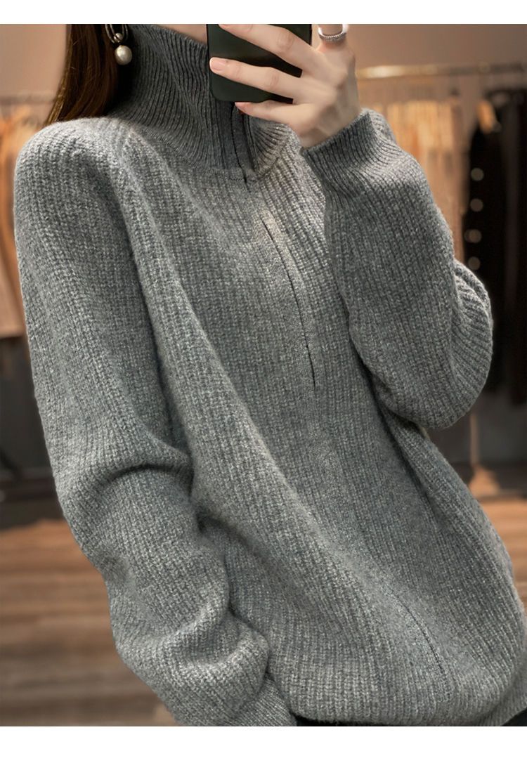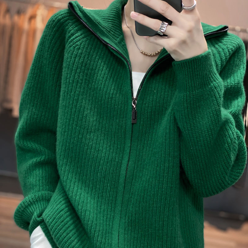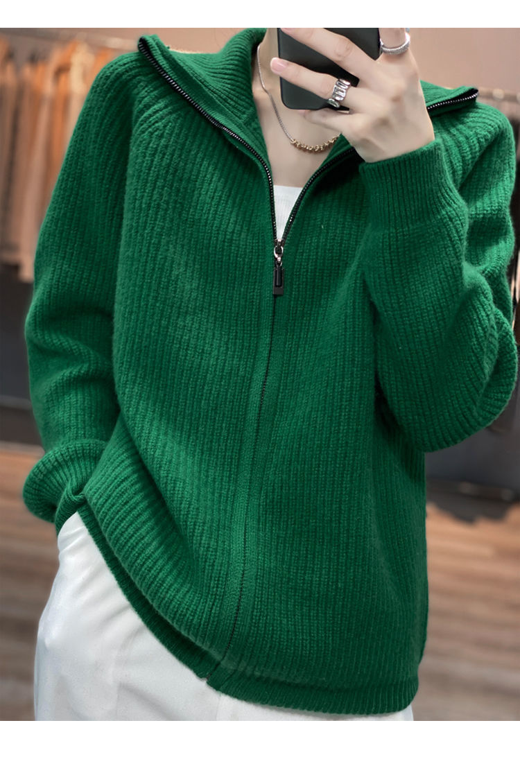 [양털] 솔리드 컬러 캐시미어 가디건 여성 루즈 스탠드 칼라 지퍼 스웨터 울 스웨터 짧은 코트 두꺼운