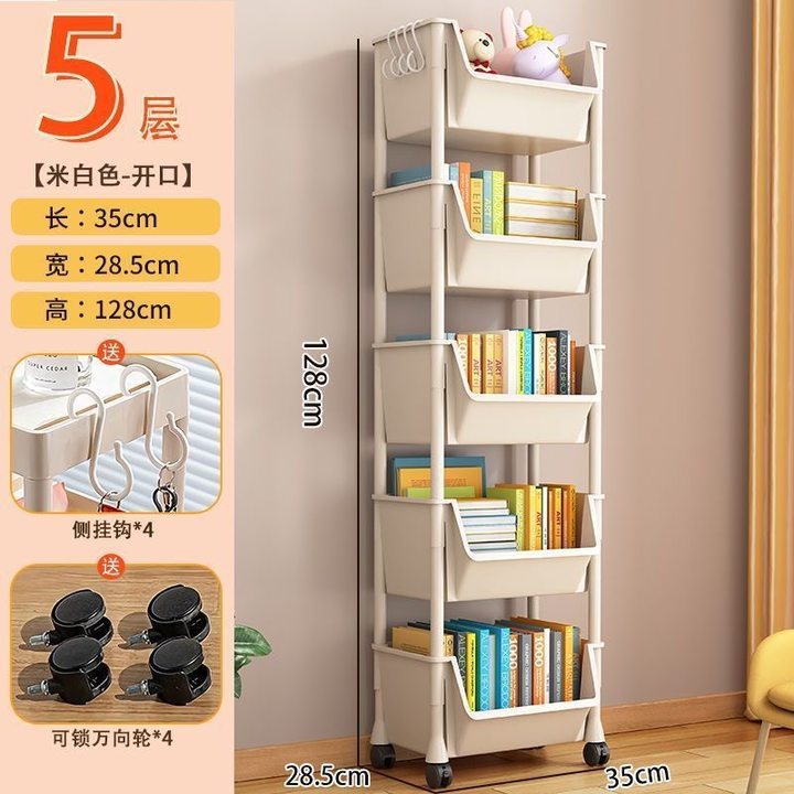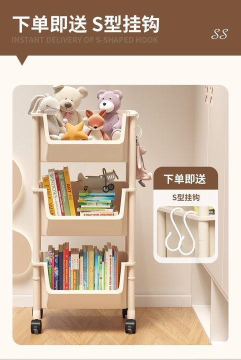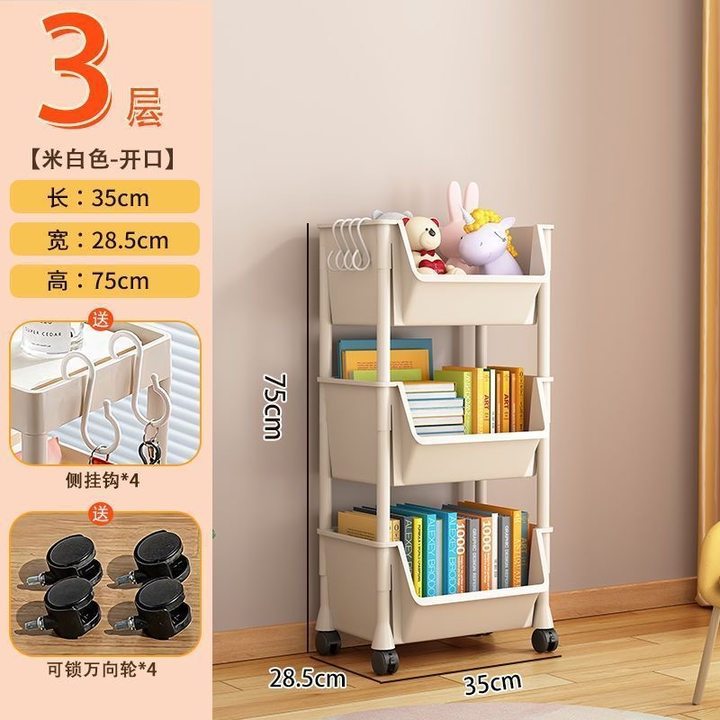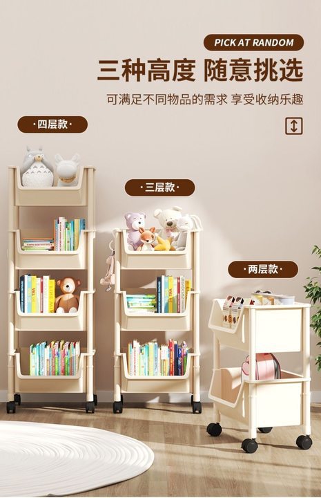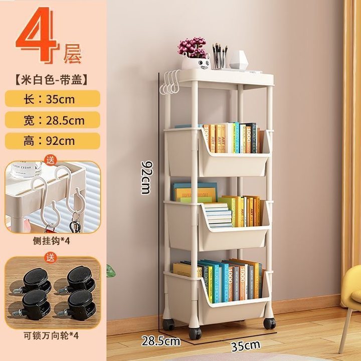 바퀴가 달린 다층 간단한 책장 가정용 침대 옆 바닥 간식 장난감 보관 랙 이동식 카트 보관 랙