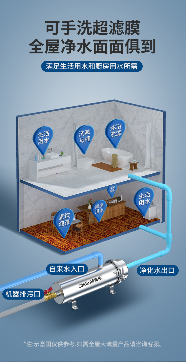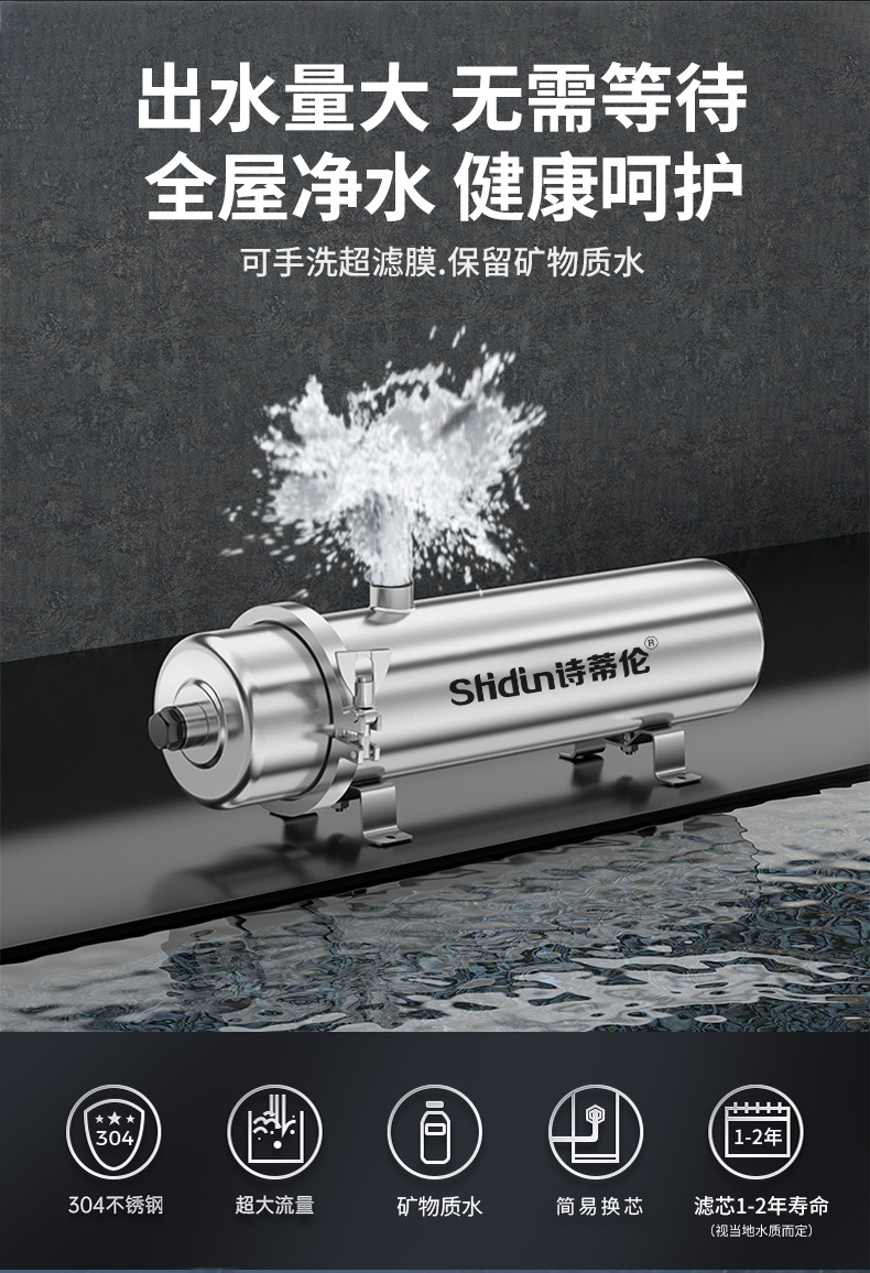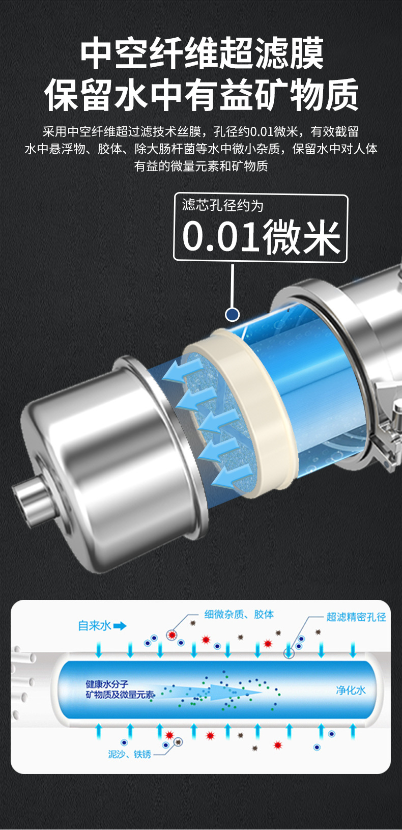 PVDF 대형 파이프라인 기계 전가정용 정수기 가정용 스테인리스 스틸 라이닝 초미세 여과기 황토수 우물물 필터스토어 가기