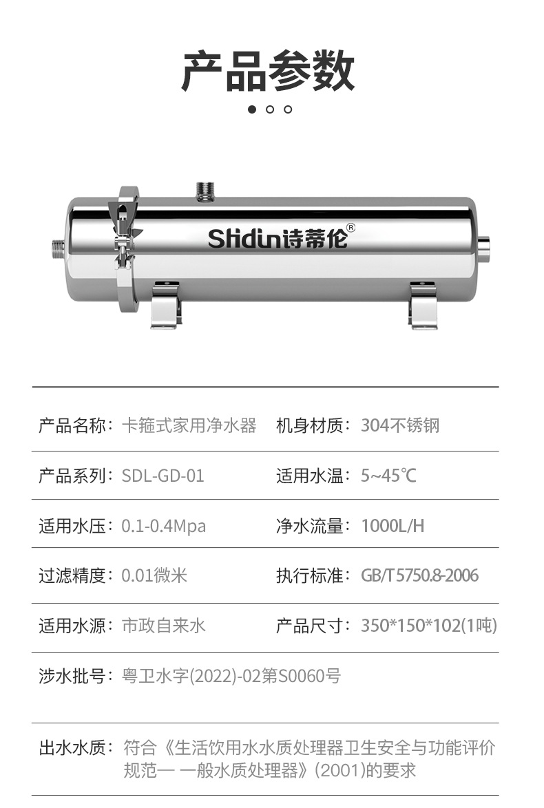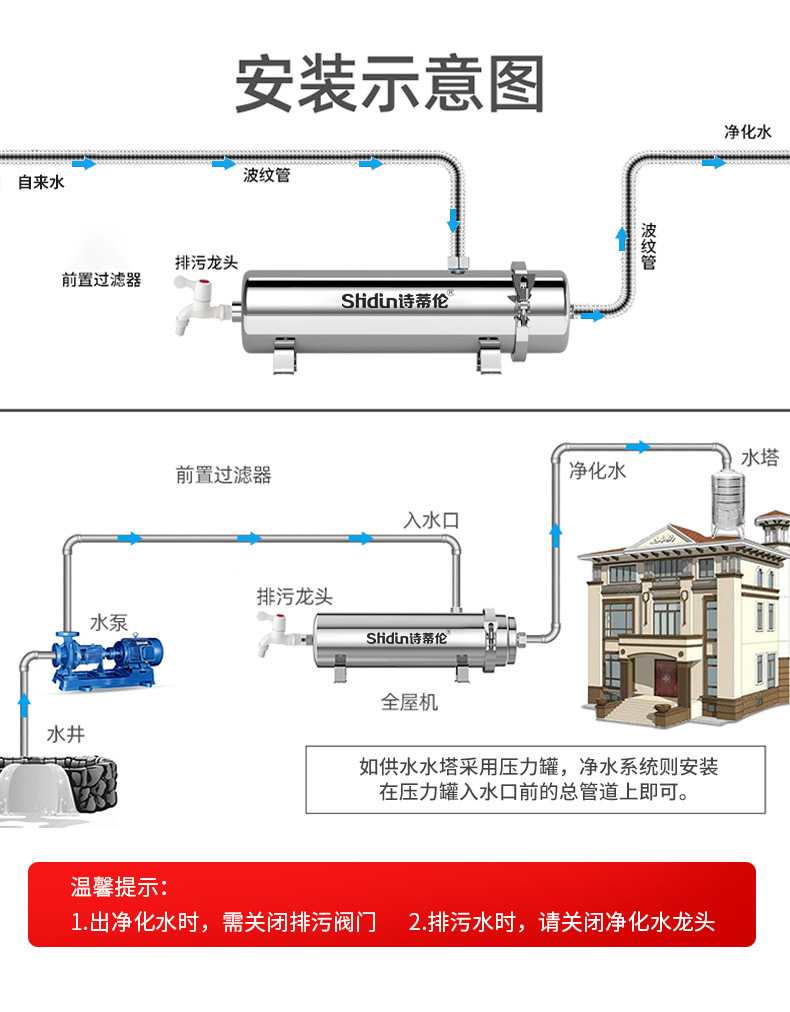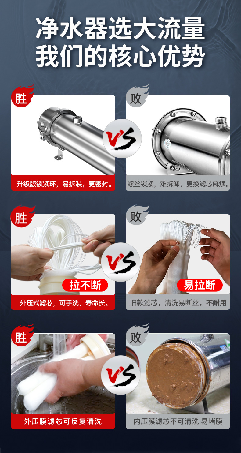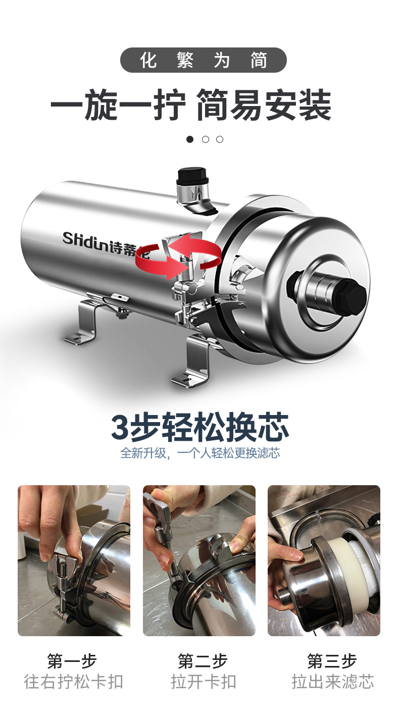 PVDF 대형 파이프라인 기계 전가정용 정수기 가정용 스테인리스 스틸 라이닝 초미세 여과기 황토수 우물물 필터스토어 가기