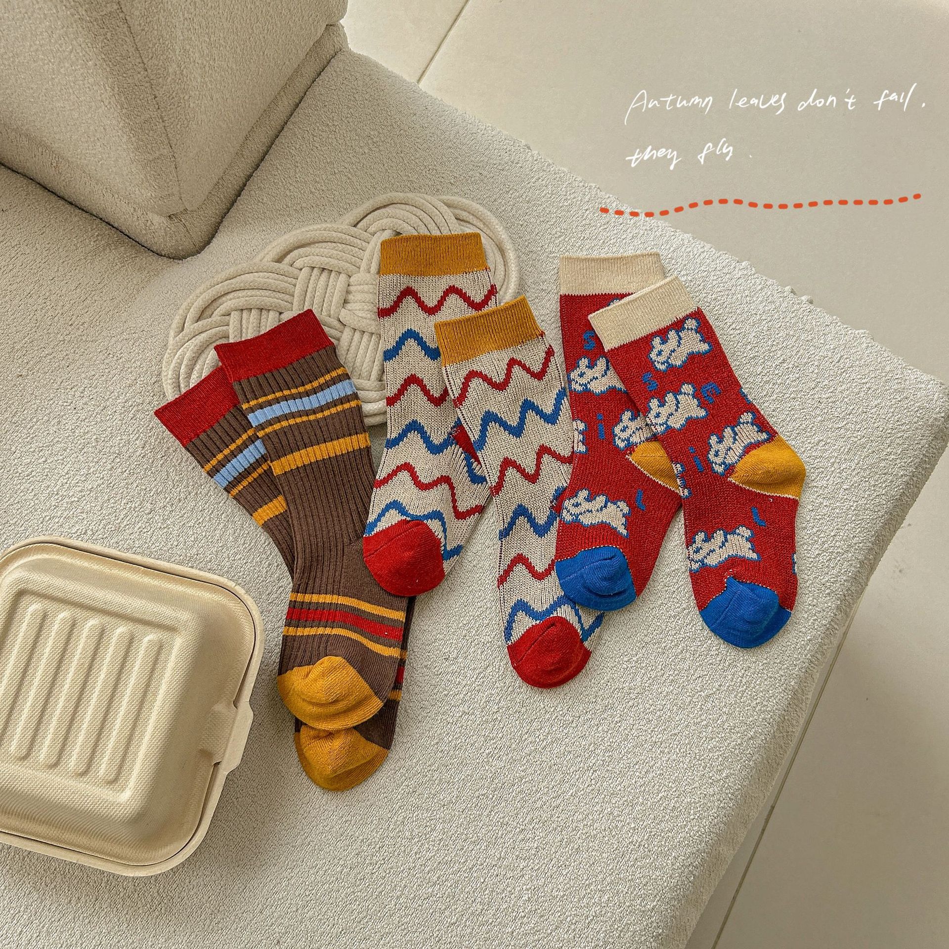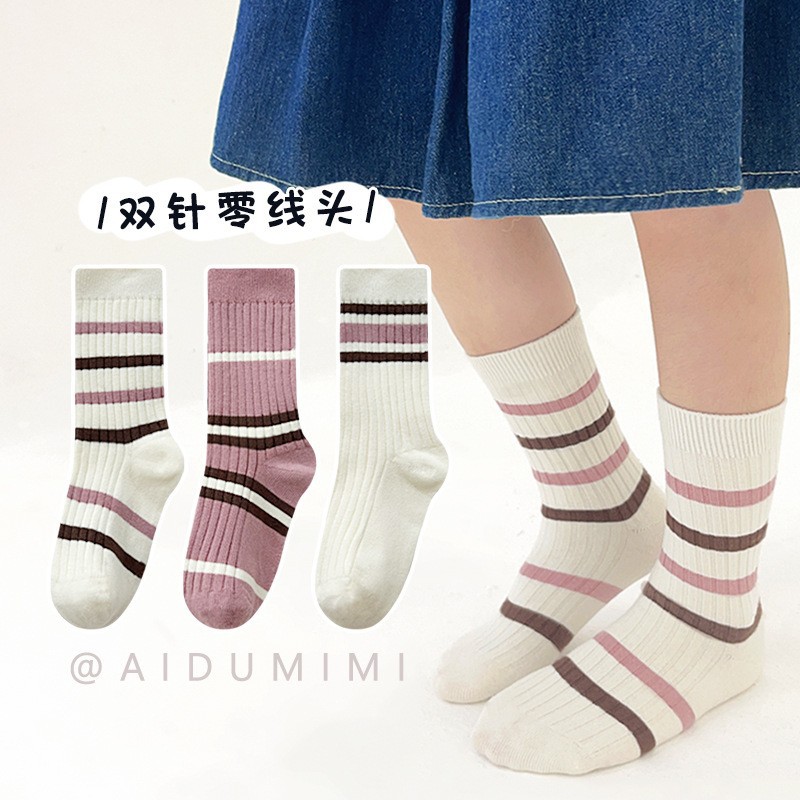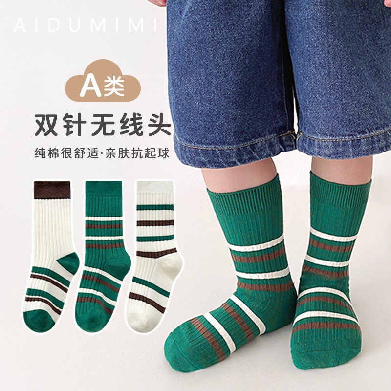 어린이 양말 가을 겨울 신상품 이중 바늘 중간 길이 양말 한국 스타일 레트로 남아 여아 아기 스포츠 트렌디 양말 도매