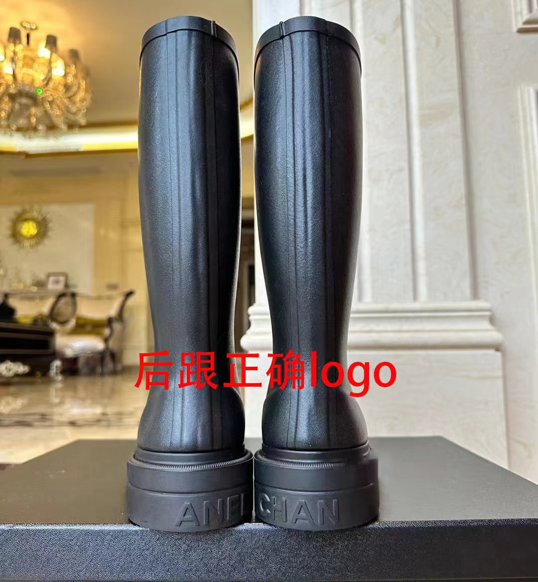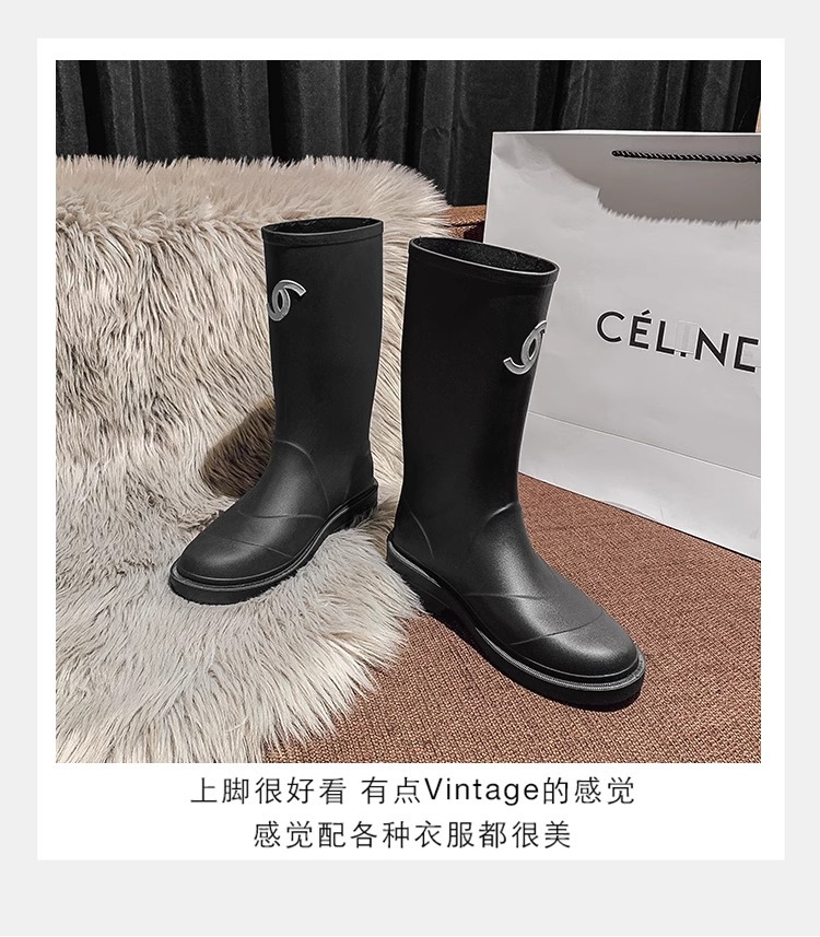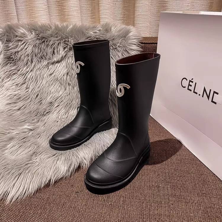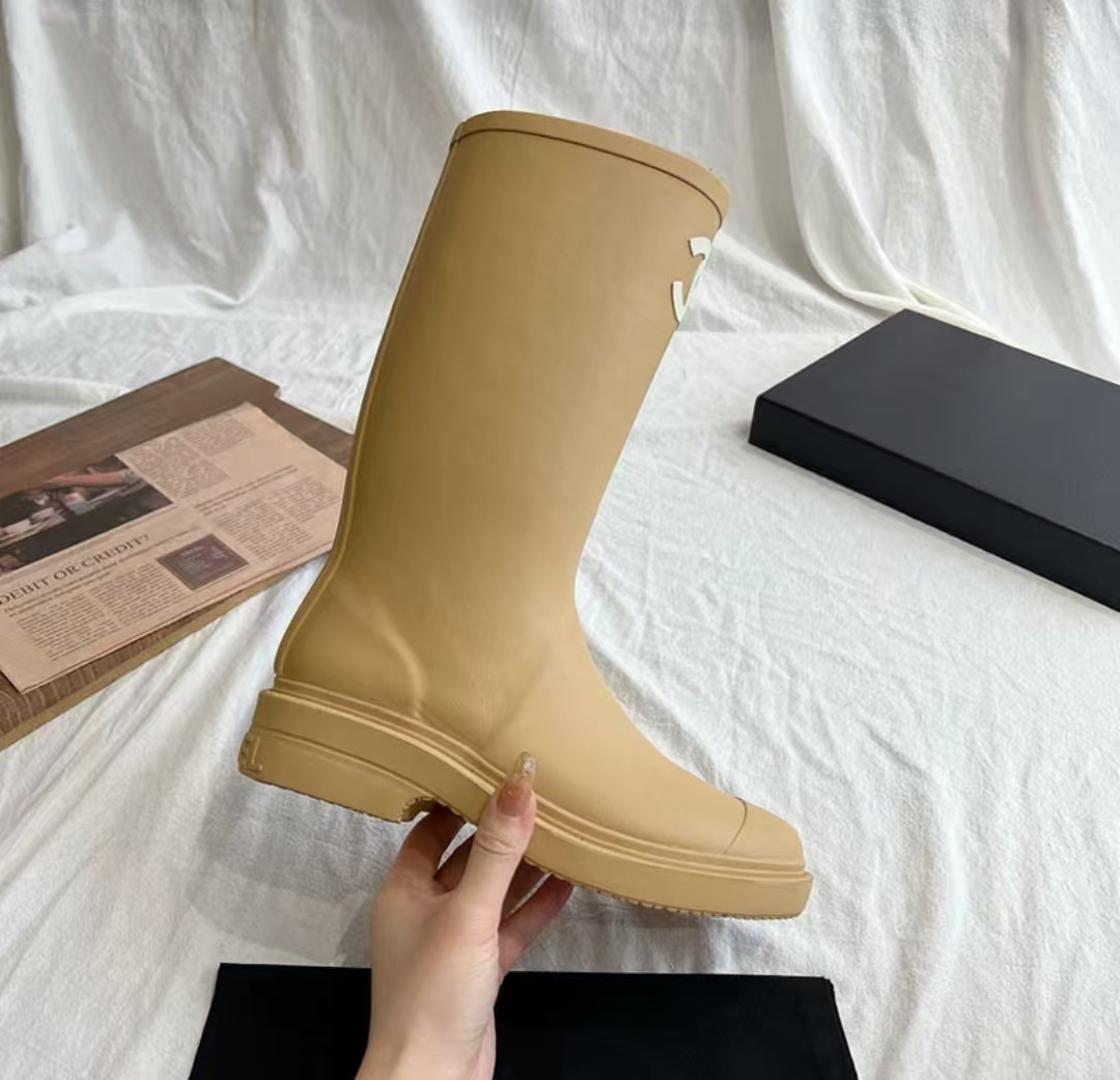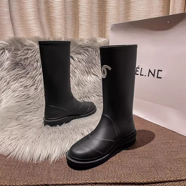 고급형 2025년 신상 가을 겨울 블랙 라운드토 하이탑 라이더 부츠 미끄럼 방지 워터 부츠 샤넬 스타일 워터 부츠 롱부츠스토어 가기