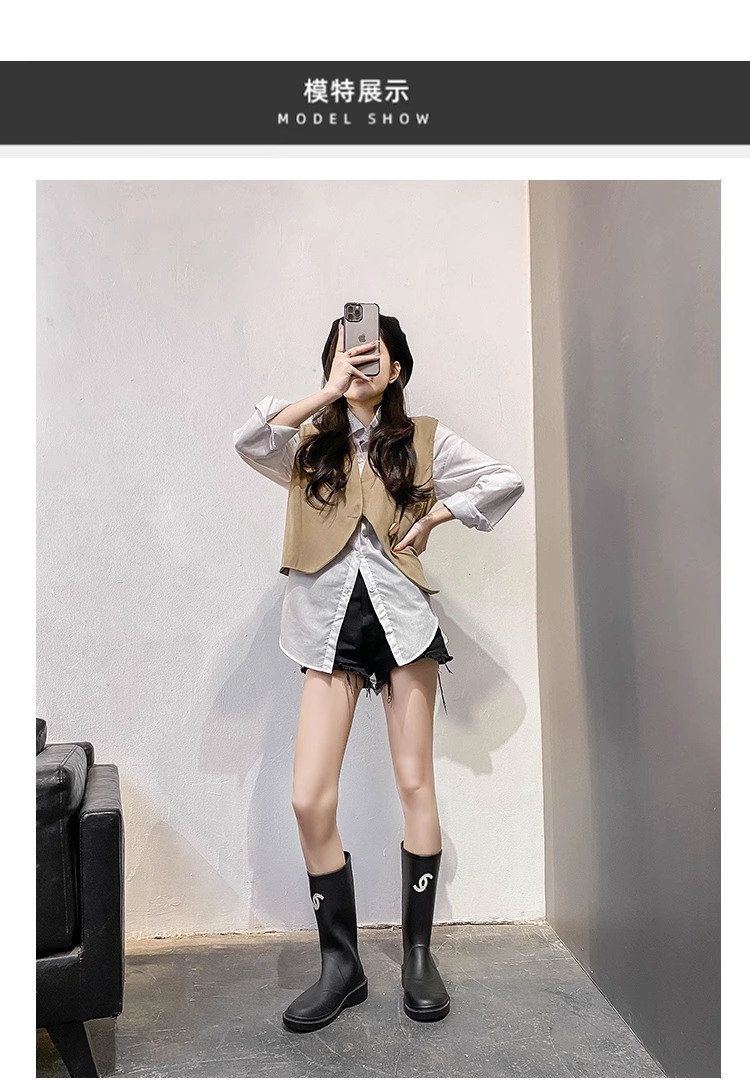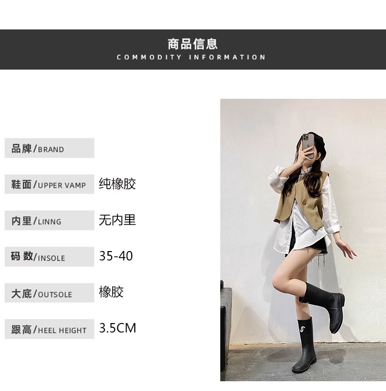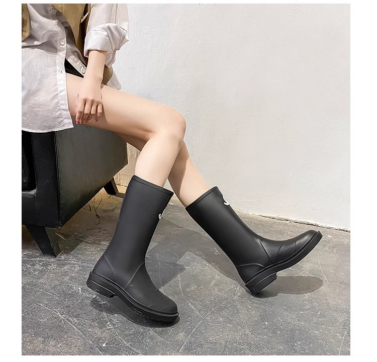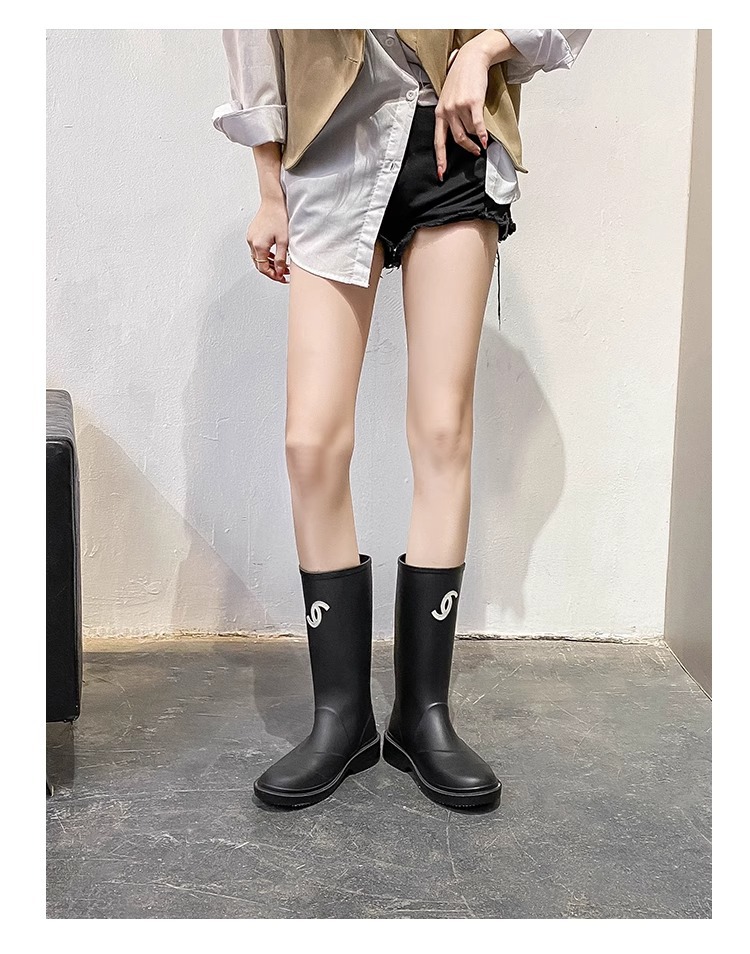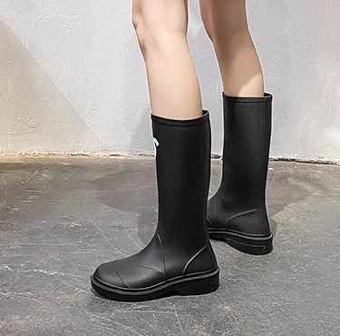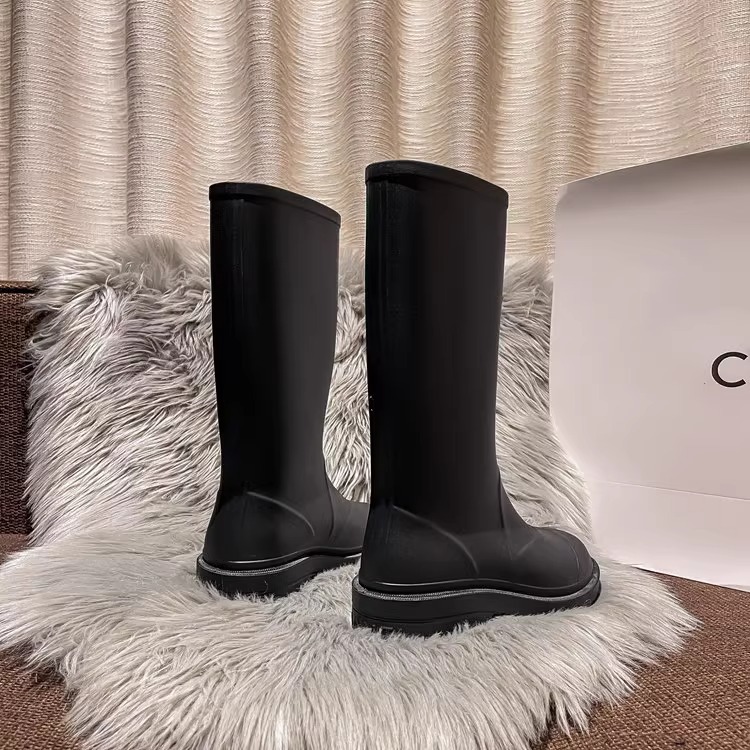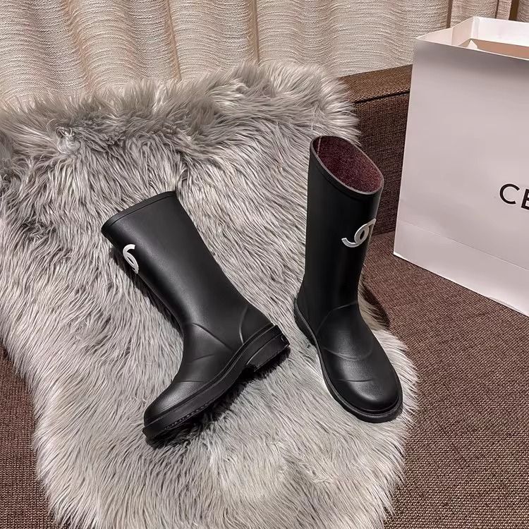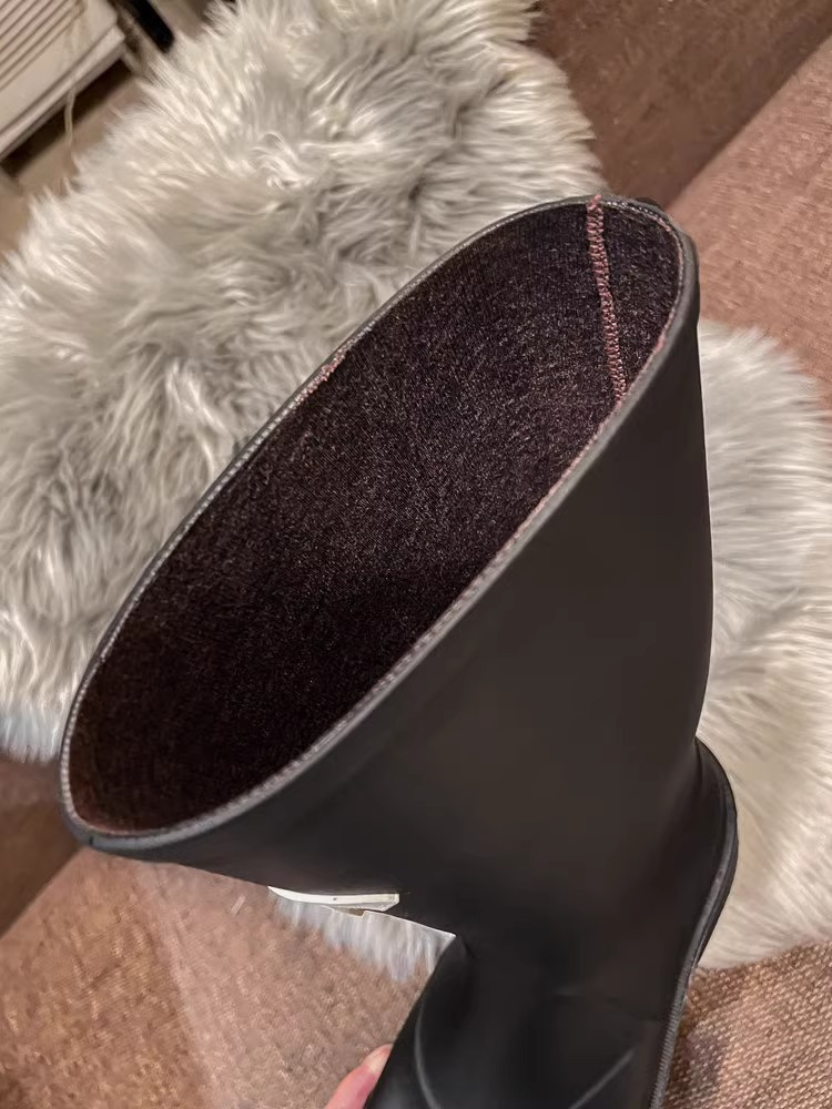 고급형 2025년 신상 가을 겨울 블랙 라운드토 하이탑 라이더 부츠 미끄럼 방지 워터 부츠 샤넬 스타일 워터 부츠 롱부츠스토어 가기