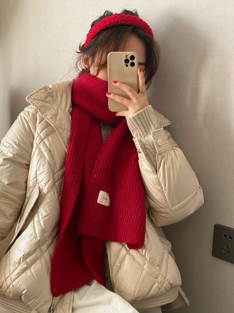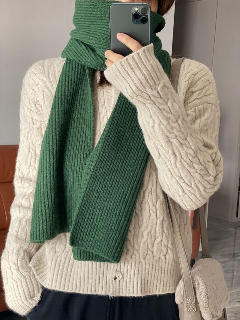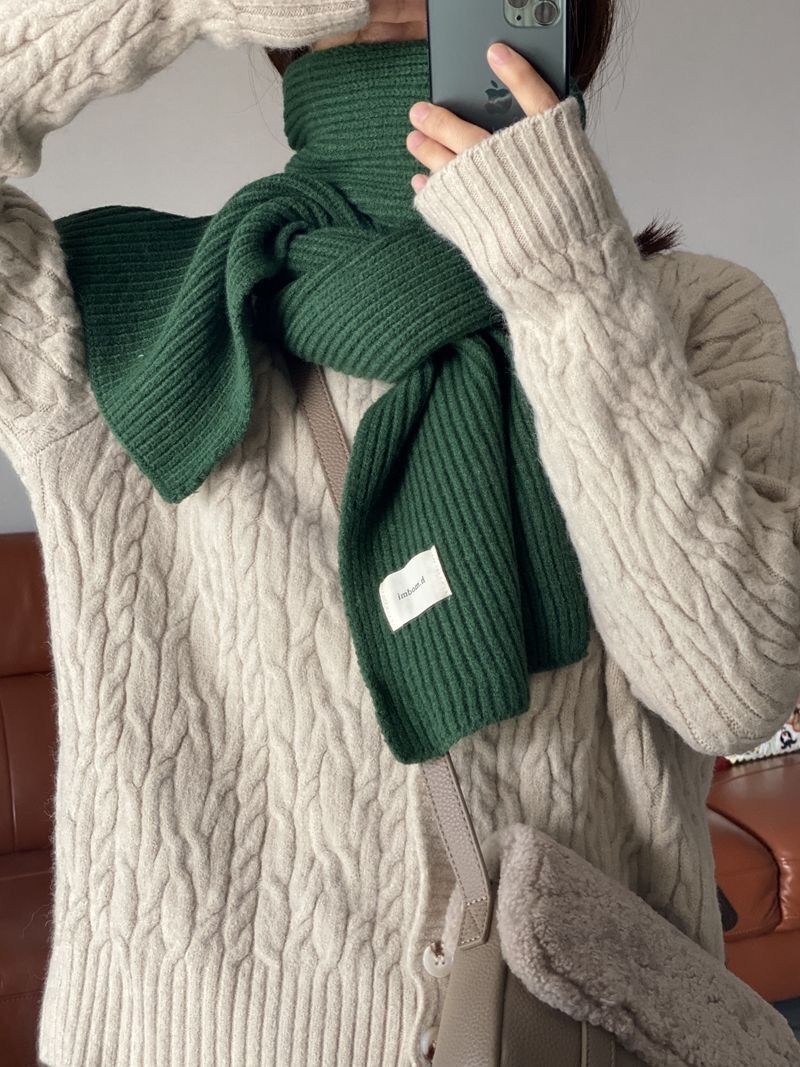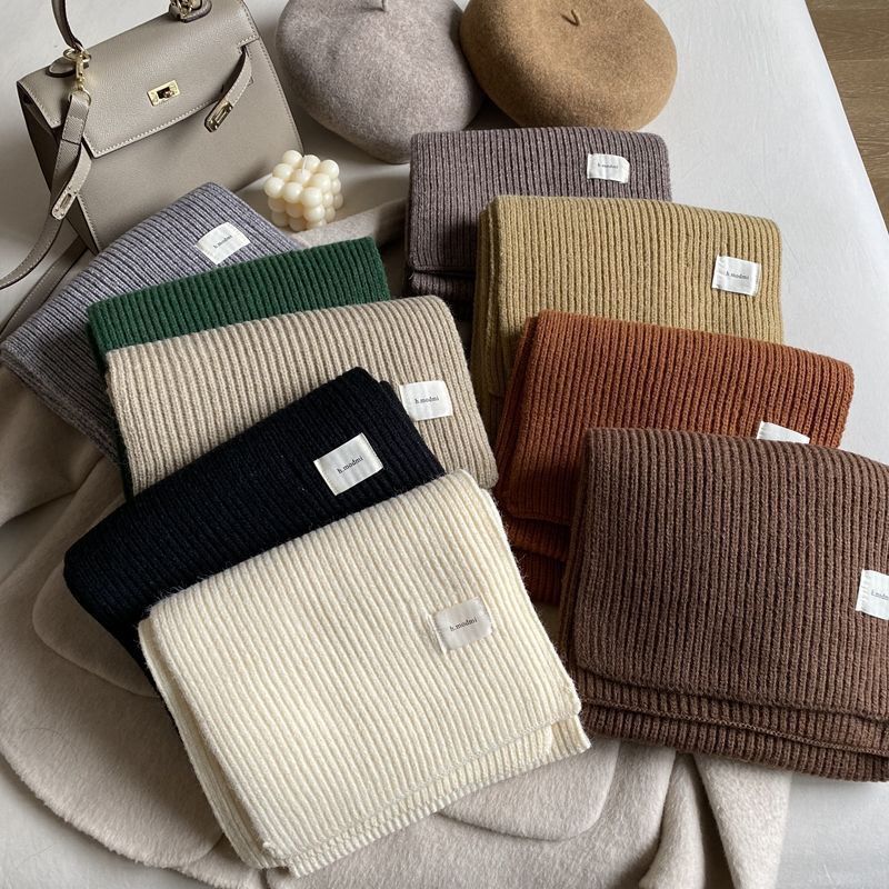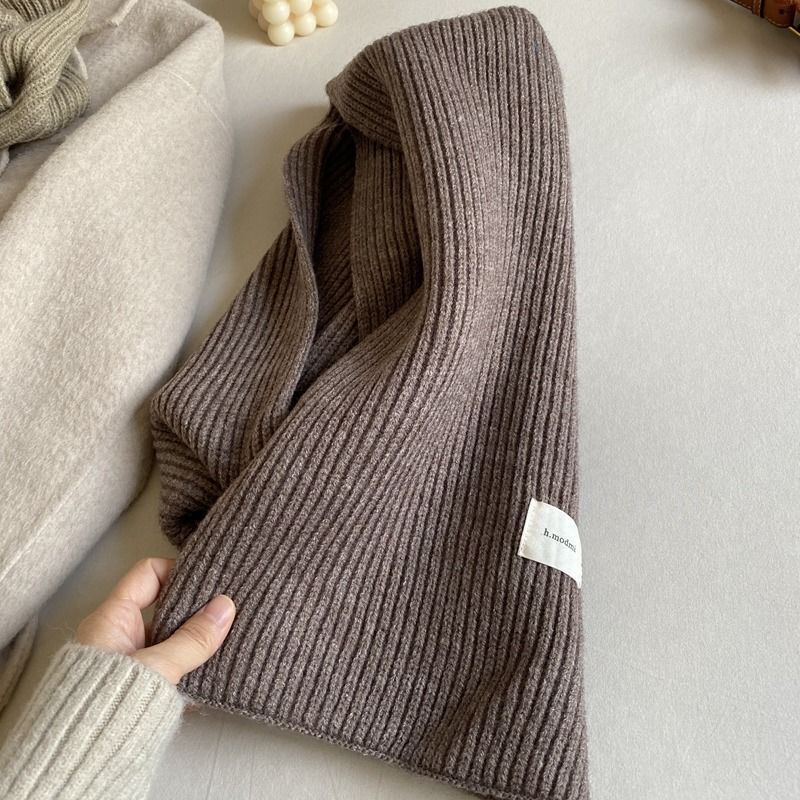커피 단색 니트 스카프 여성의 가을과 겨울 한국 스타일 학생 울 모든 매치 따뜻한 두꺼운 스카프 커플 트렌디