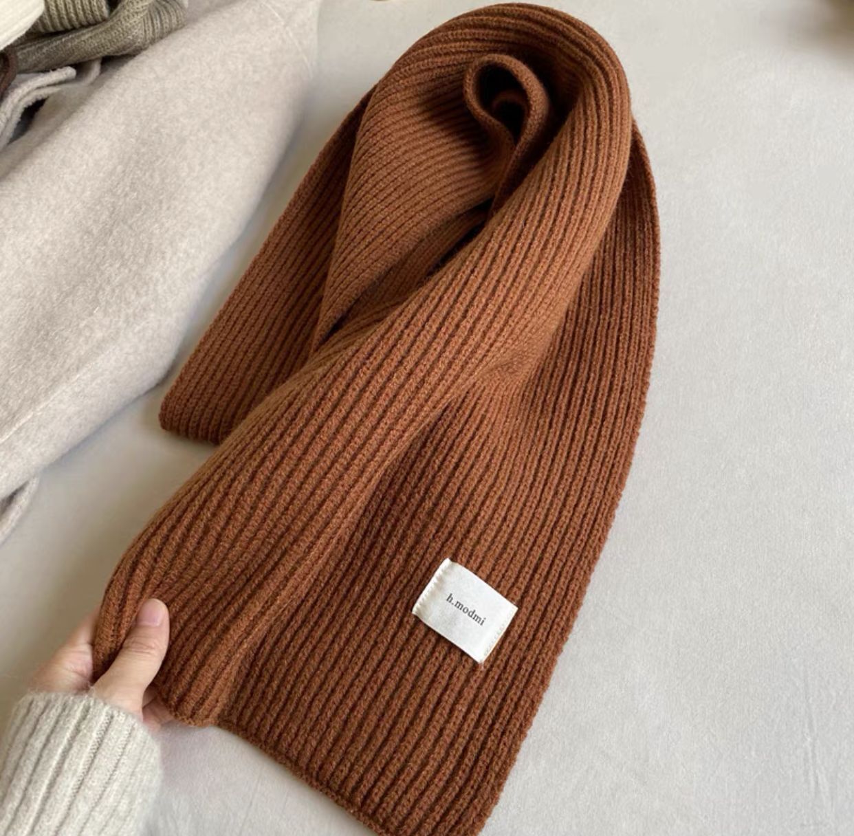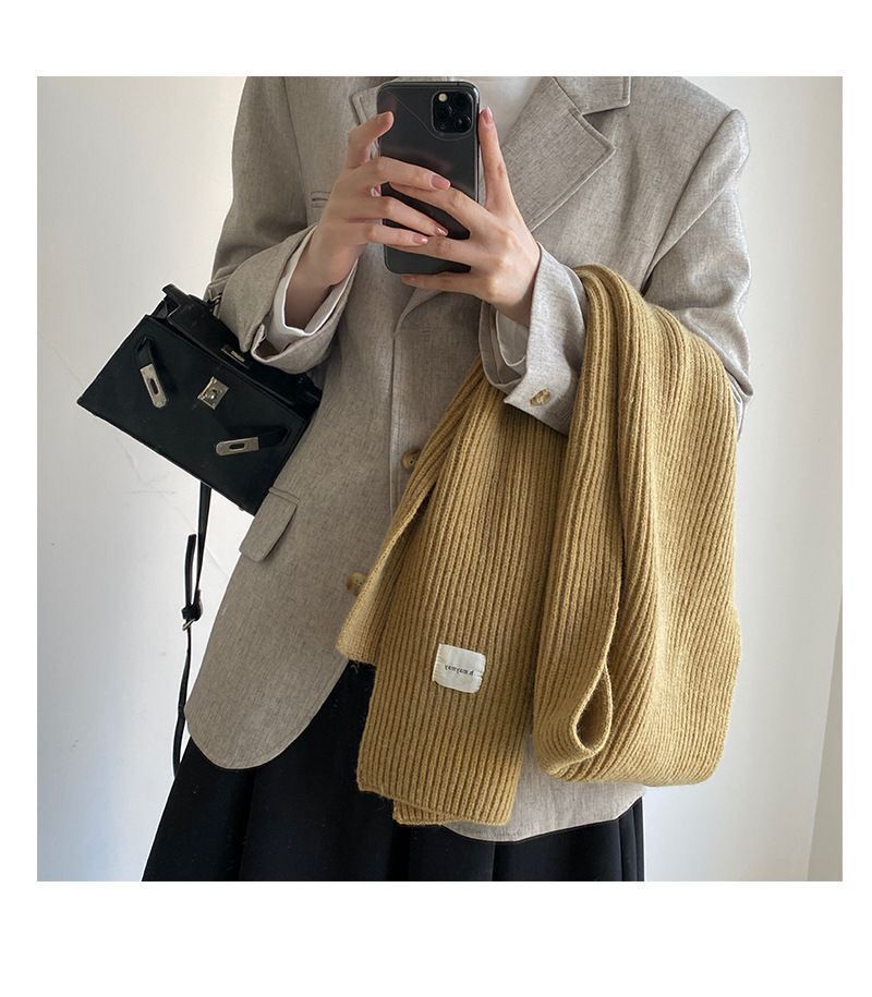 커피 단색 니트 스카프 여성의 가을과 겨울 한국 스타일 학생 울 모든 매치 따뜻한 두꺼운 스카프 커플 트렌디스토어 가기