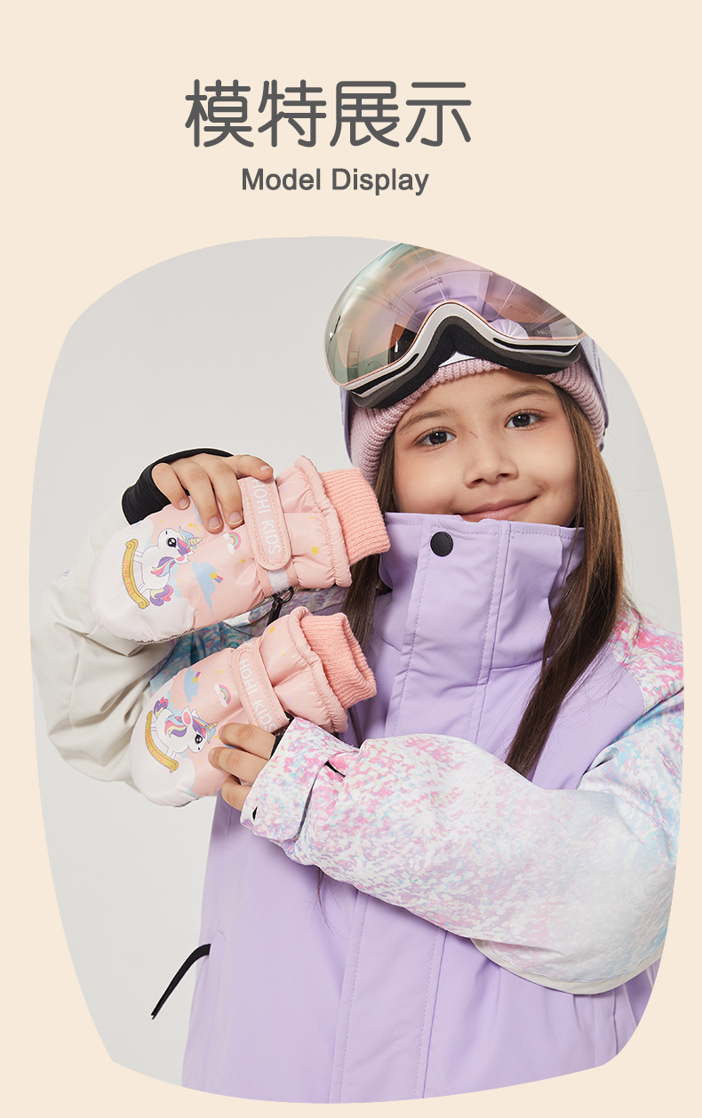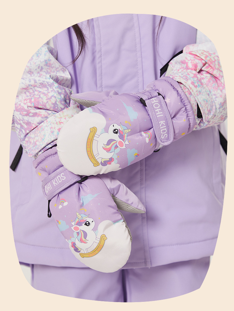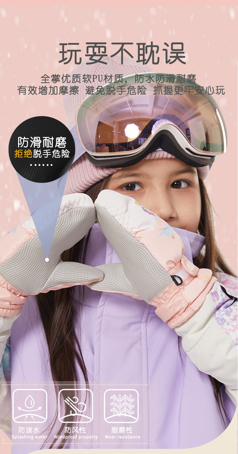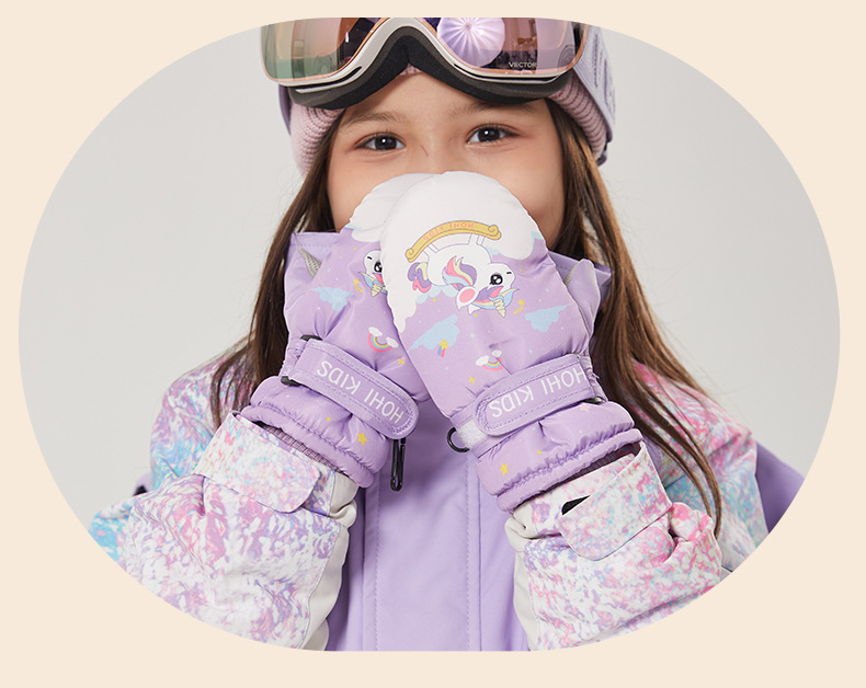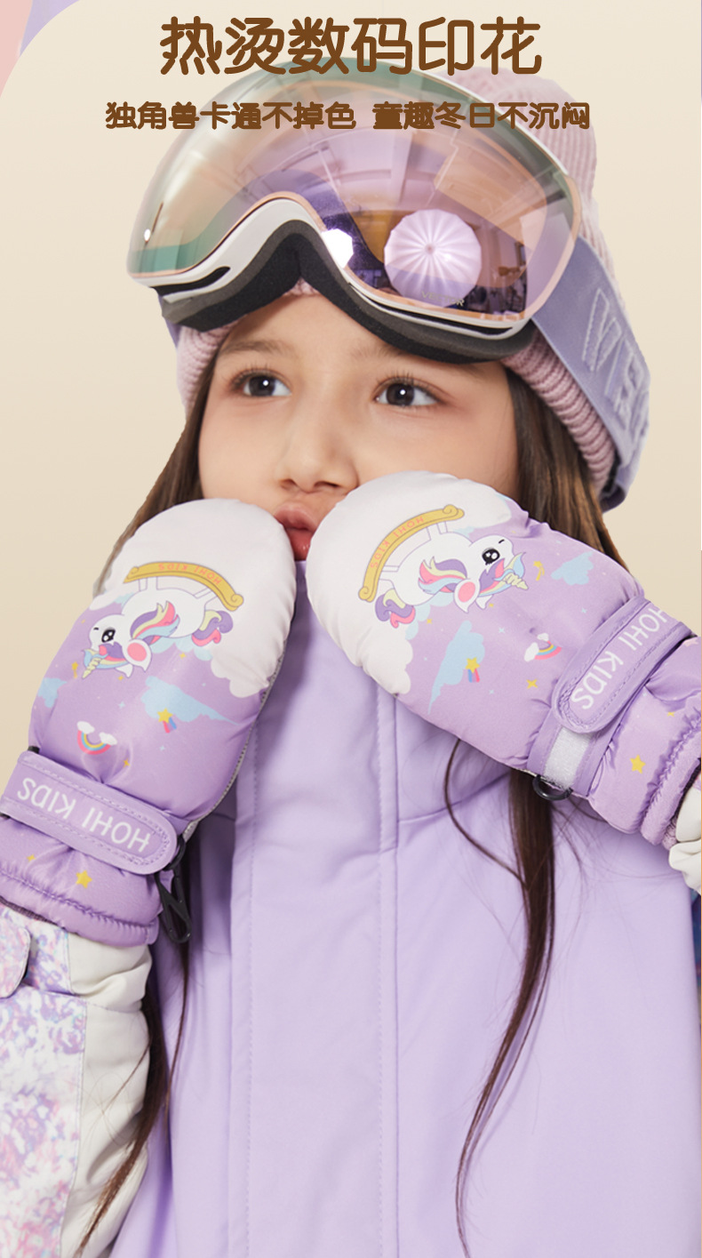 제조업체 재고 유니콘 어린이 스키 장갑 겨울 소녀 소년 아기 따뜻한 기모 두껍게 면화