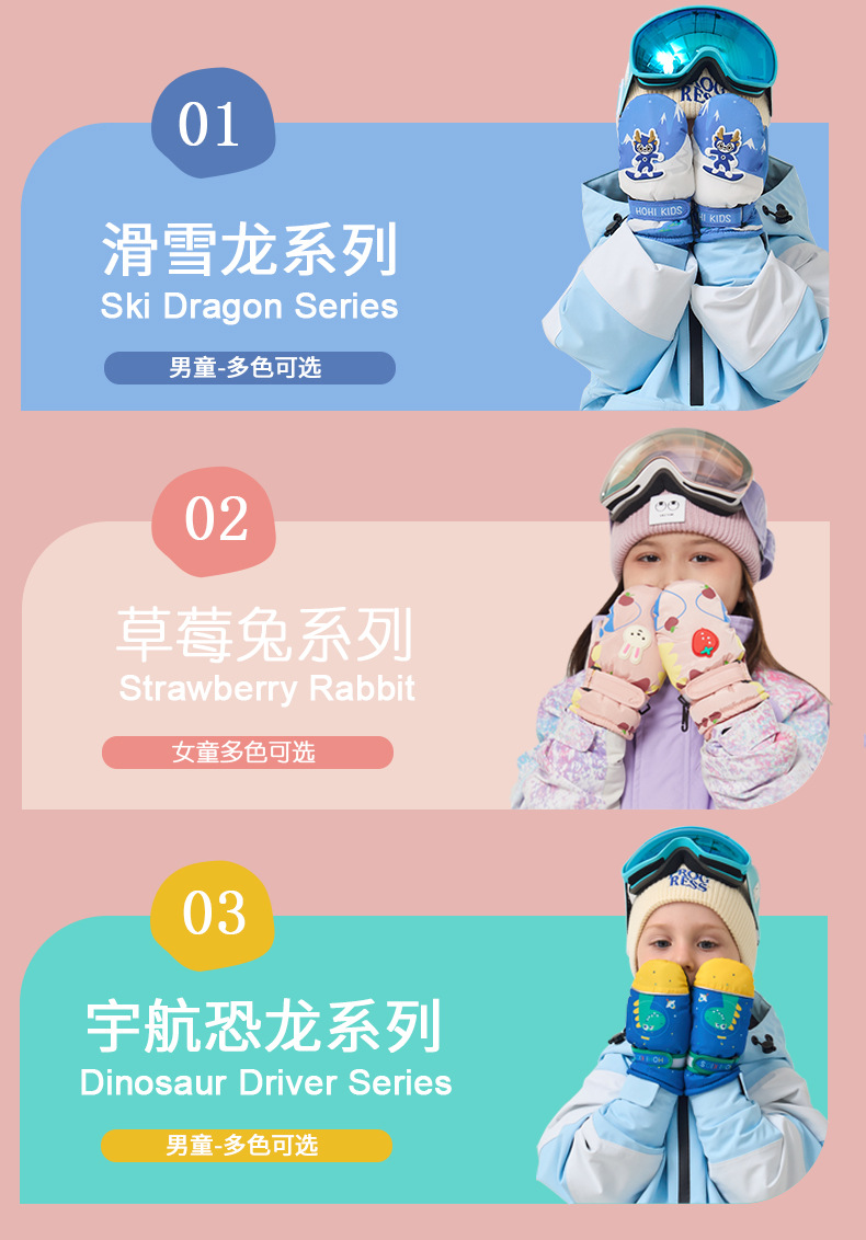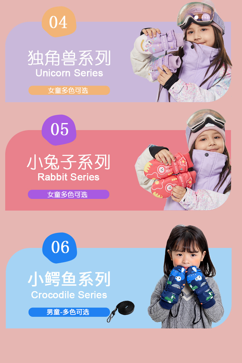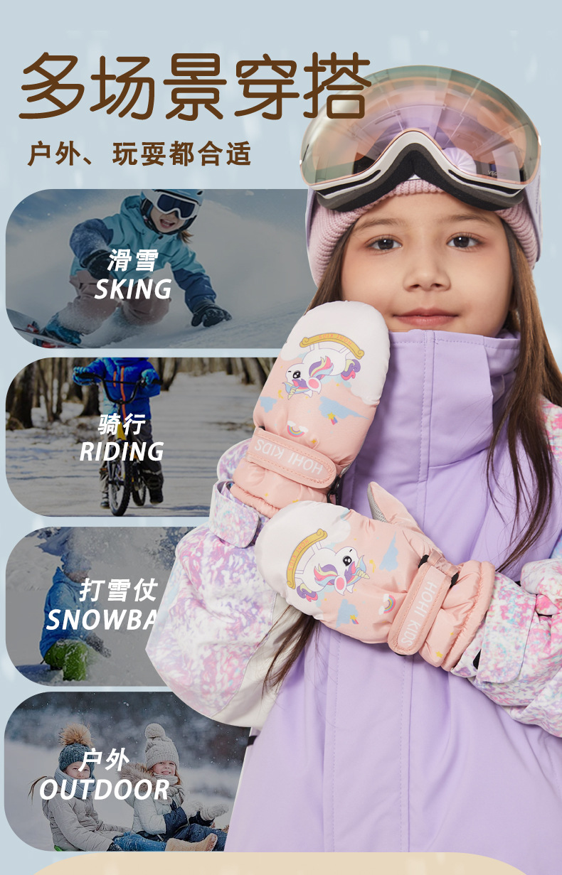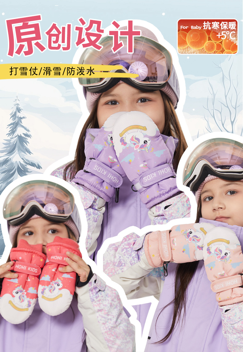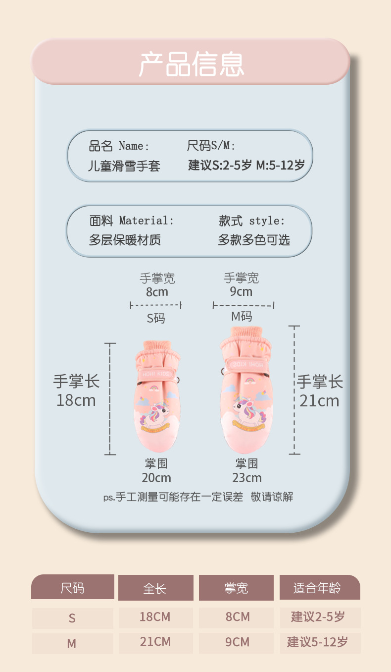 제조업체 재고 유니콘 어린이 스키 장갑 겨울 소녀 소년 아기 따뜻한 기모 두껍게 면화