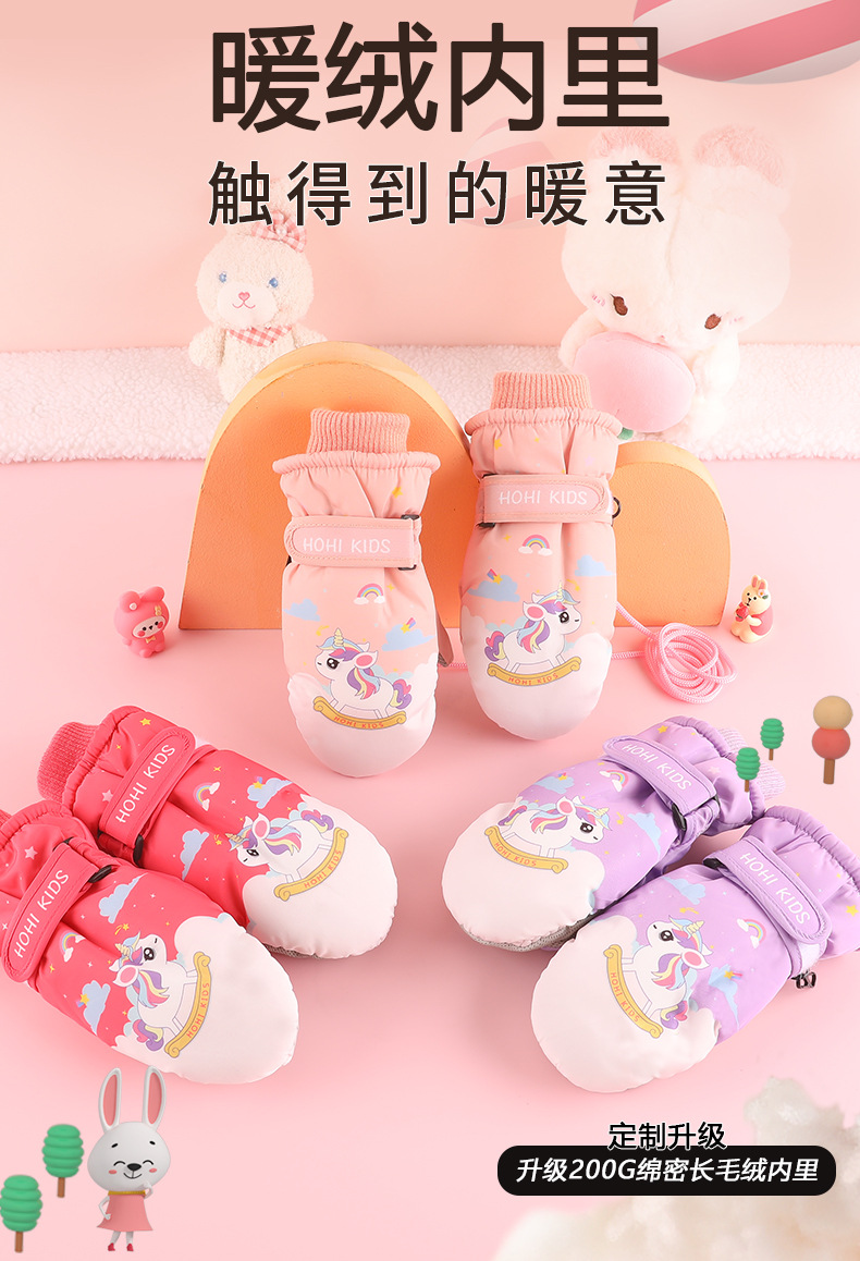 제조업체 재고 유니콘 어린이 스키 장갑 겨울 소녀 소년 아기 따뜻한 기모 두껍게 면화스토어 가기