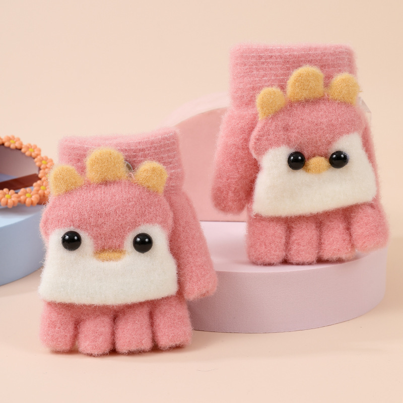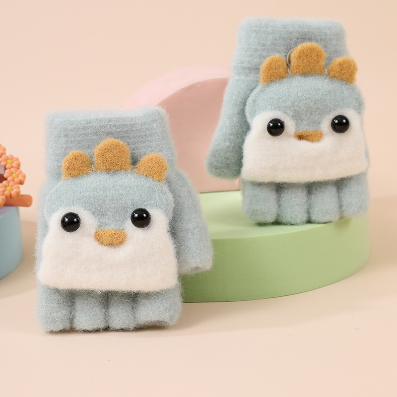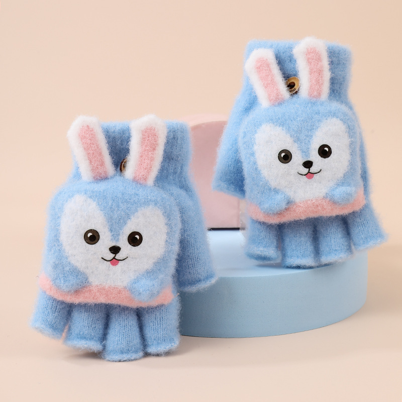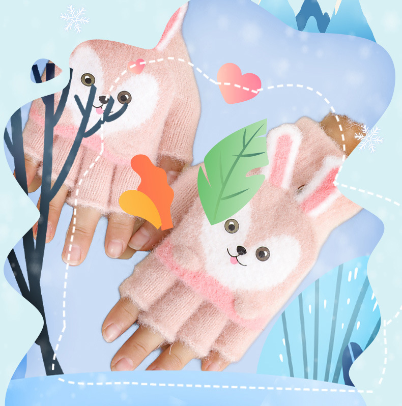어린이 귀여운 만화 플립 장갑 소녀 겨울 기모 따뜻한 소녀 반 손가락 코트 소년 가을과 겨울 손가락 분할