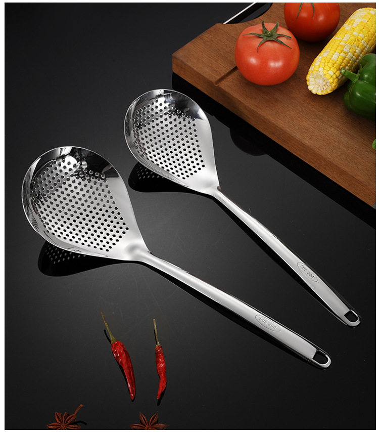 304 두꺼운 큰 소쿠리 냄비 소쿠리 고추 소쿠리 만두 국수 배수 숟가락 긴 손잡이 튀긴 숟가락