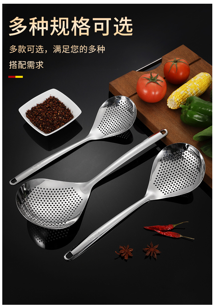 304 두꺼운 큰 소쿠리 냄비 소쿠리 고추 소쿠리 만두 국수 배수 숟가락 긴 손잡이 튀긴 숟가락스토어 가기