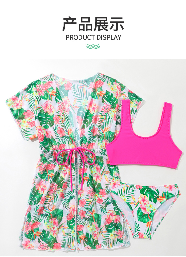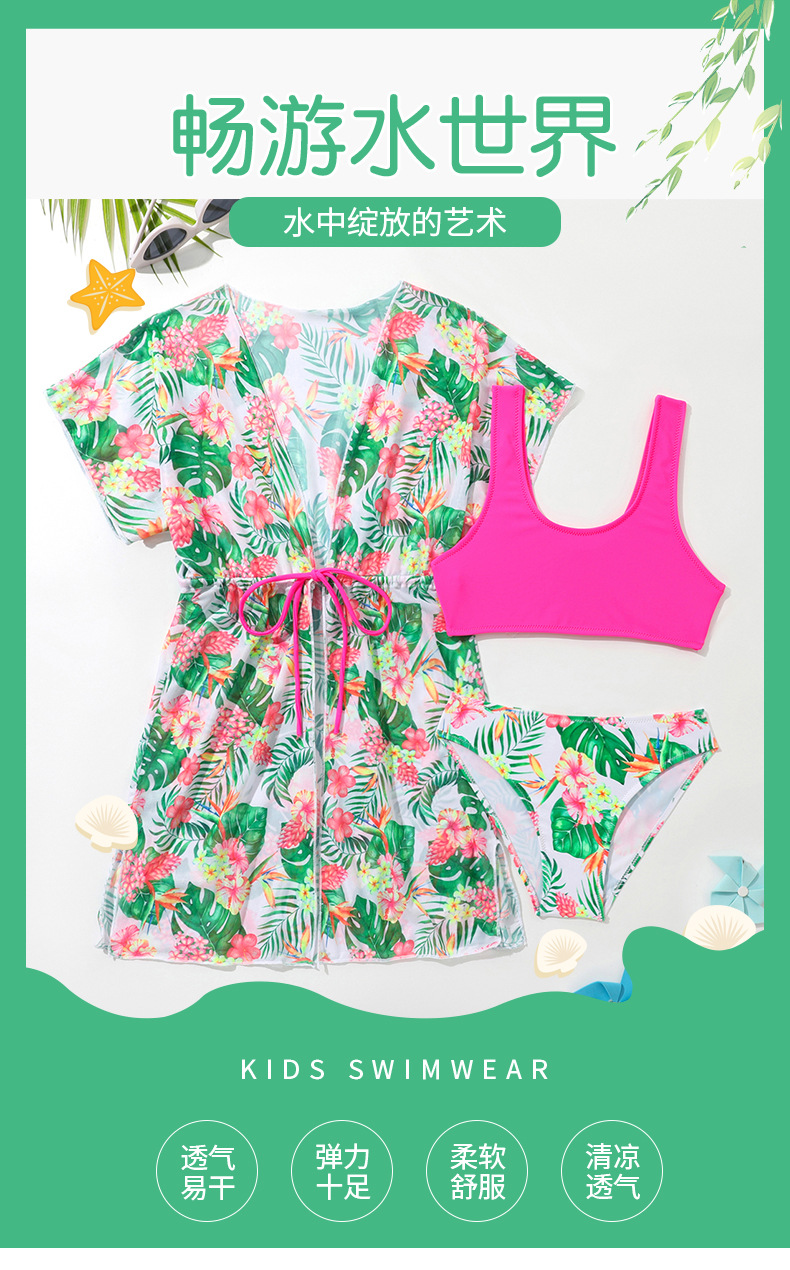 2025 여자 스플릿 수영복 여자 3 피스 컬러 크로스 국경 아마존 새로운 어린이 스플릿 블라우스 수영복스토어 가기
