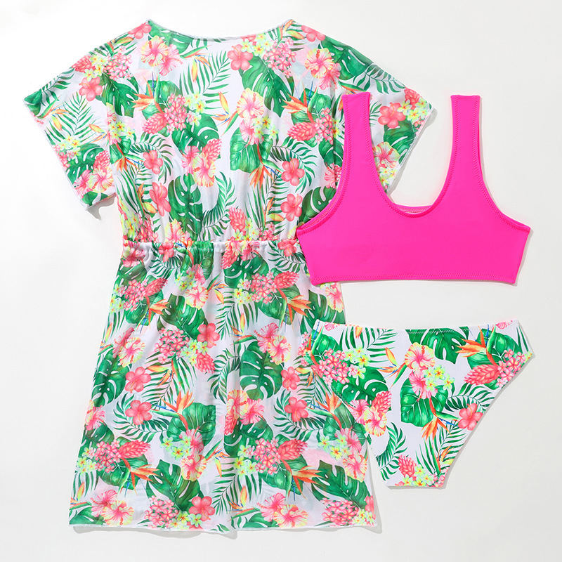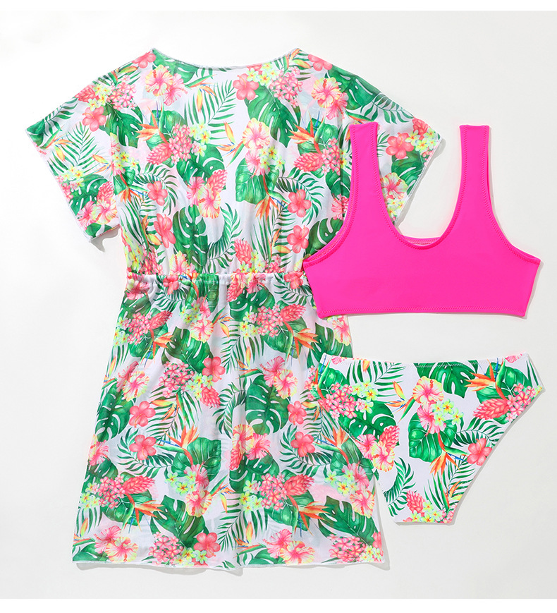 2025 여자 스플릿 수영복 여자 3 피스 컬러 크로스 국경 아마존 새로운 어린이 스플릿 블라우스 수영복
