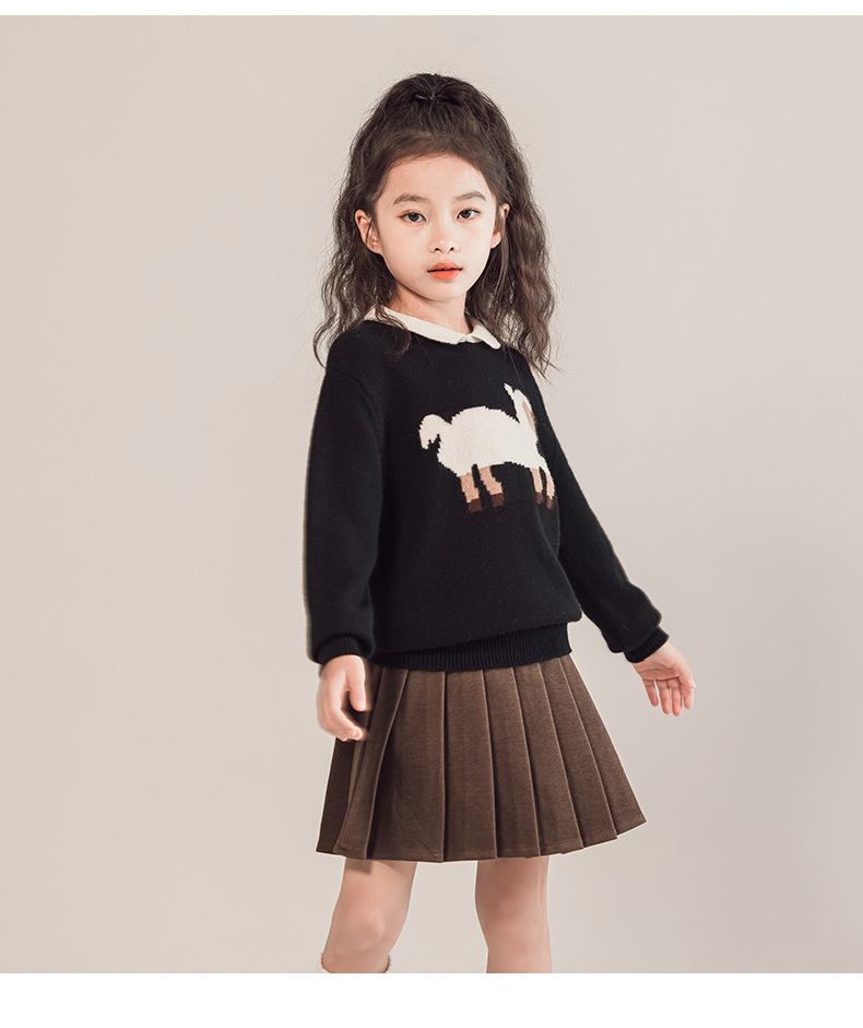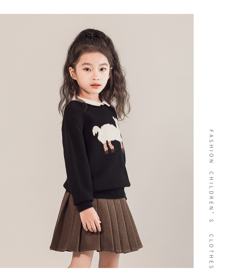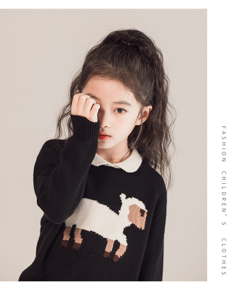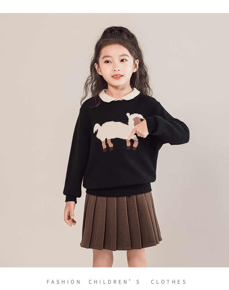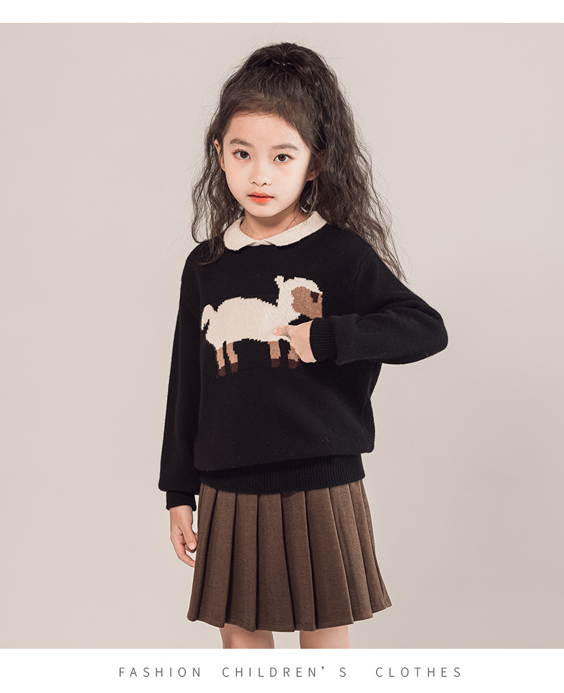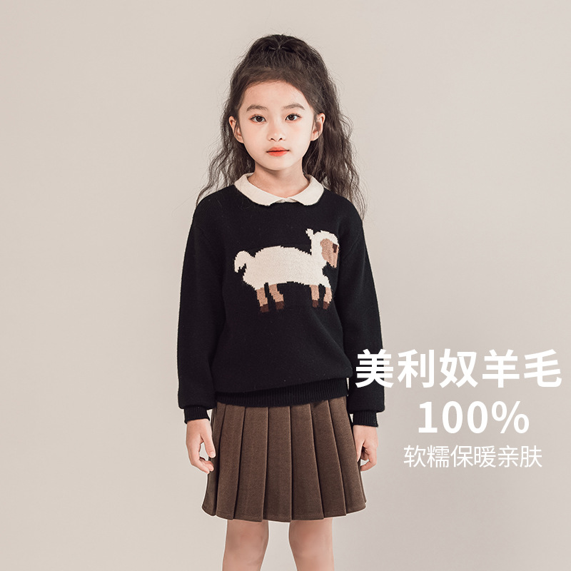 어린이 모직 스웨터 여아 양고기 스웨터 인형 칼라 2023 새로운 소녀의 가을과 겨울 니트베이스 셔츠 세련된스토어 가기