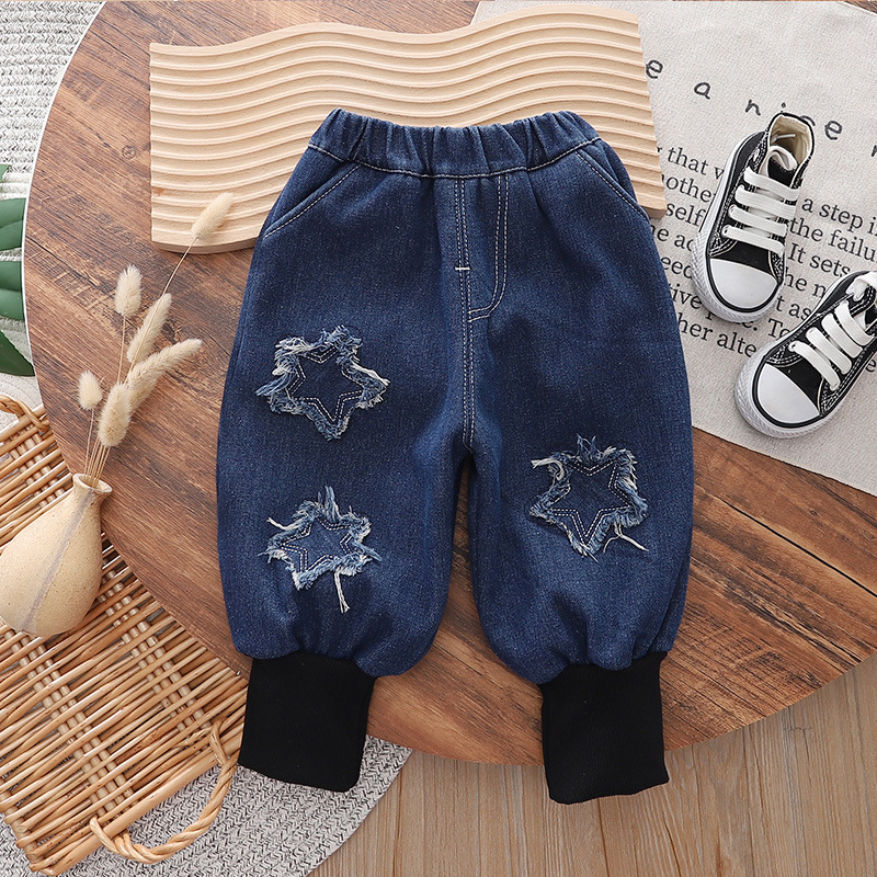 男童裤子2023新款中小儿童春秋时髦哈伦裤宝宝秋季休闲宽松牛仔裤