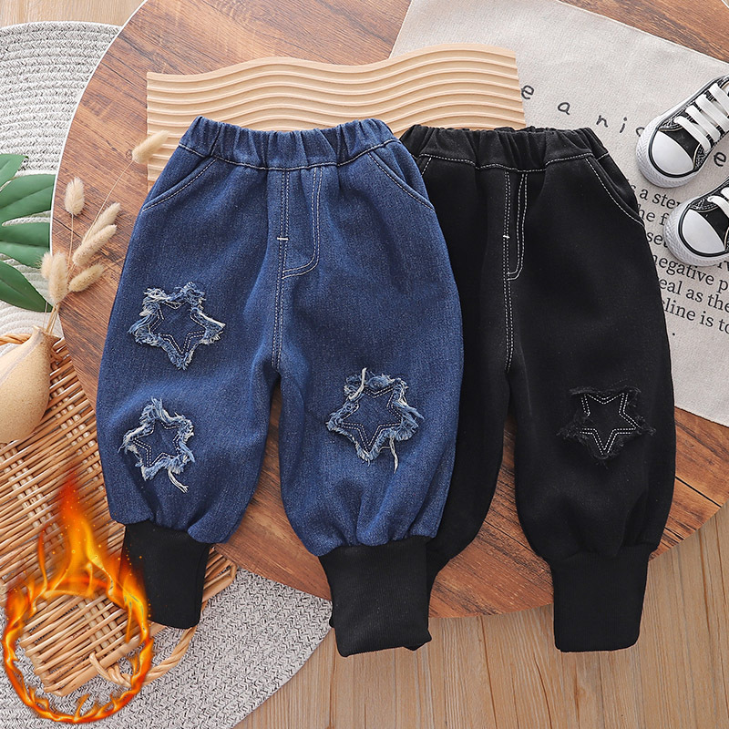 • 기모 다섯개 별 청바지 블랙