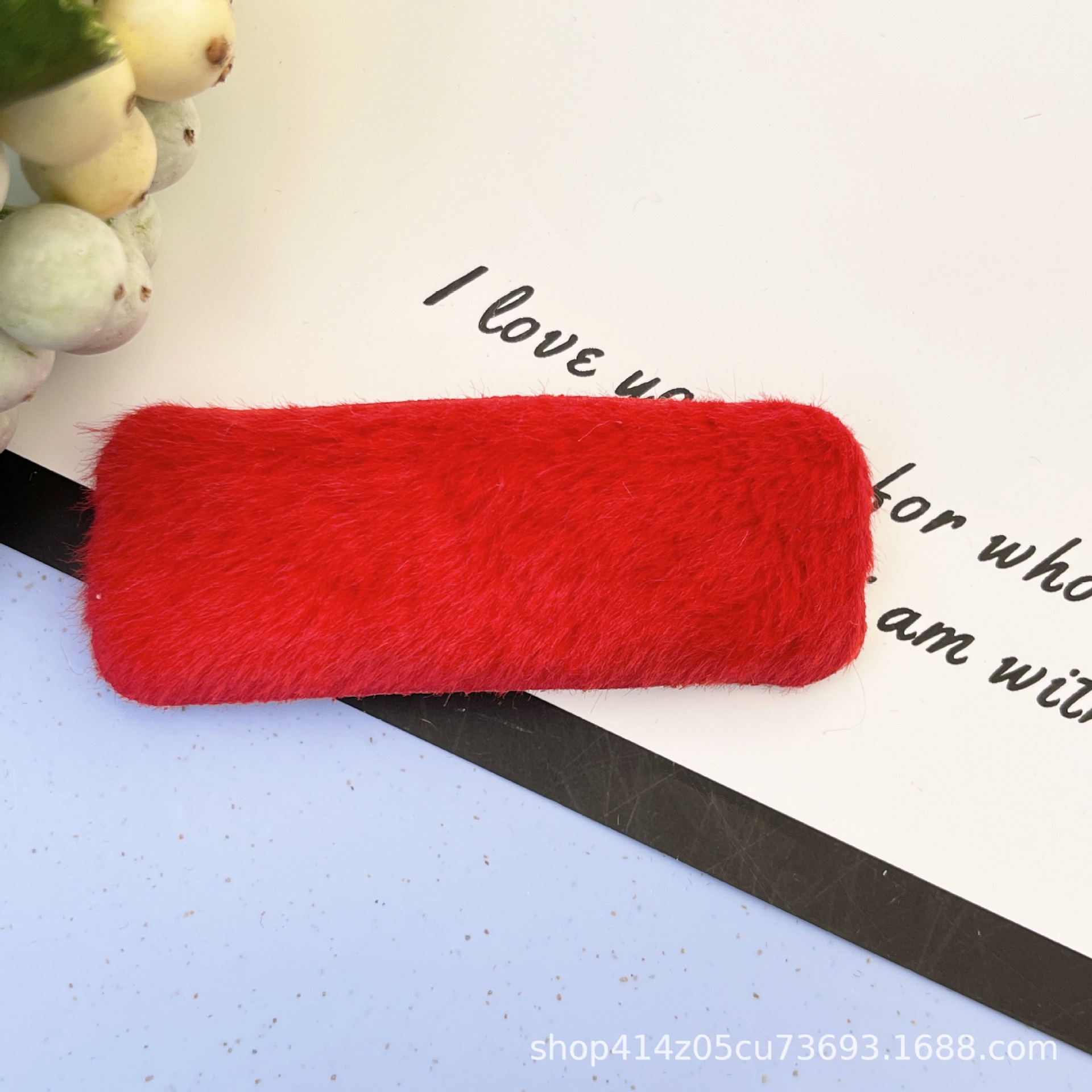 • 스퀘어 플러시 BB 클립 8cm 로즈 레드