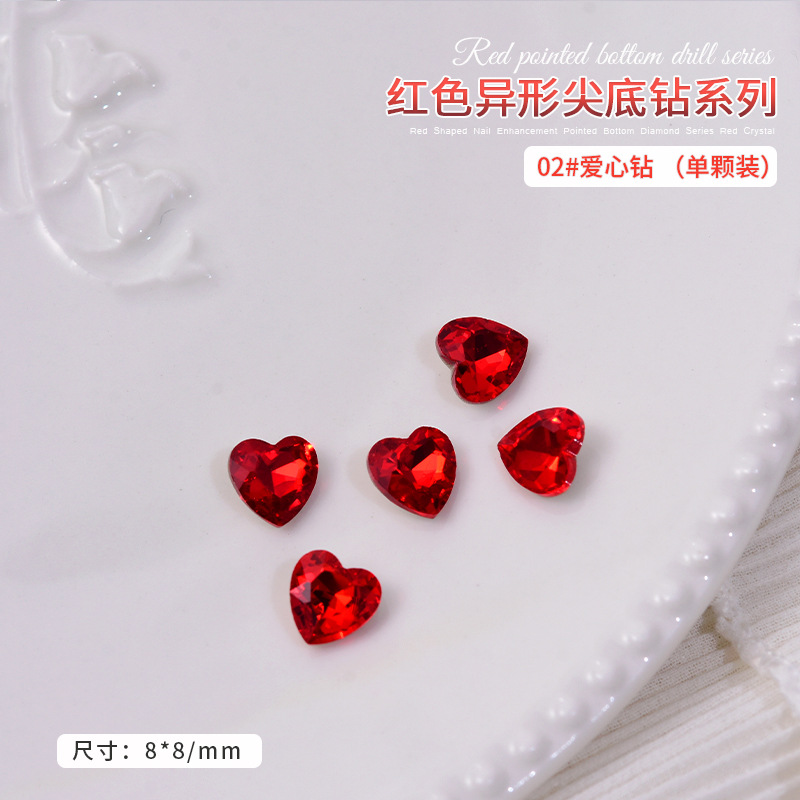 중국 빨간 손톱 보석 크리스탈 대형 다이아몬드 비뚤어진 심장 지방 사각형 사랑 팔각형 뾰족한 바닥 유리 라인 석 액세서리 배치스토어 가기