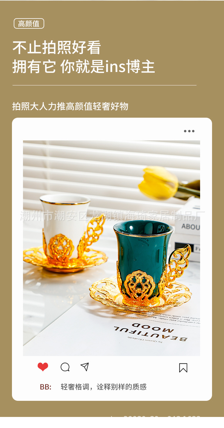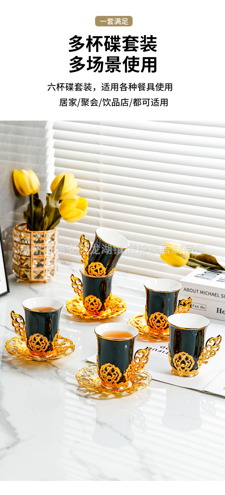 레트로 라이트 럭셔리 높은 아름다움 가치 터키어 커피 컵 접시 세트 고급 세라믹 컵 오후 차 컵 홈 선물 상자