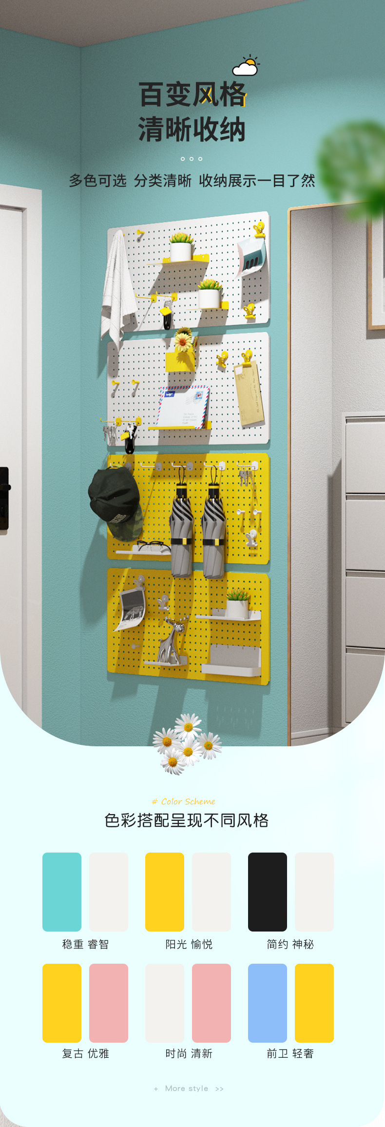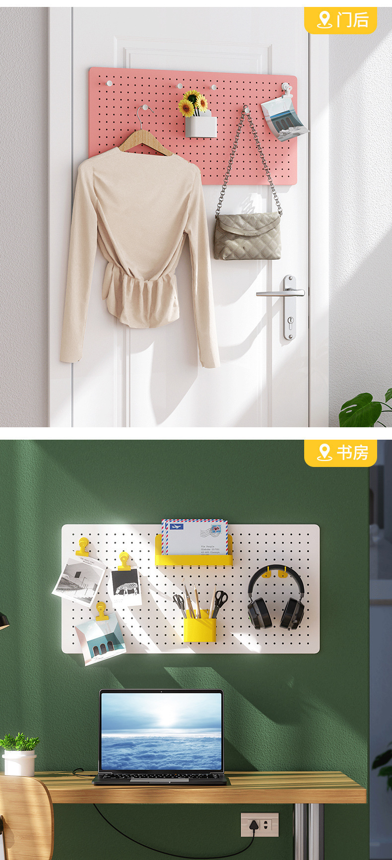 사용자 정의 홈 구멍 보드 기숙사 침실 컴퓨터 책상 장식 주방 입구 벽 랙 벽걸이 스토리지 랙