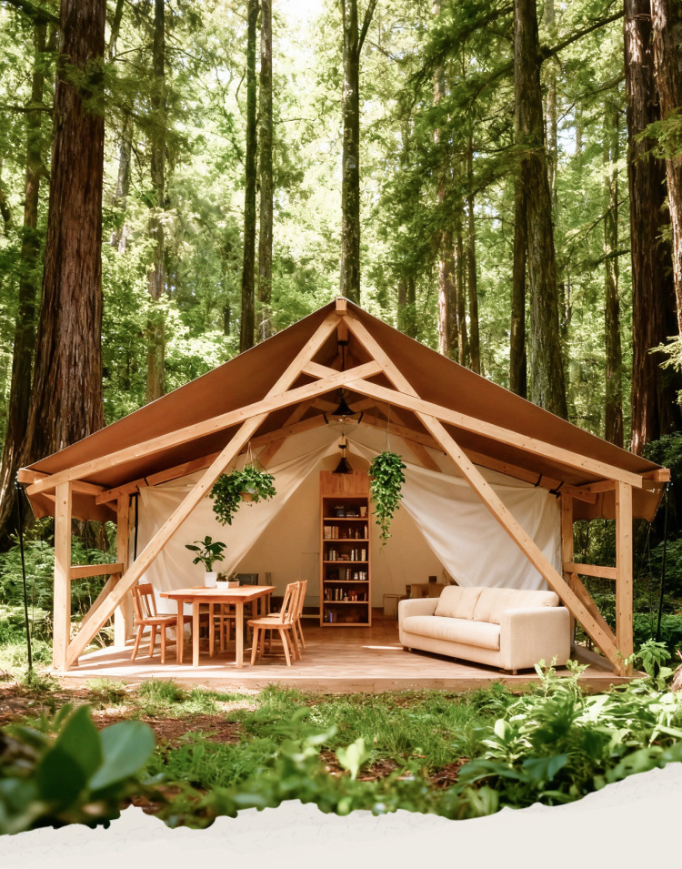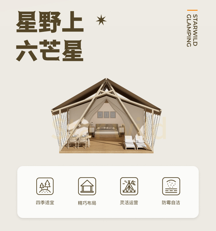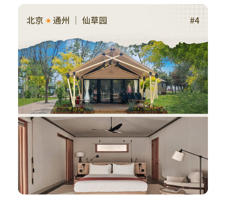 호시노 호텔 텐트 캠프 유목민 텐트 단단한 나무 침대와 아침 식사 라이트 럭셔리 럭셔리 캠핑 명승지 숙박 텐트스토어 가기