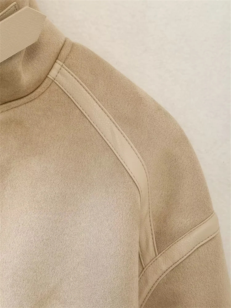 국경 23 가을 새로운 여성 의류 패션 옷깃 스티칭 모피 통합 양면 짧은 재킷 코트 6318241