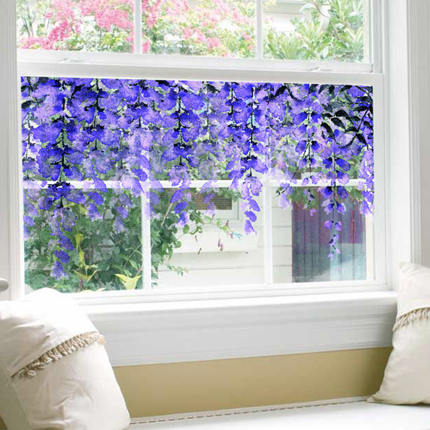 Funlife 꽃 바다 빛과 그림자 접착제 프리 정전기 유리 스티커 레스토랑 파티션 도어 꽃 장식 필름 SE079