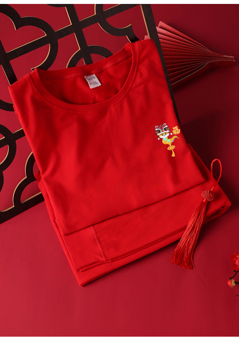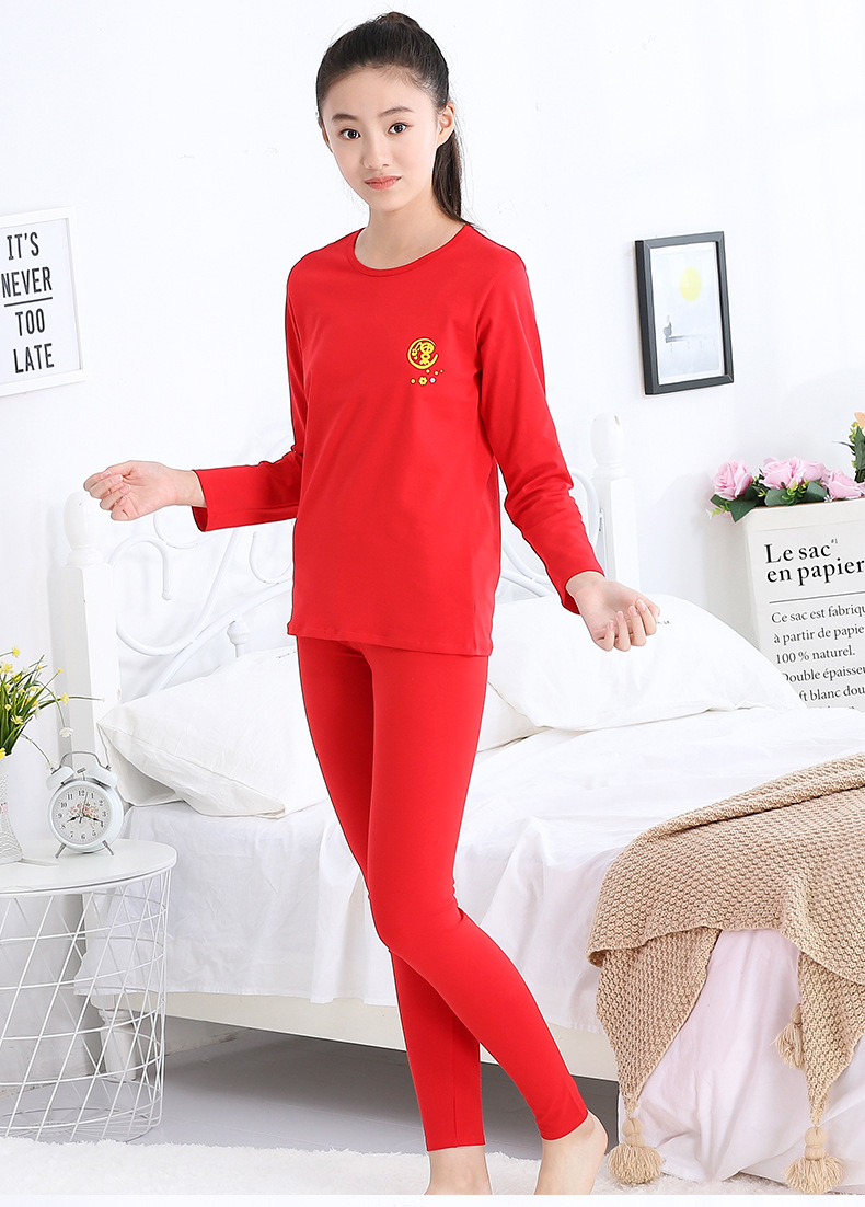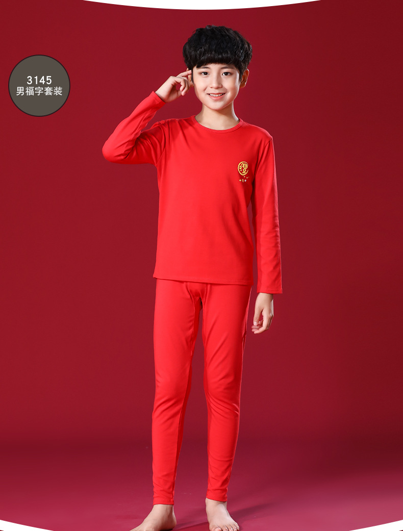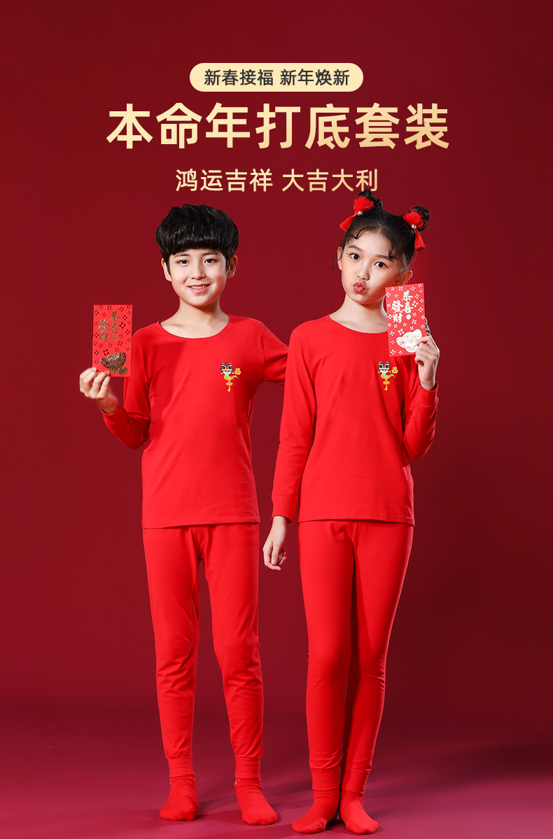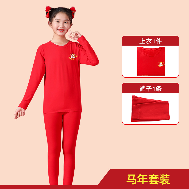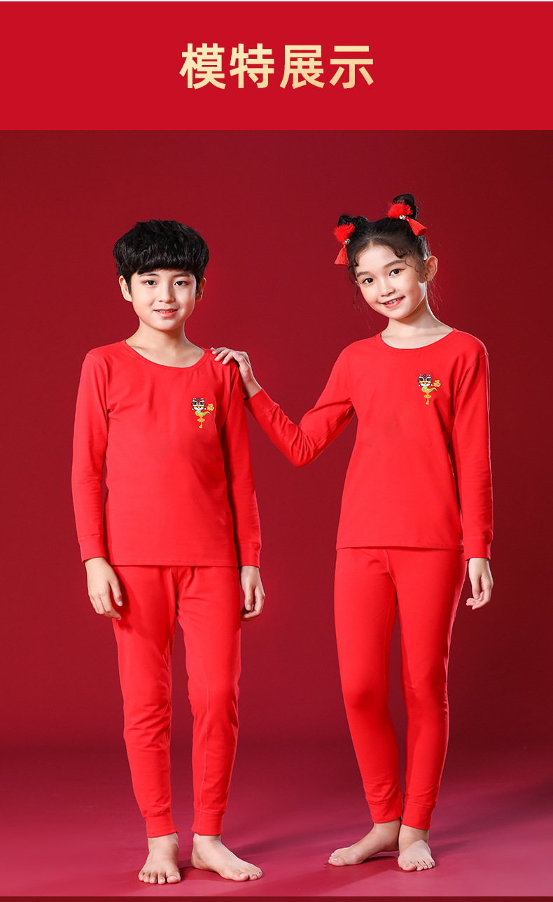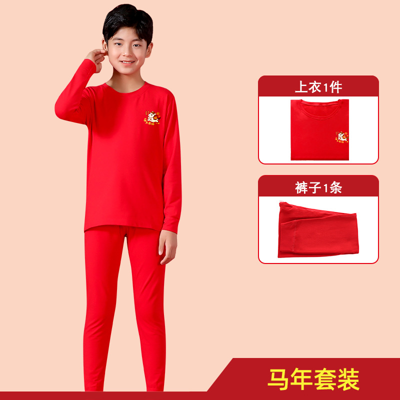 남아 여아용 붉은색 속옷 세트, 순면 가을옷과 가을바지, 2026년 말년 아동용 홈웨어스토어 가기