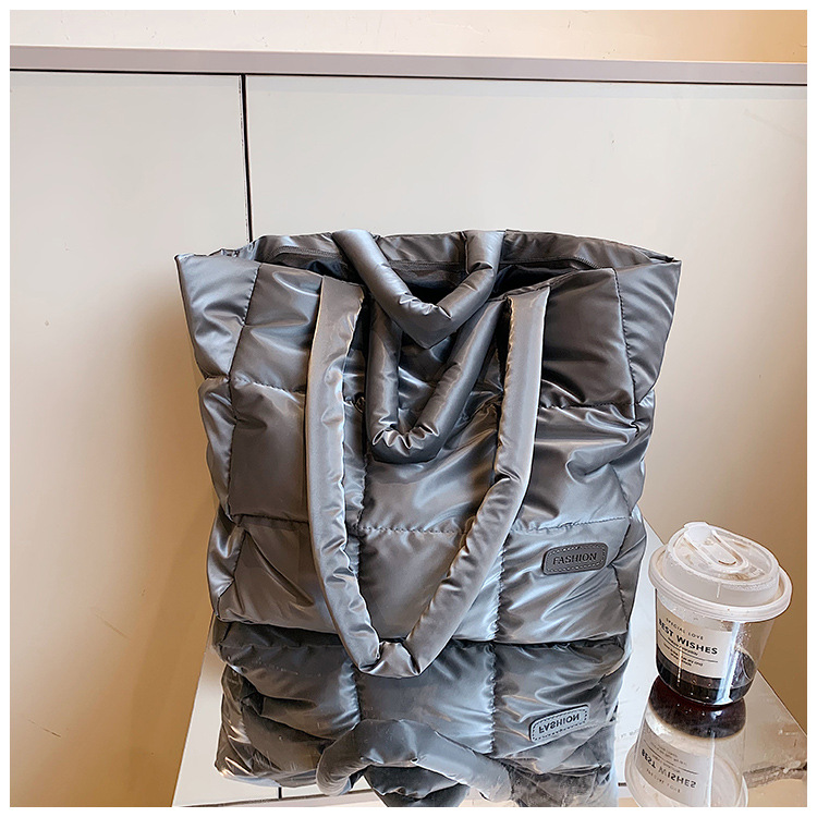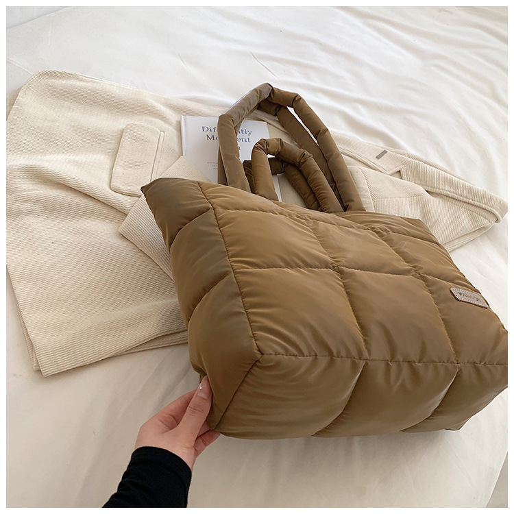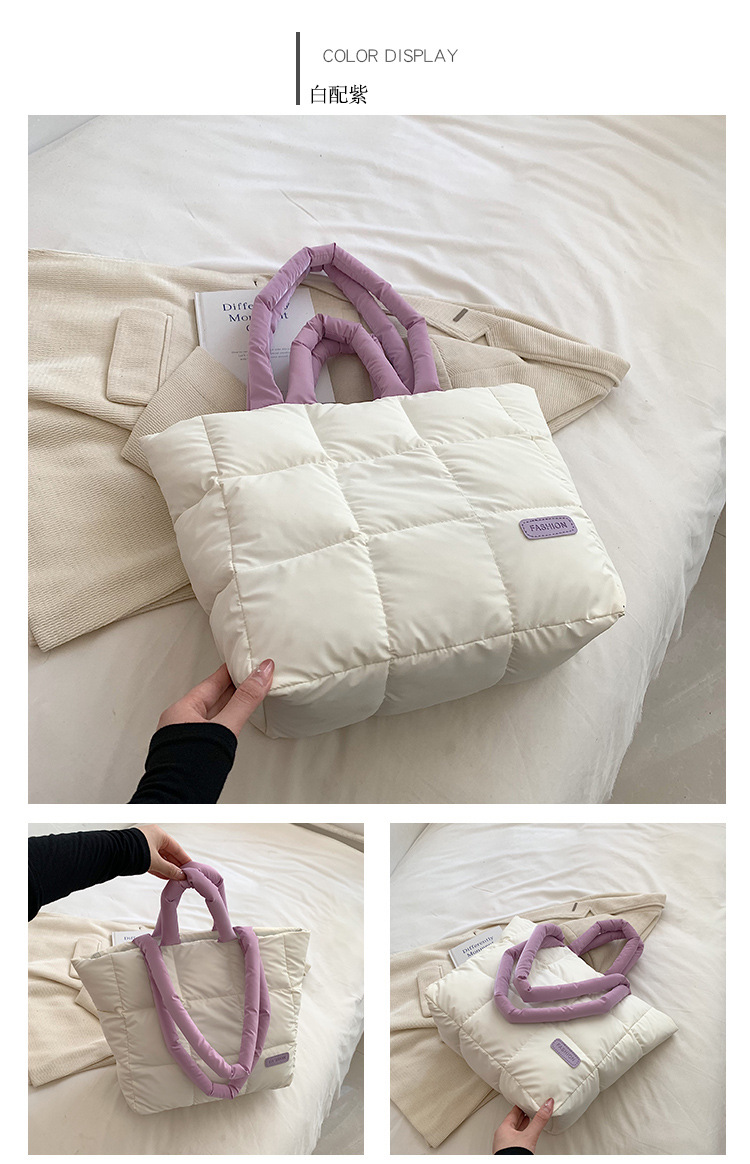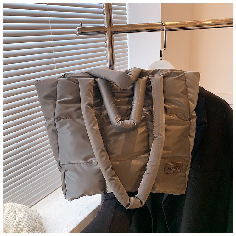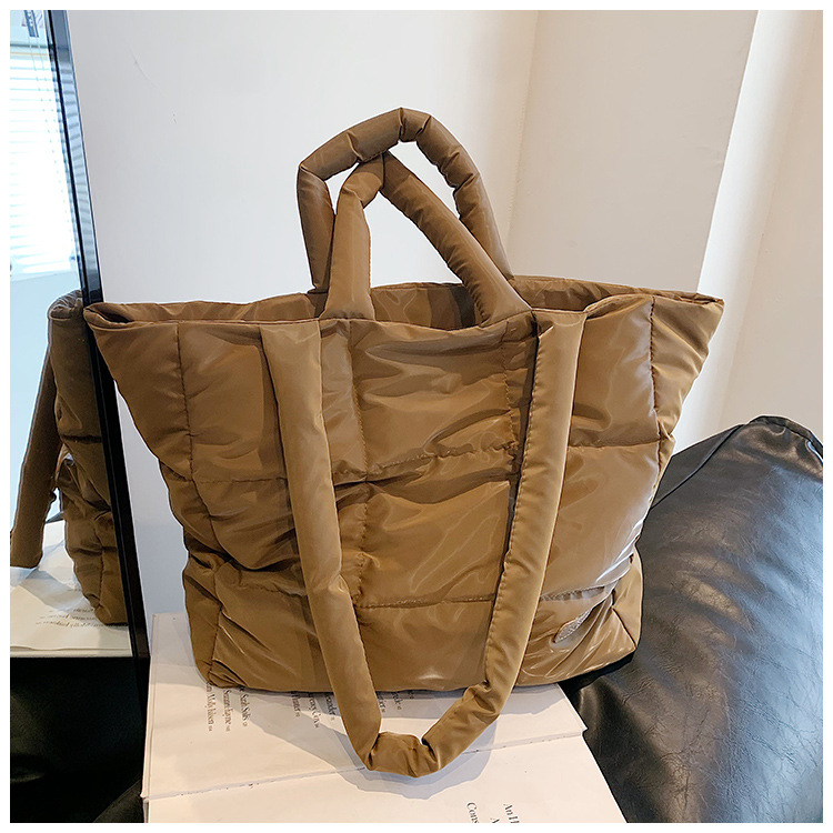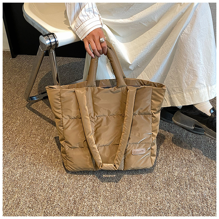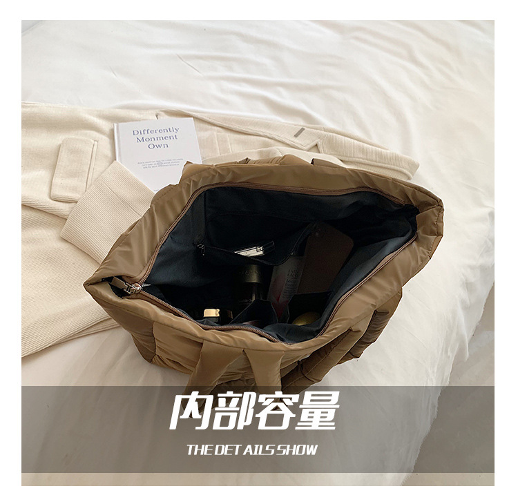 크로스보더 새로운 대용량 하이엔드 센스 코튼 백 단거리 여행 다운 백 여성용 외출용 숄더 핸드 토트백스토어 가기