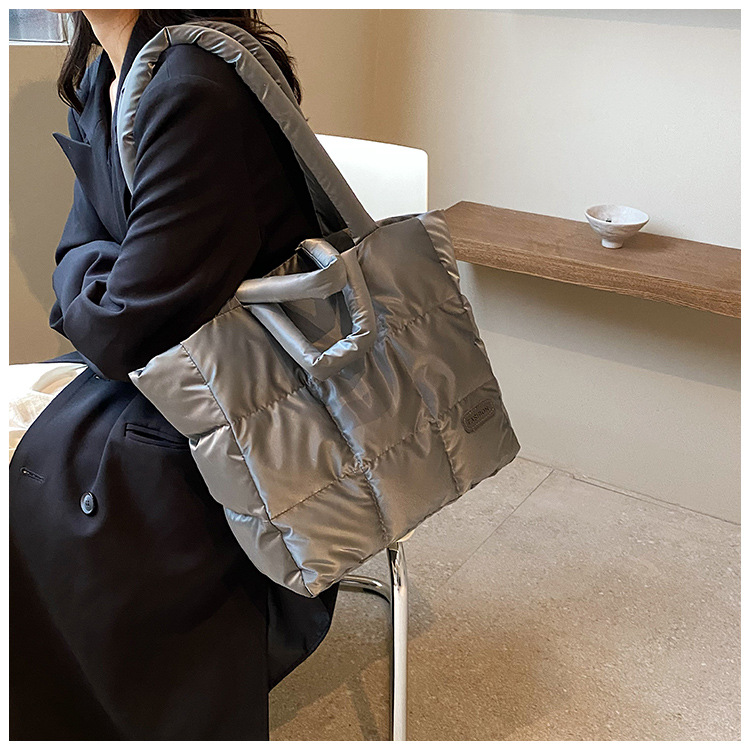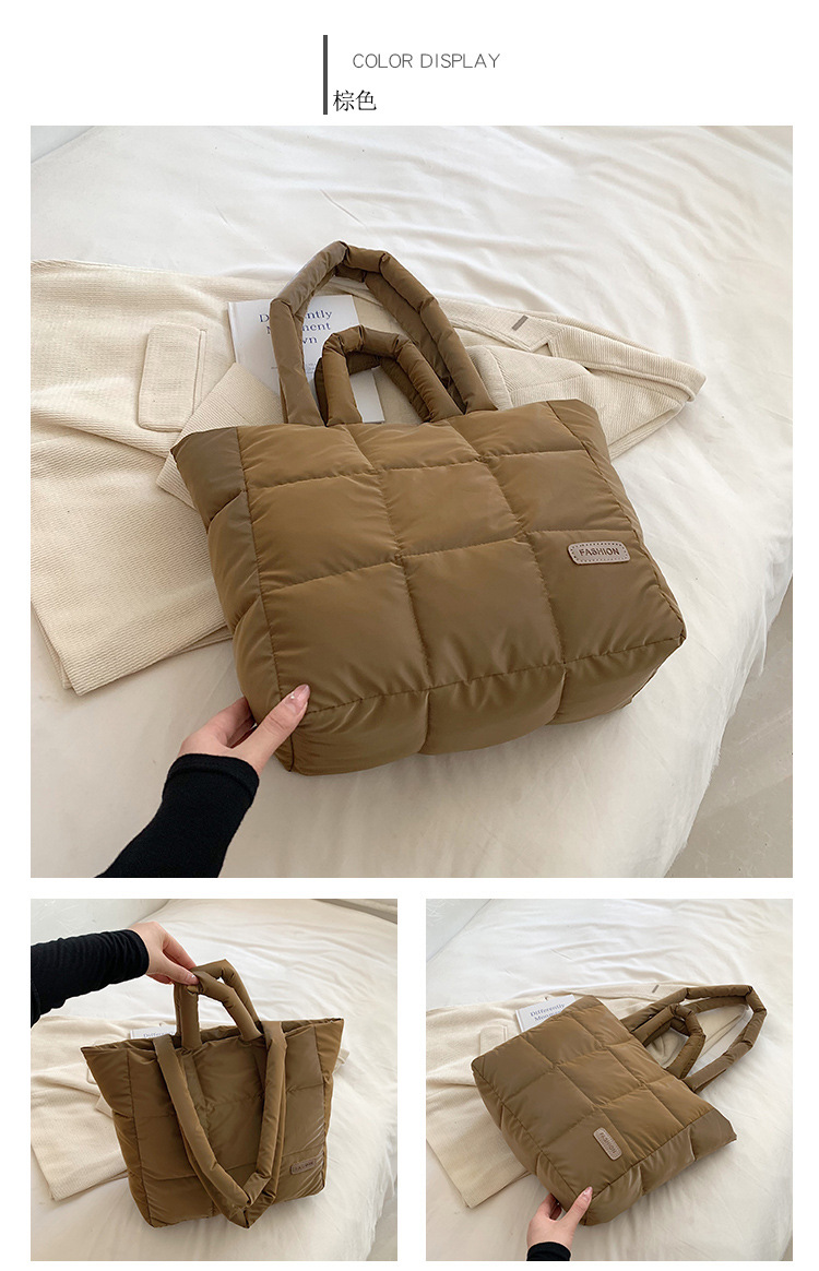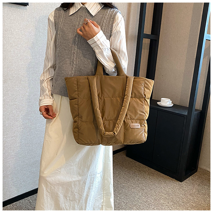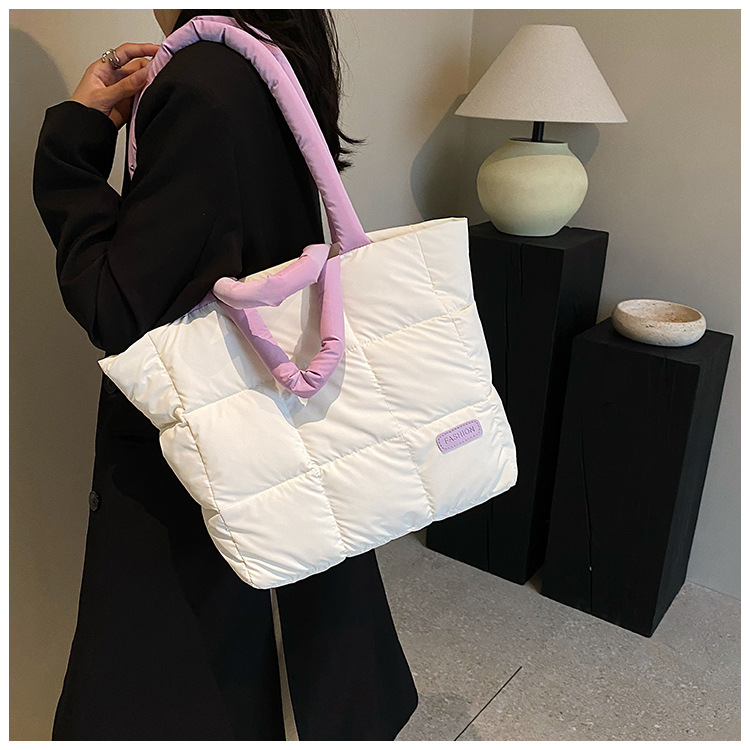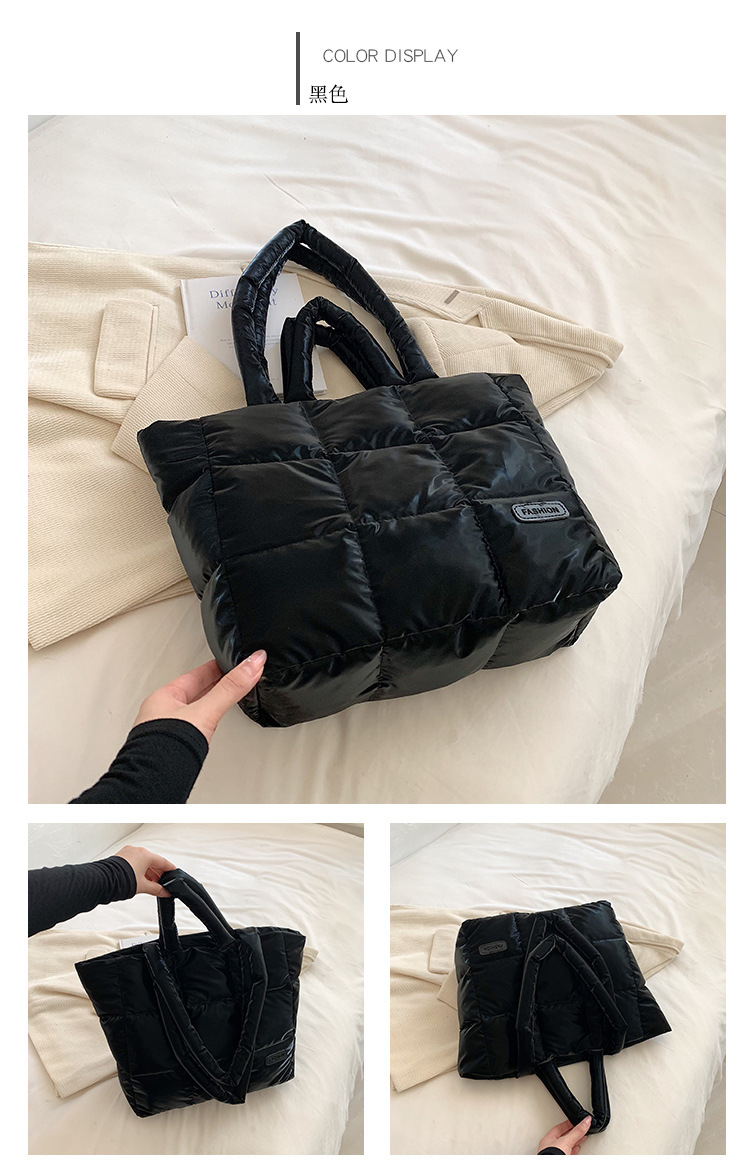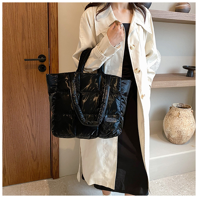 크로스보더 새로운 대용량 하이엔드 센스 코튼 백 단거리 여행 다운 백 여성용 외출용 숄더 핸드 토트백스토어 가기