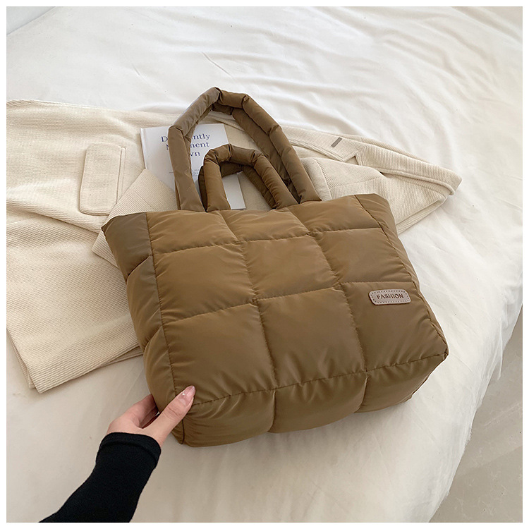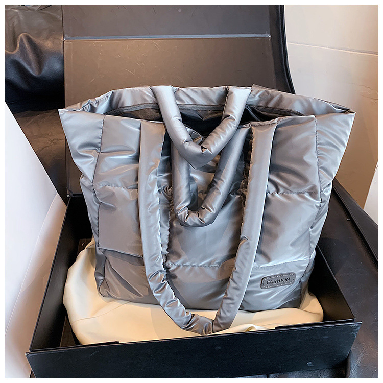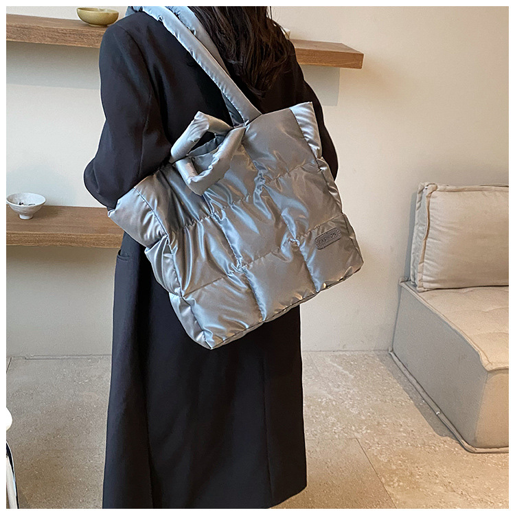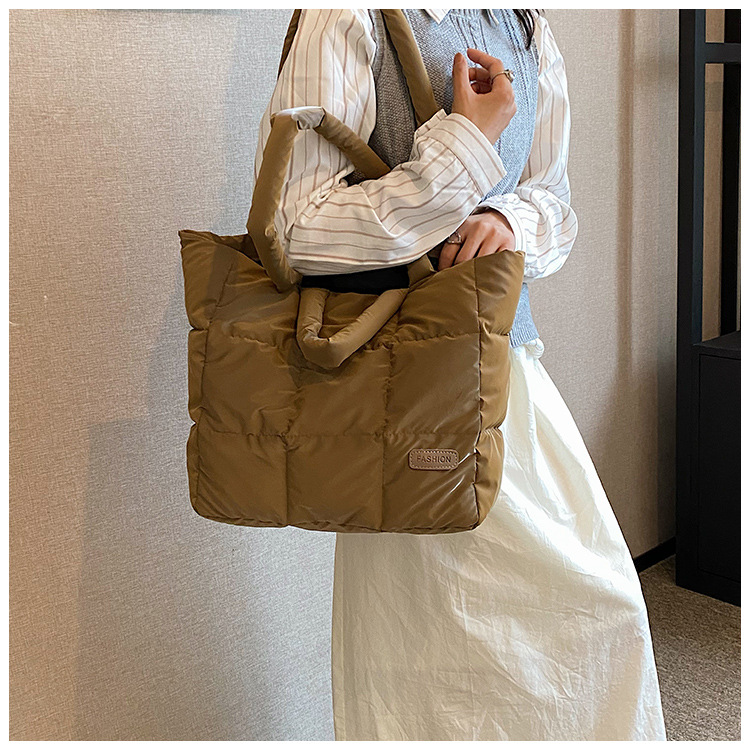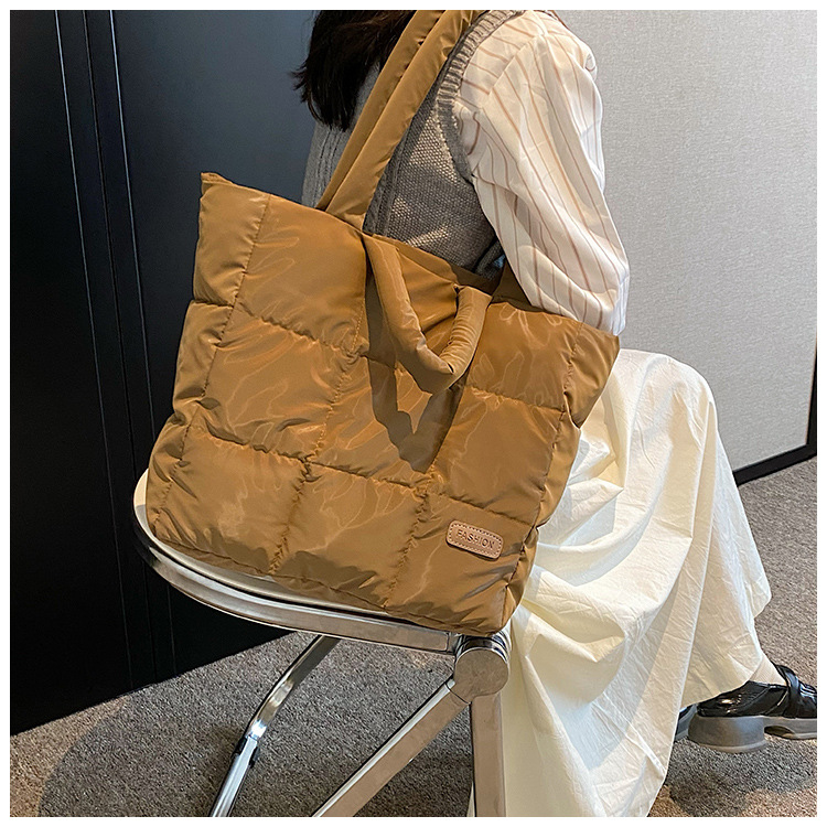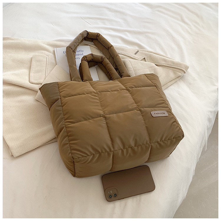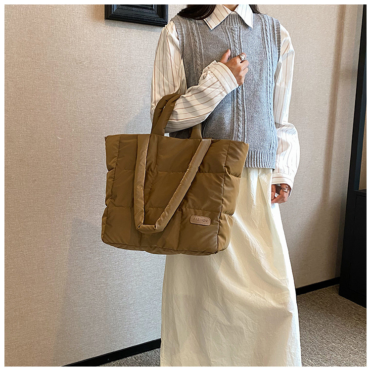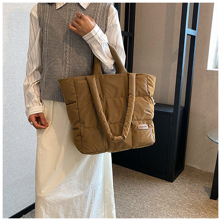 크로스보더 새로운 대용량 하이엔드 센스 코튼 백 단거리 여행 다운 백 여성용 외출용 숄더 핸드 토트백스토어 가기