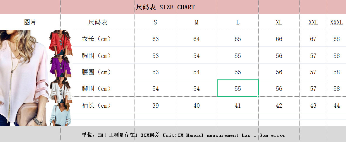 2024 유럽과 미국의 국경 간 신상품 여성 루즈 티셔츠 슬리밍 플러스 사이즈 탑 여성 7부 벨 슬리브 쉬폰 셔츠