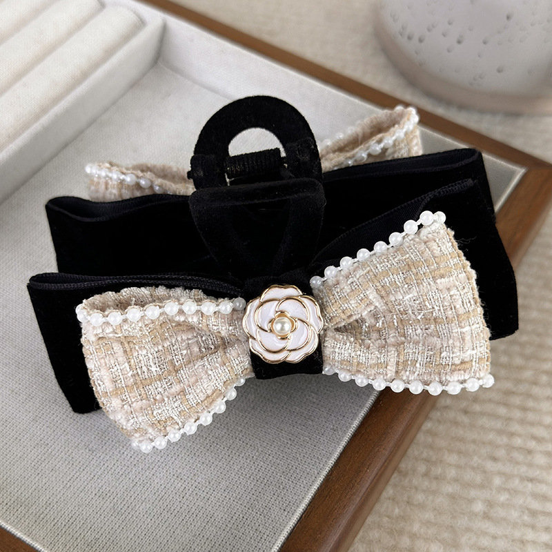 패션 감각 작은 샤넬 스타일 활 동백 그랩 클립 2023 새로운 머리핀 뒤 머리 우아한 상어 클립 대형