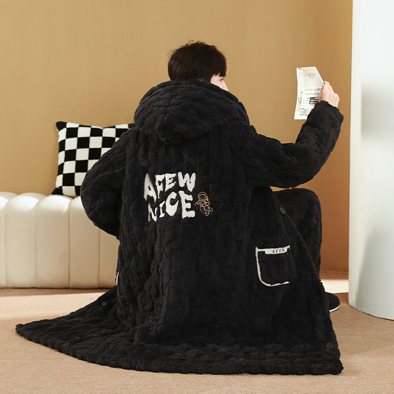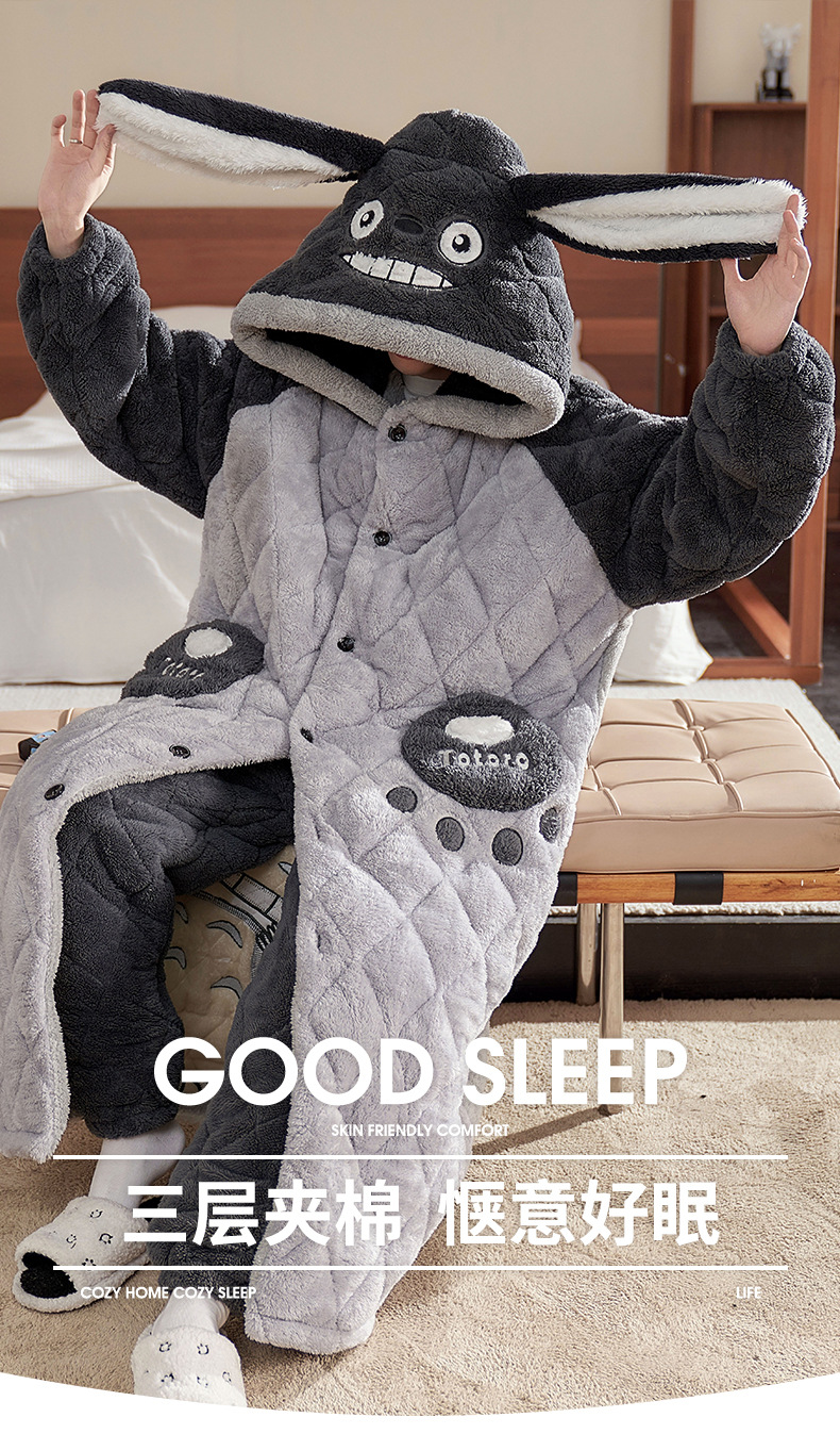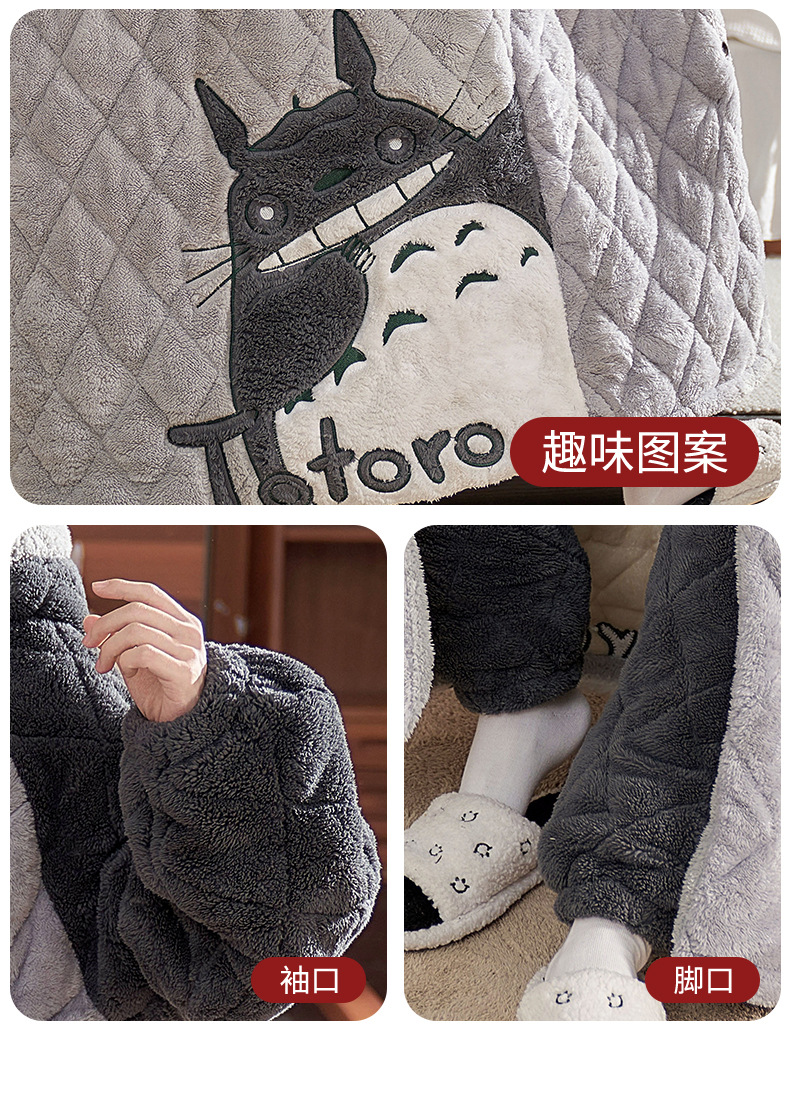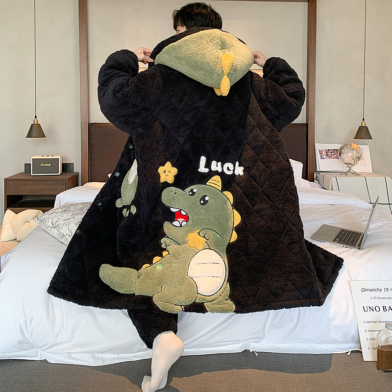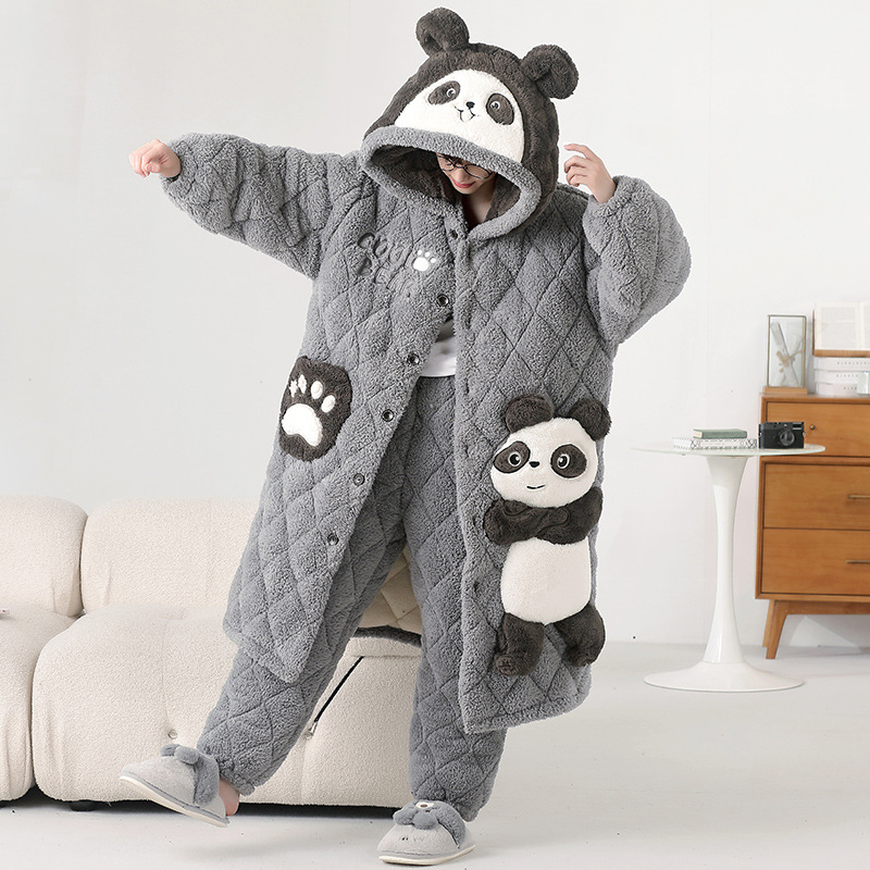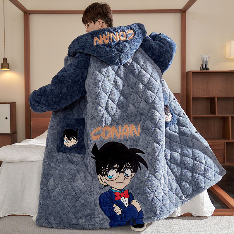 남자 잠옷 가을과 겨울 산호 양털 3 층 퀼트 기모 두꺼운 잠옷 긴 청소년 홈 세트스토어 가기