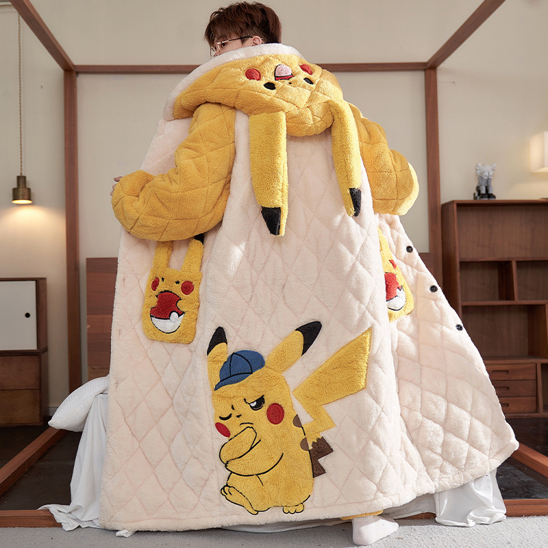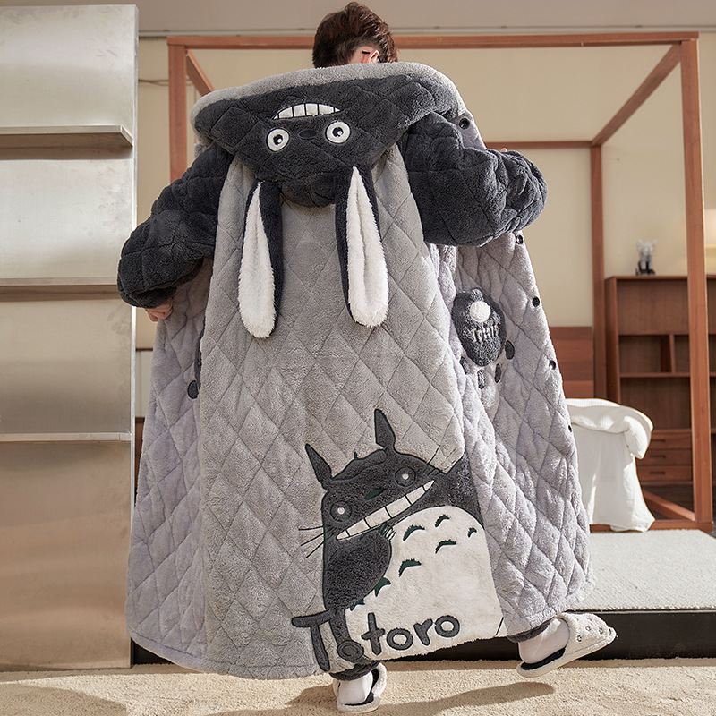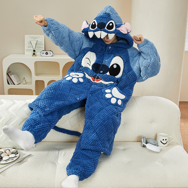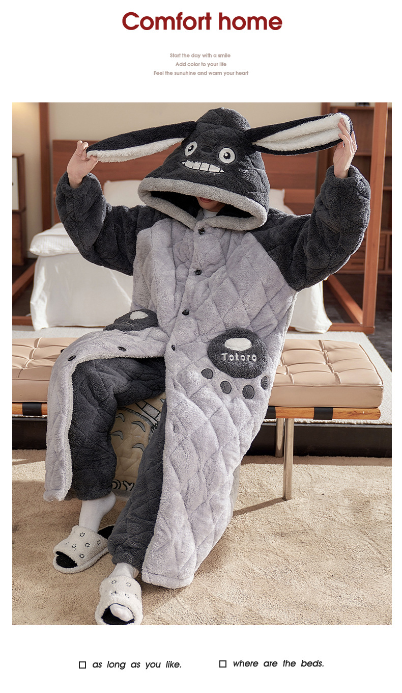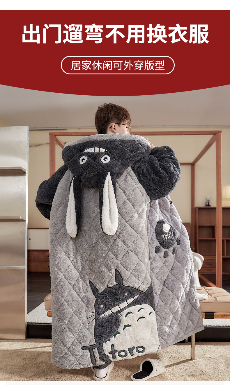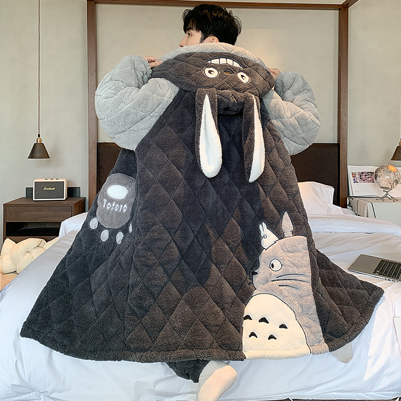 남자 잠옷 가을과 겨울 산호 양털 3 층 퀼트 기모 두꺼운 잠옷 긴 청소년 홈 세트스토어 가기
