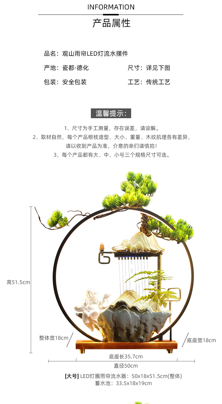 중국 선 순환 분수 행운의 장식 거실 사무실 데스크탑 분무 가습기 오프닝 선물