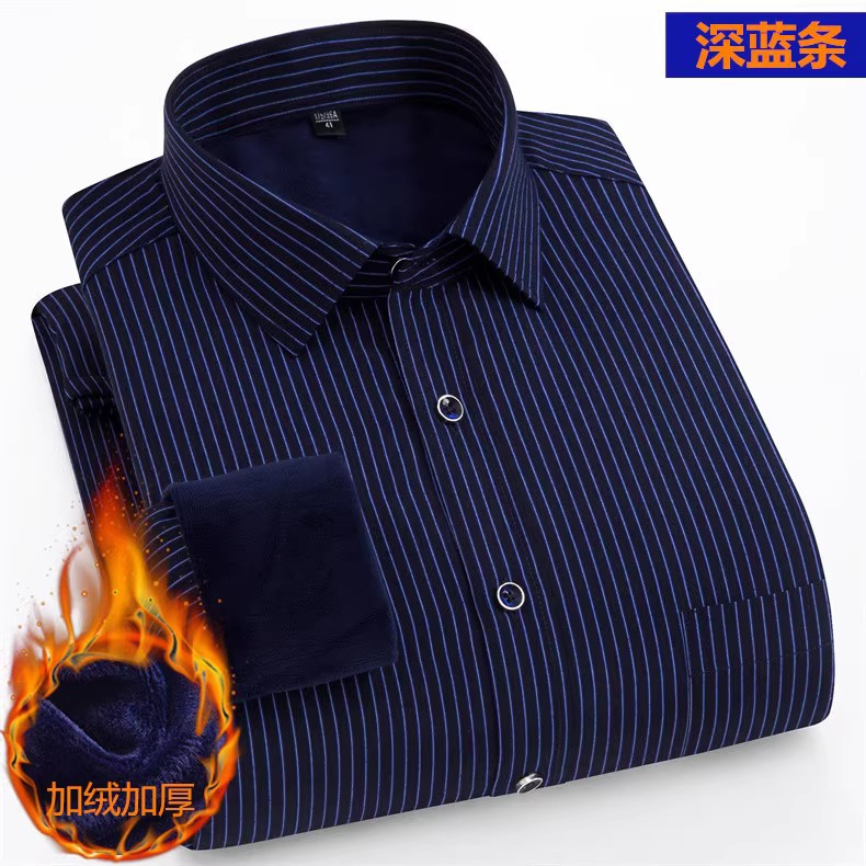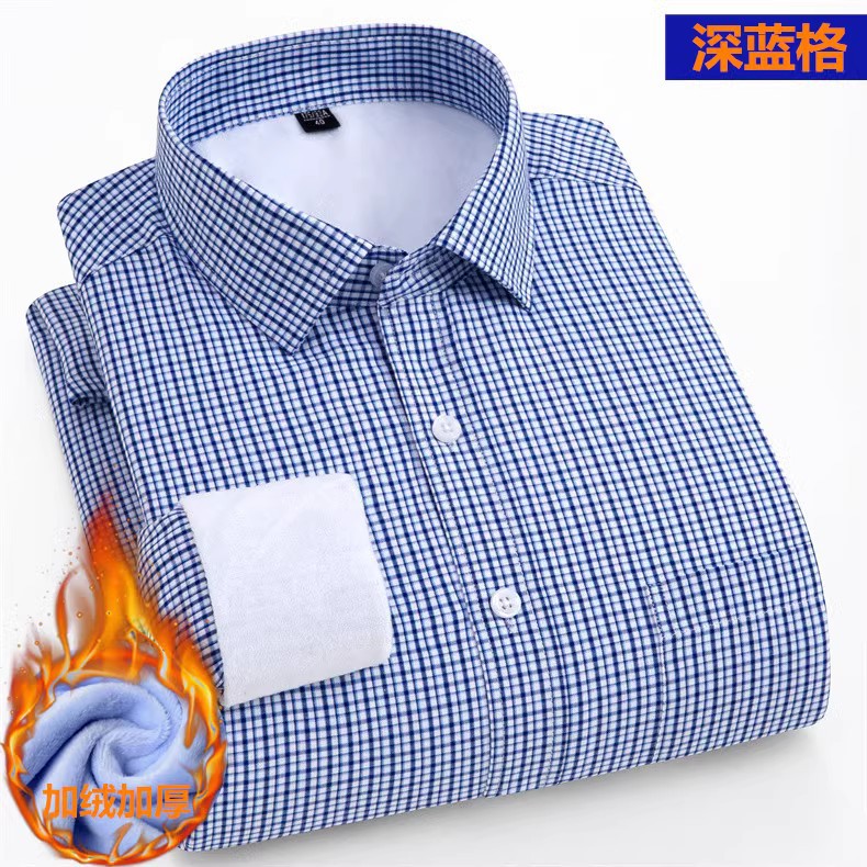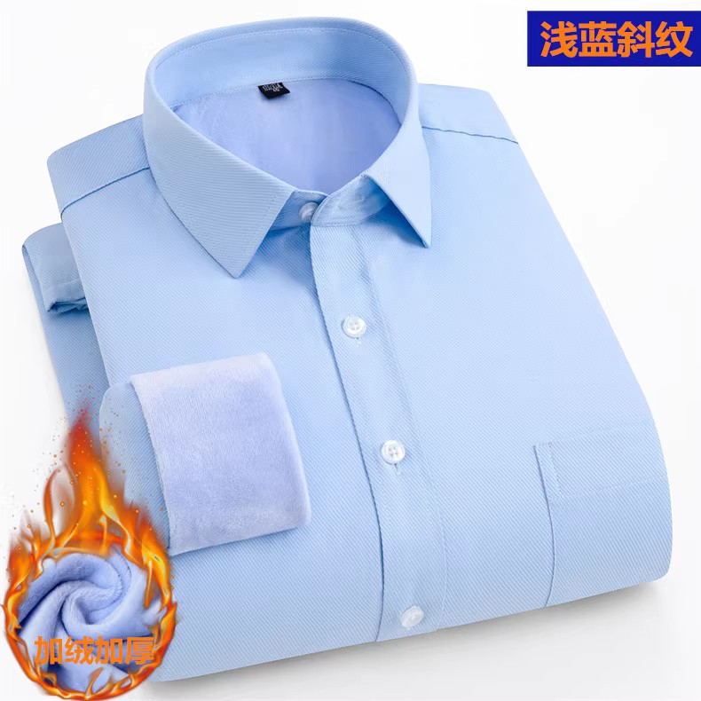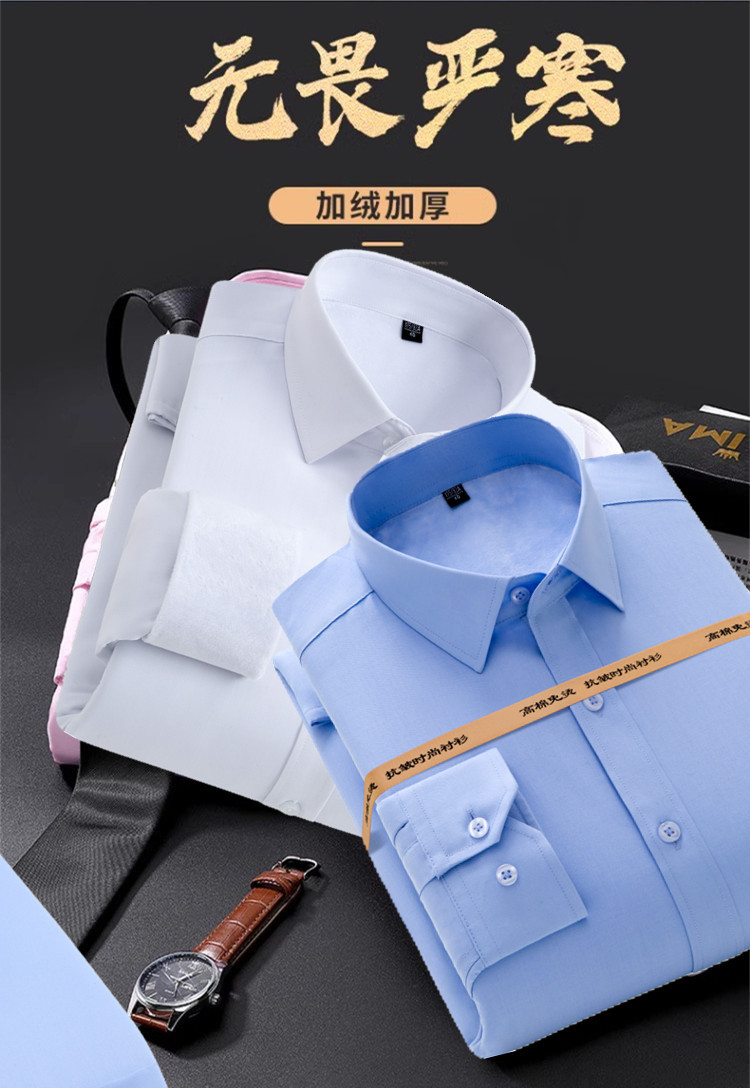 겨울 기모 두꺼운 순수한 흰색 셔츠 남자의 긴 소매 비즈니스 전문가 원피스 비 다림질 따뜻한 포켓 중년 셔츠스토어 가기