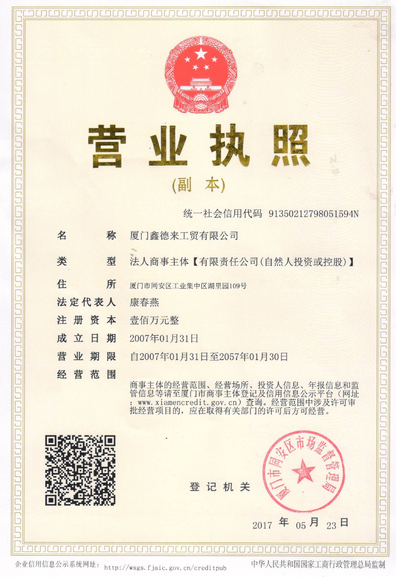 웨이하이센터상호: 威海韩运国际贸易有限公司 法定代表人: 朱 勇奎 统一社会信用代码: 91371000MA3U6XGW6N 进出口: 37109409C6