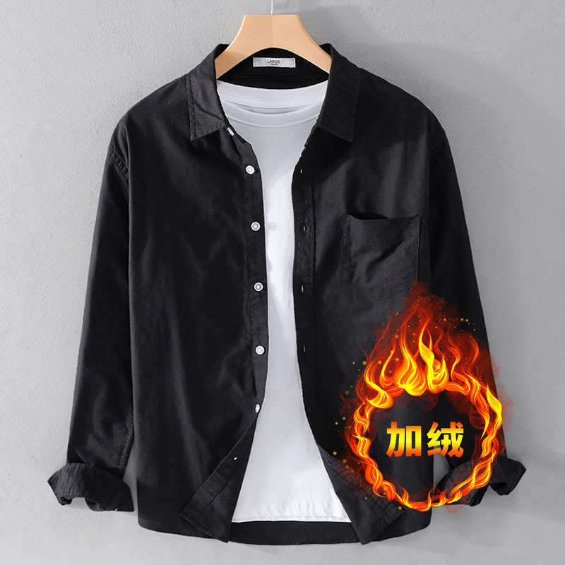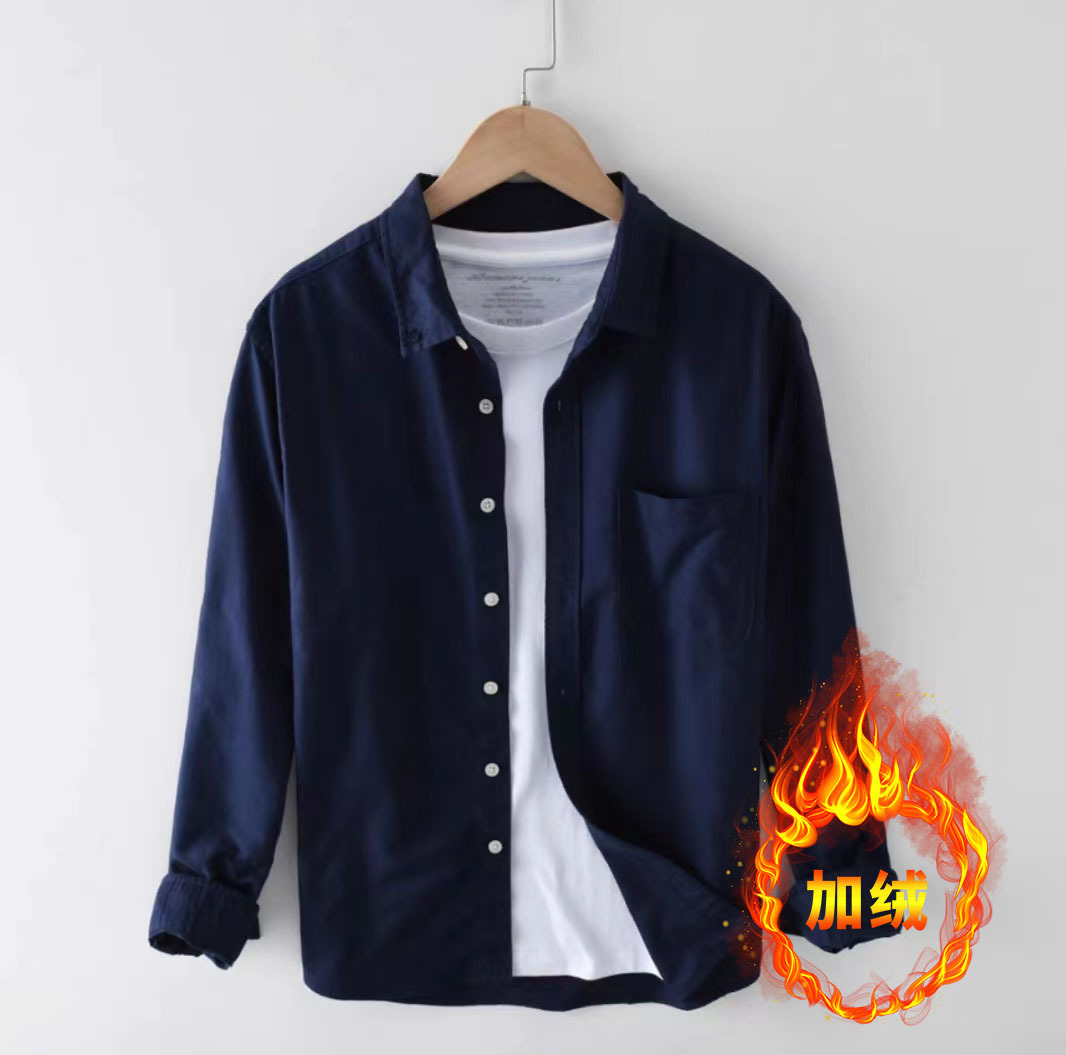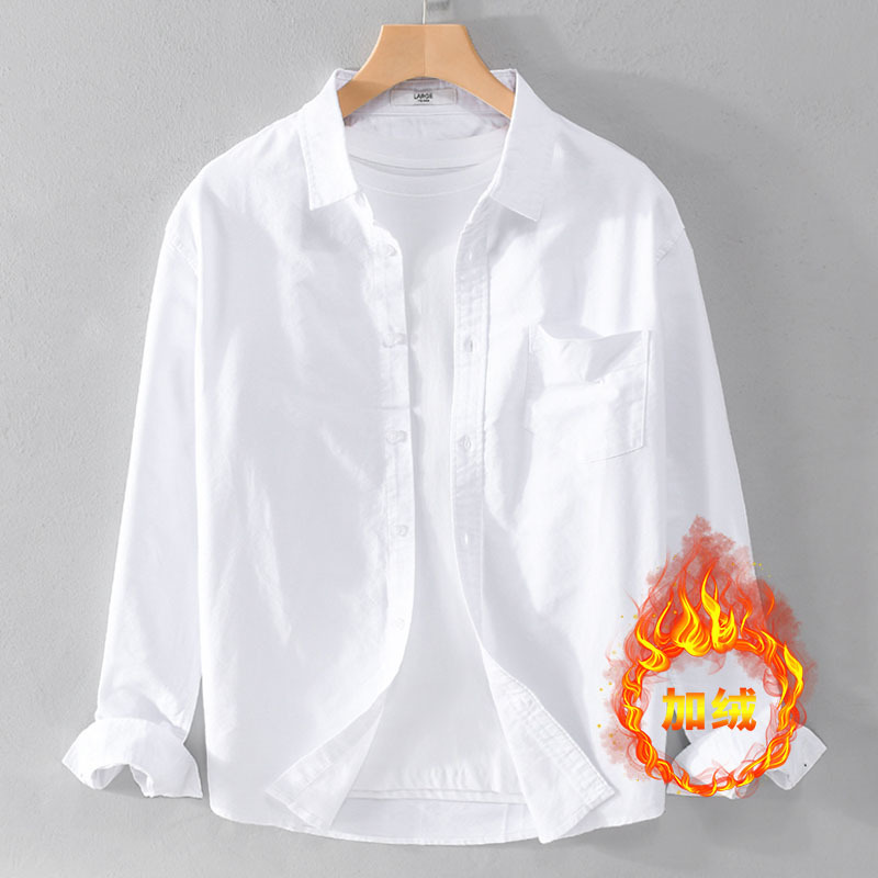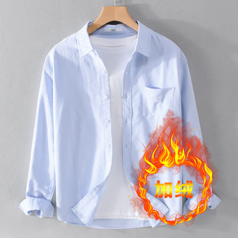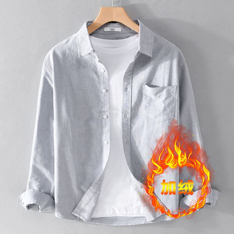 가을 남자의 따뜻한 긴팔 셔츠 남자의 기모 캐주얼 느슨한 두꺼운 남자의 셔츠 옥스포드 섬유 학생 탑
