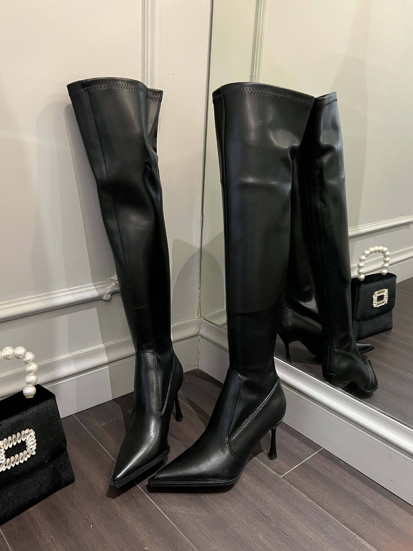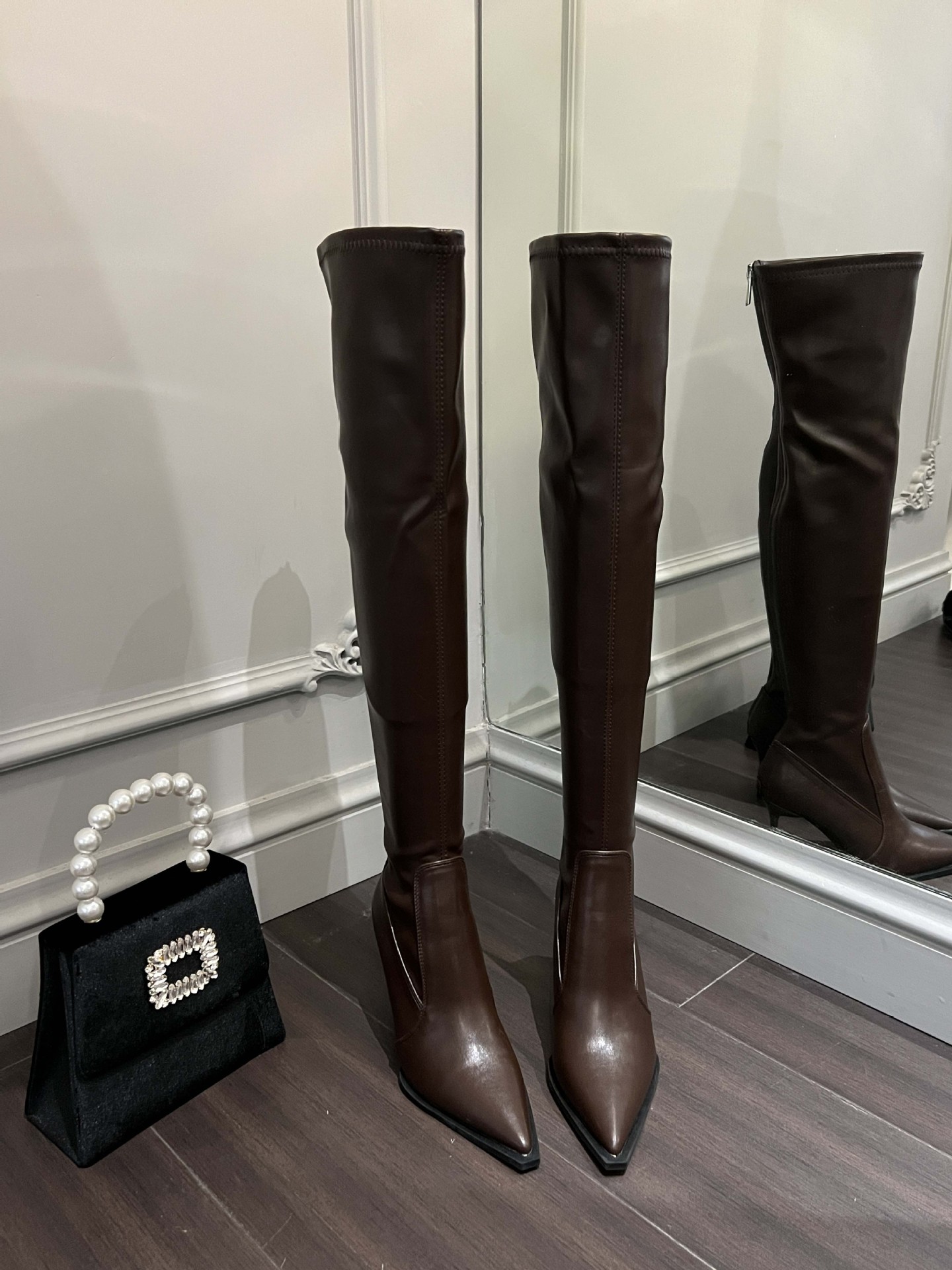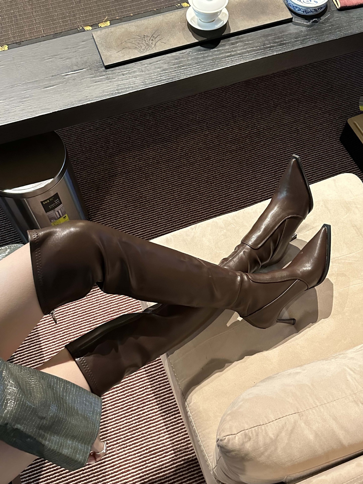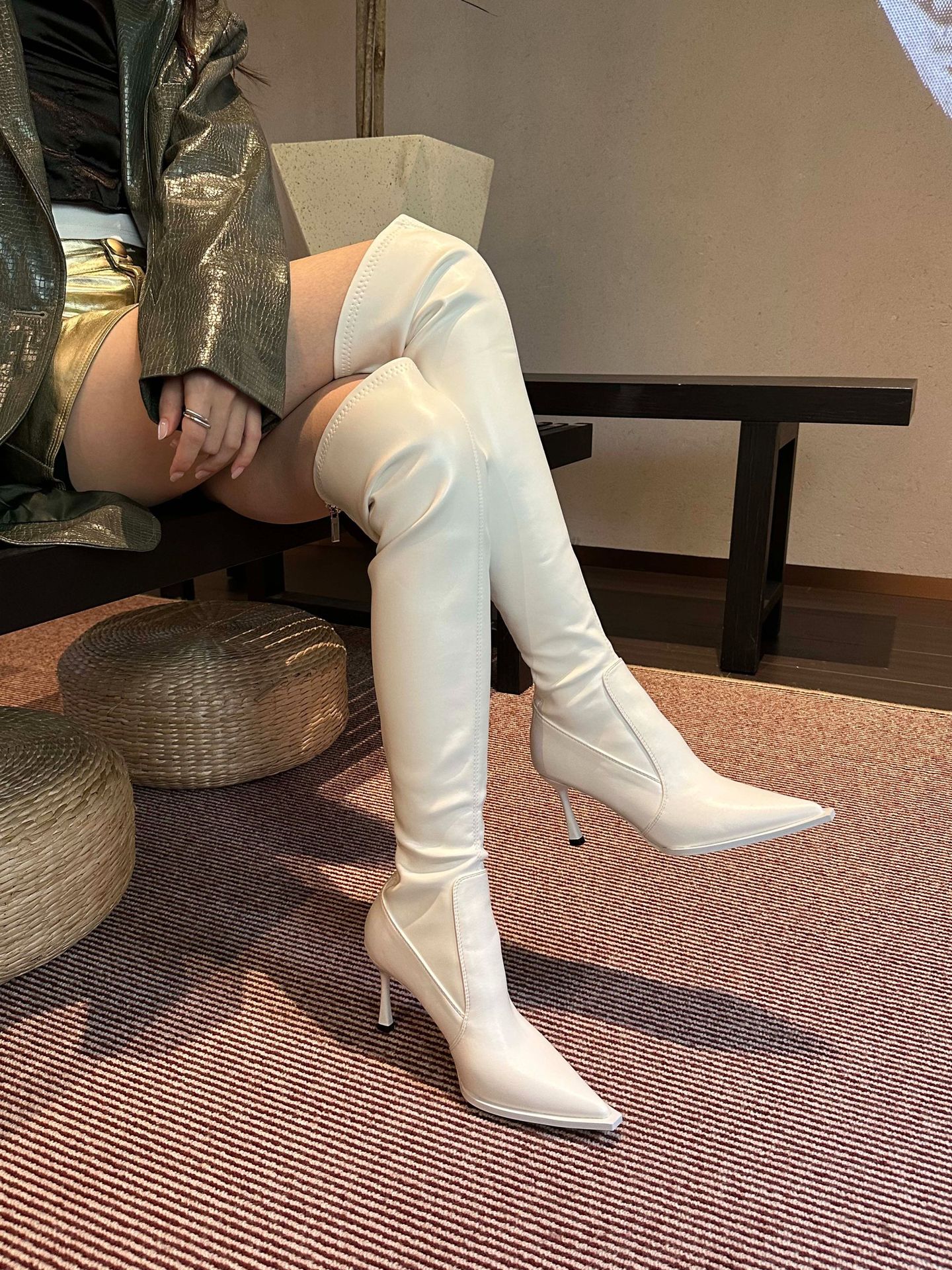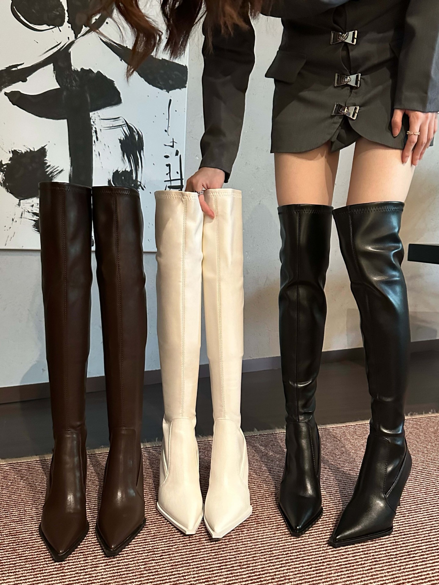 섹시한 스파이스 걸 오버 더 니 부츠 2023 새로운 가을과 겨울 여성용 부츠 뾰족한 힐 라이더 부츠 유럽과 미국 하이힐 부츠스토어 가기