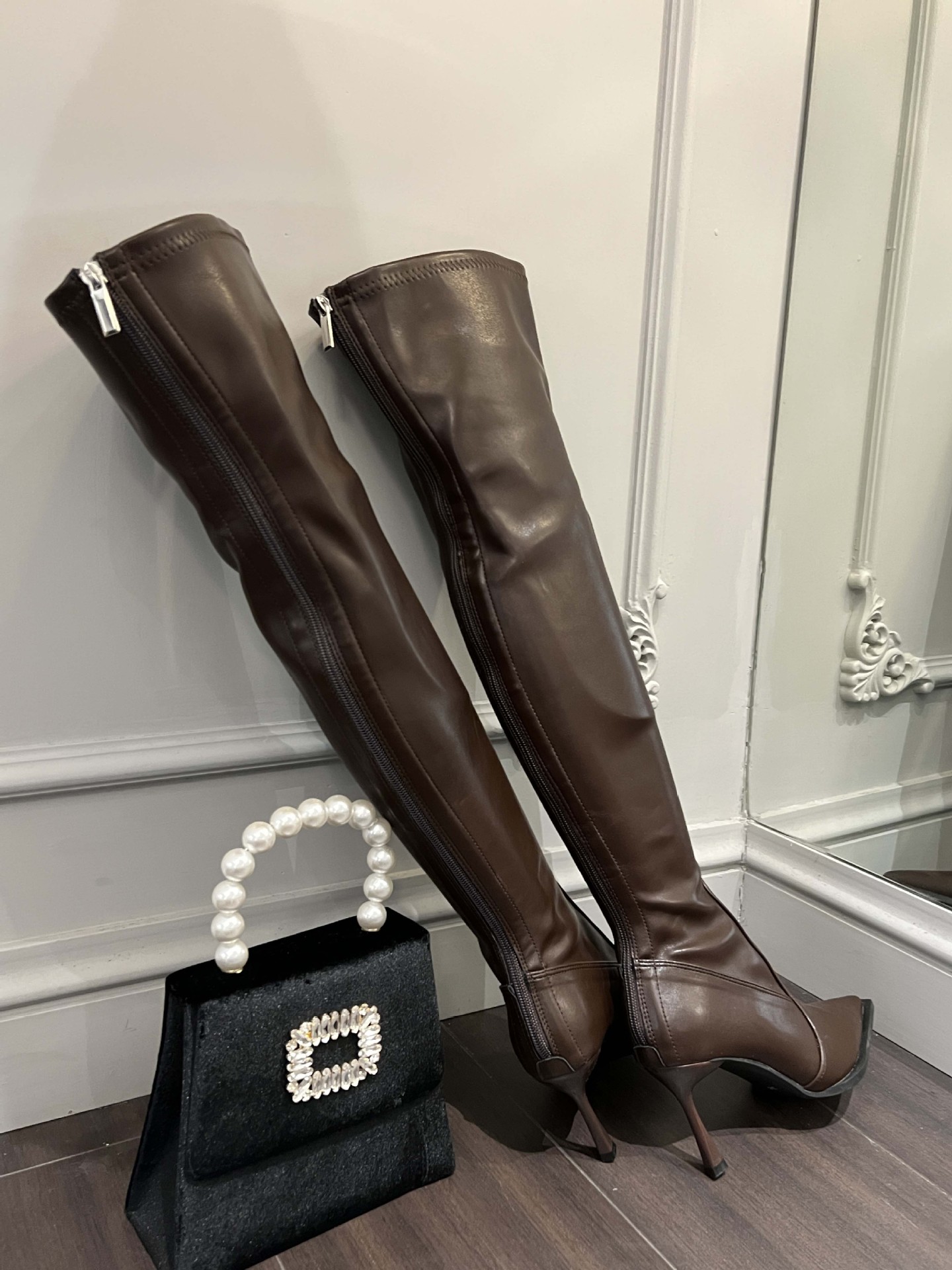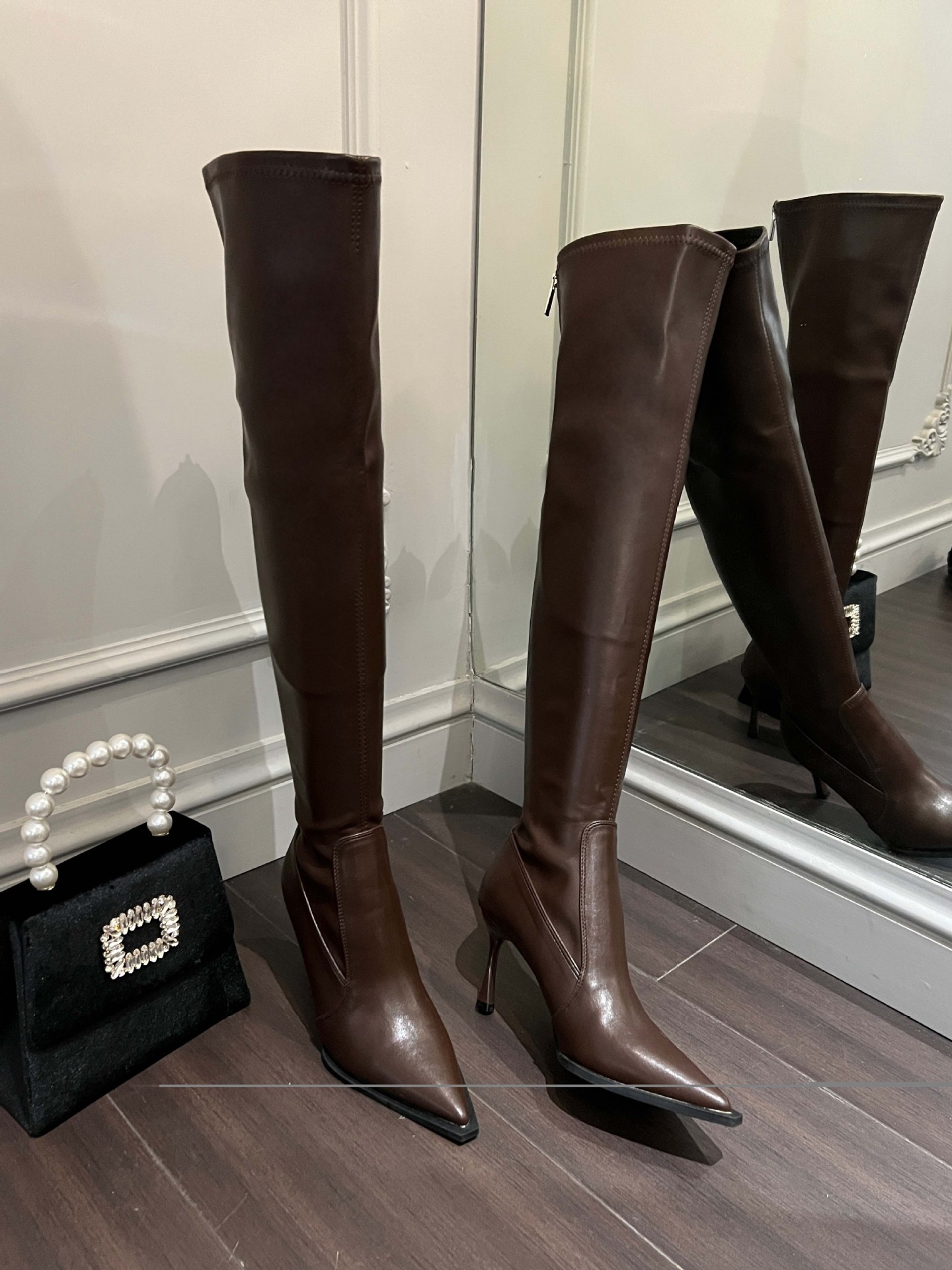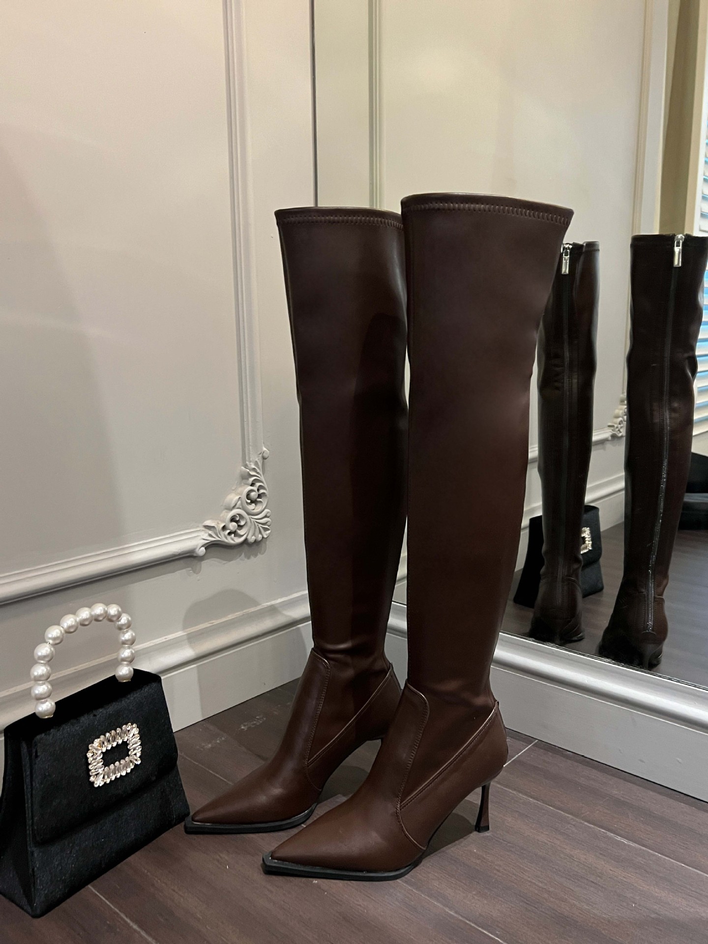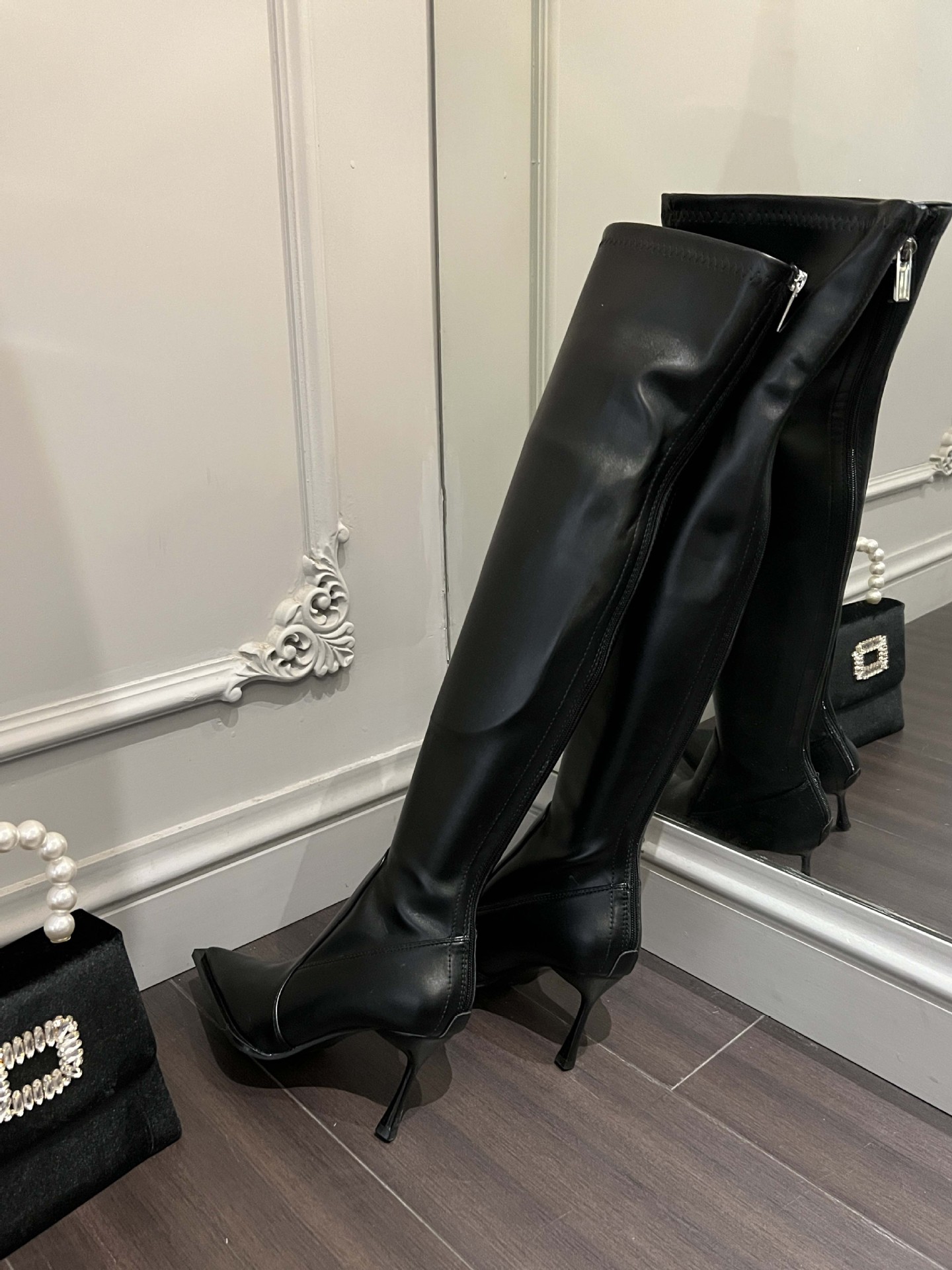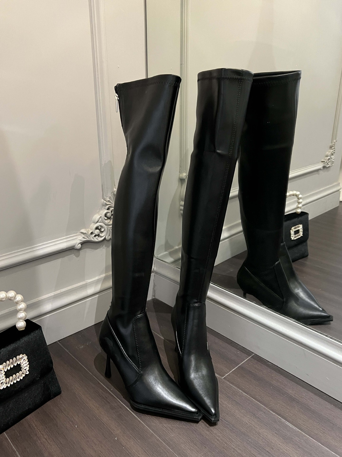 섹시한 스파이스 걸 오버 더 니 부츠 2023 새로운 가을과 겨울 여성용 부츠 뾰족한 힐 라이더 부츠 유럽과 미국 하이힐 부츠스토어 가기