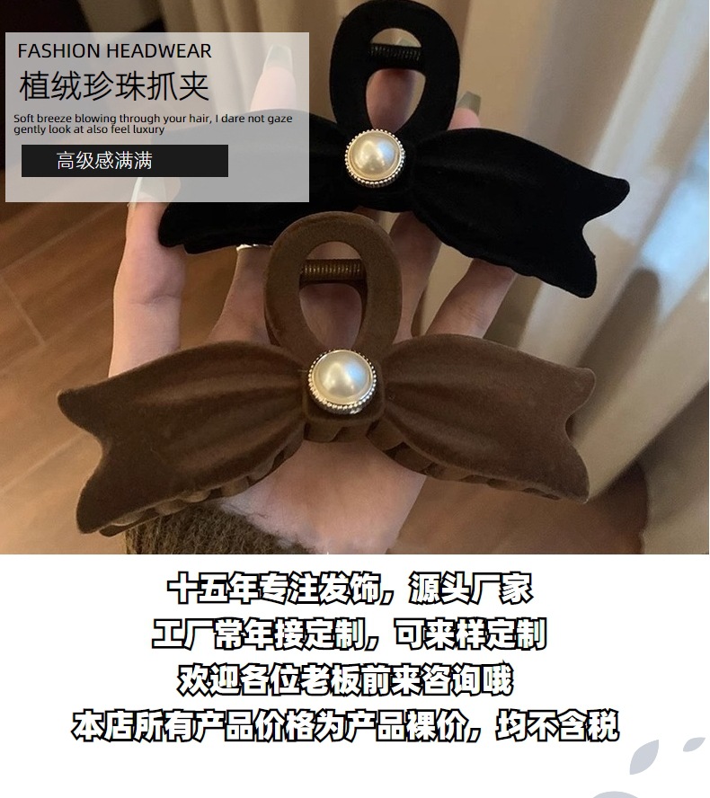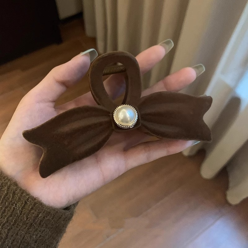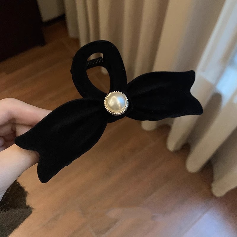 가을과 겨울 새로운 대형 프랑스 스타일 간단한 블랙 무리 진주 활 그랩 클립 모든 일치 우아한 머리 상어 클립스토어 가기