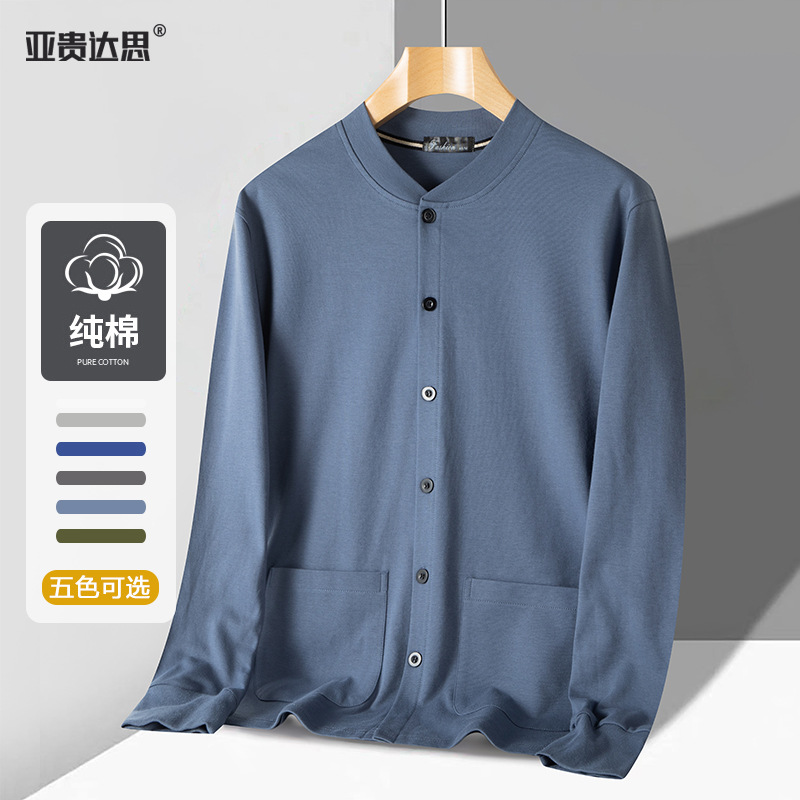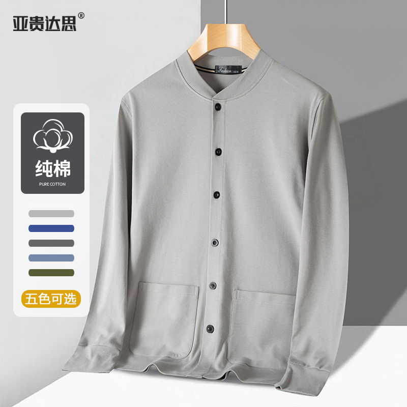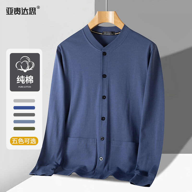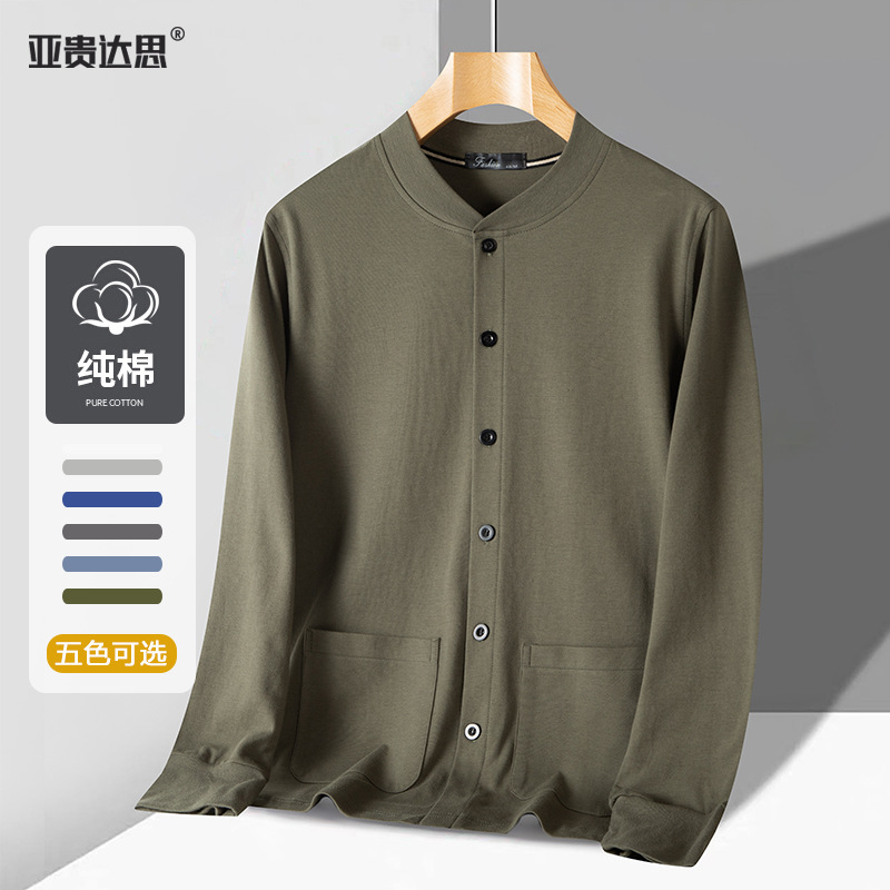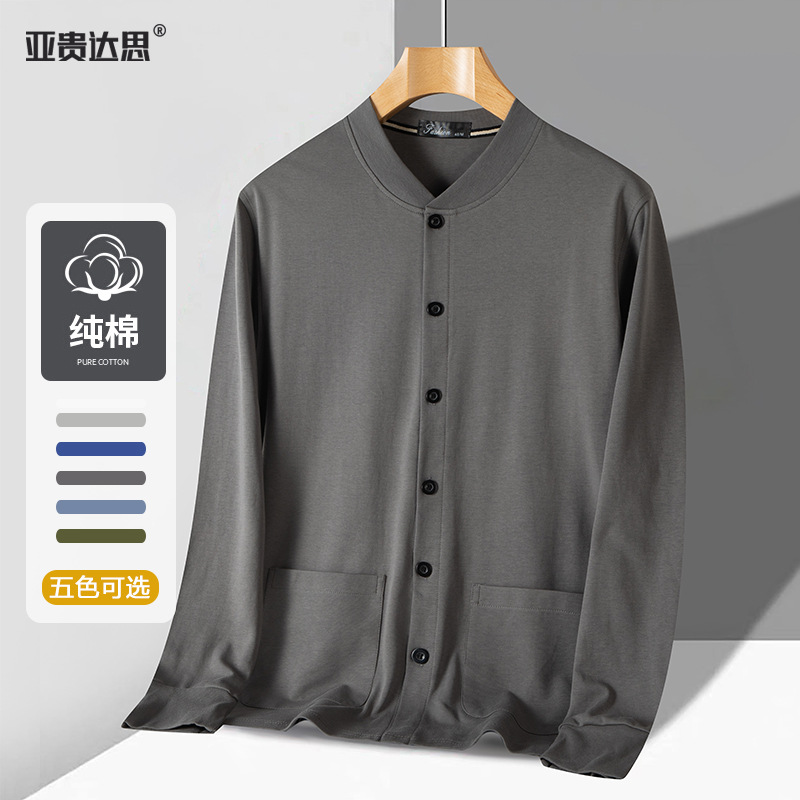 남성용 니트 셔츠 면 가디건 긴팔 티셔츠 캐주얼 루즈한 아웃웨어 아빠 옷 중년 및 노인 할아버지 면