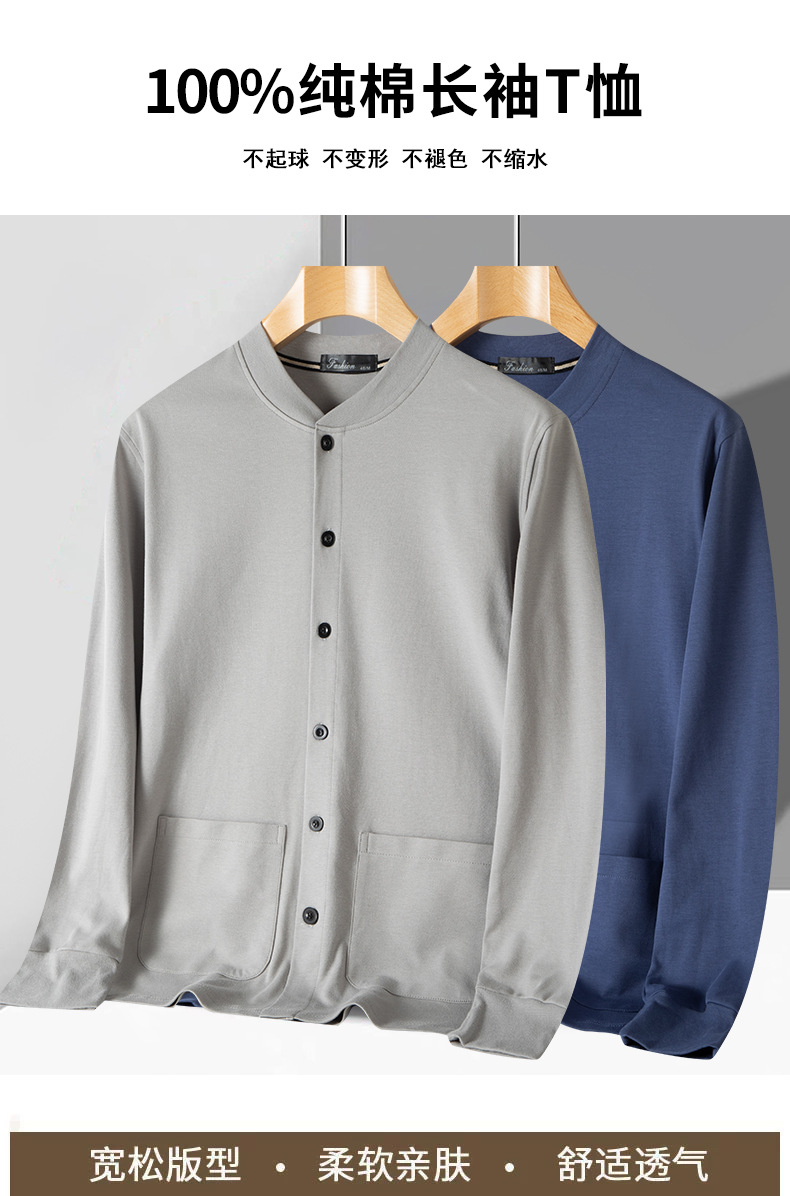 남성용 니트 셔츠 면 가디건 긴팔 티셔츠 캐주얼 루즈한 아웃웨어 아빠 옷 중년 및 노인 할아버지 면스토어 가기