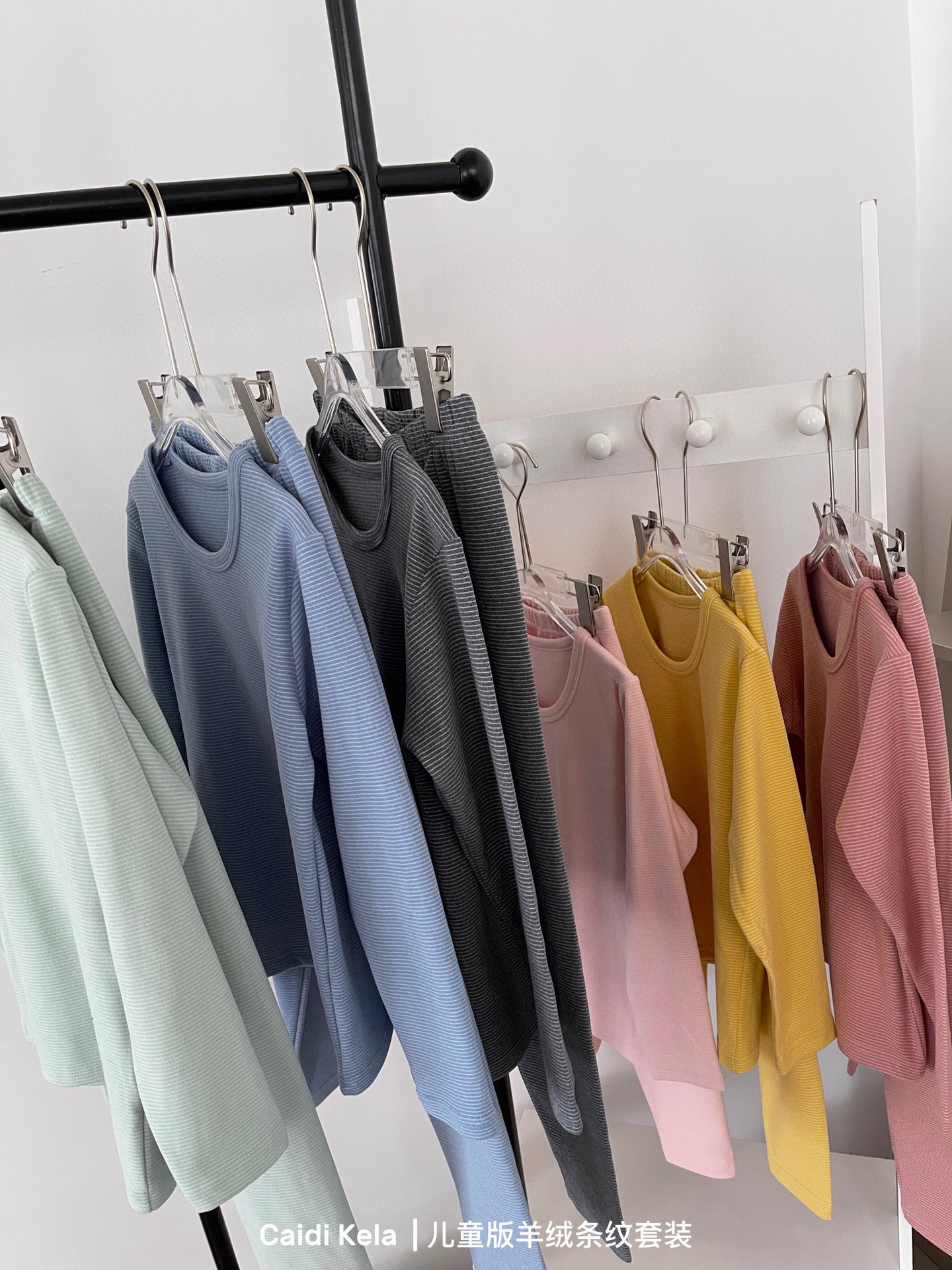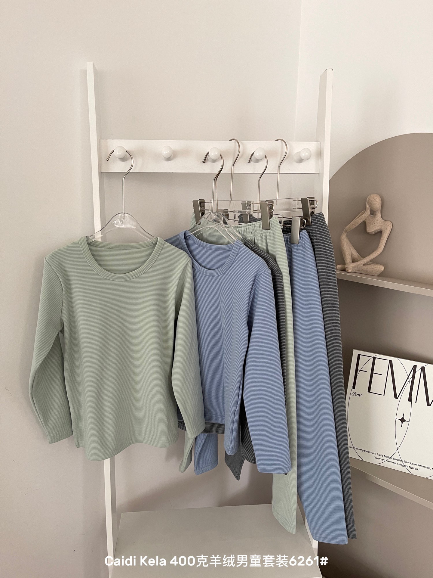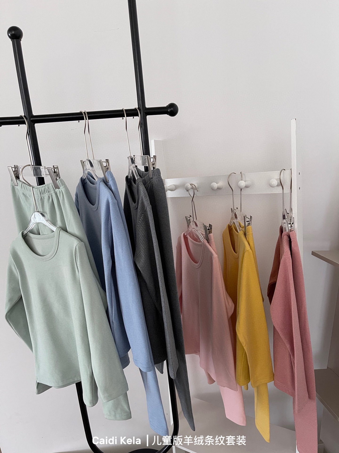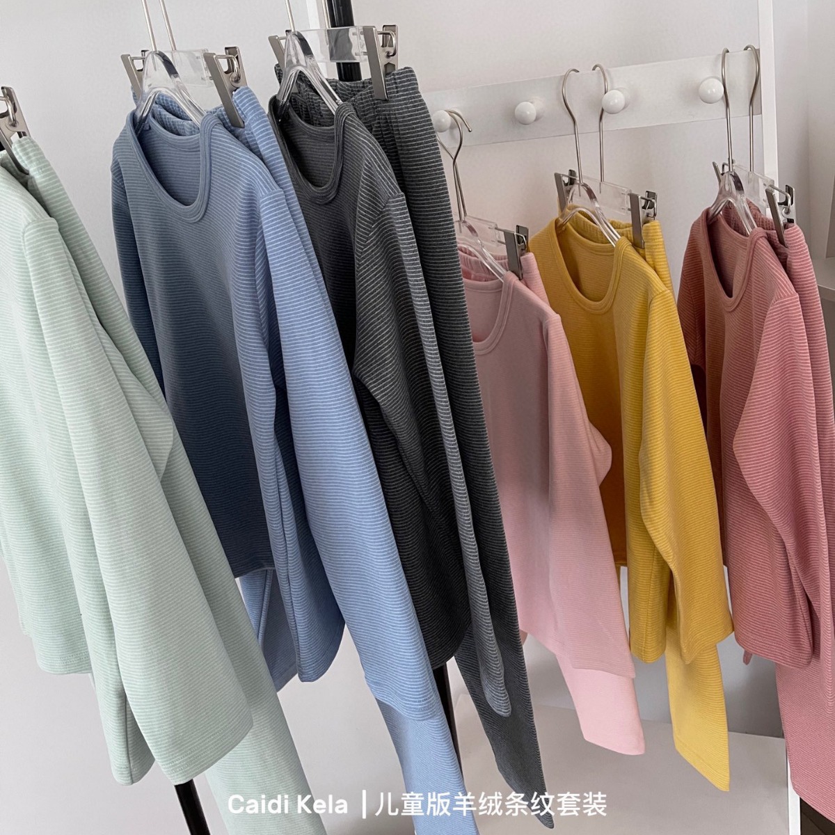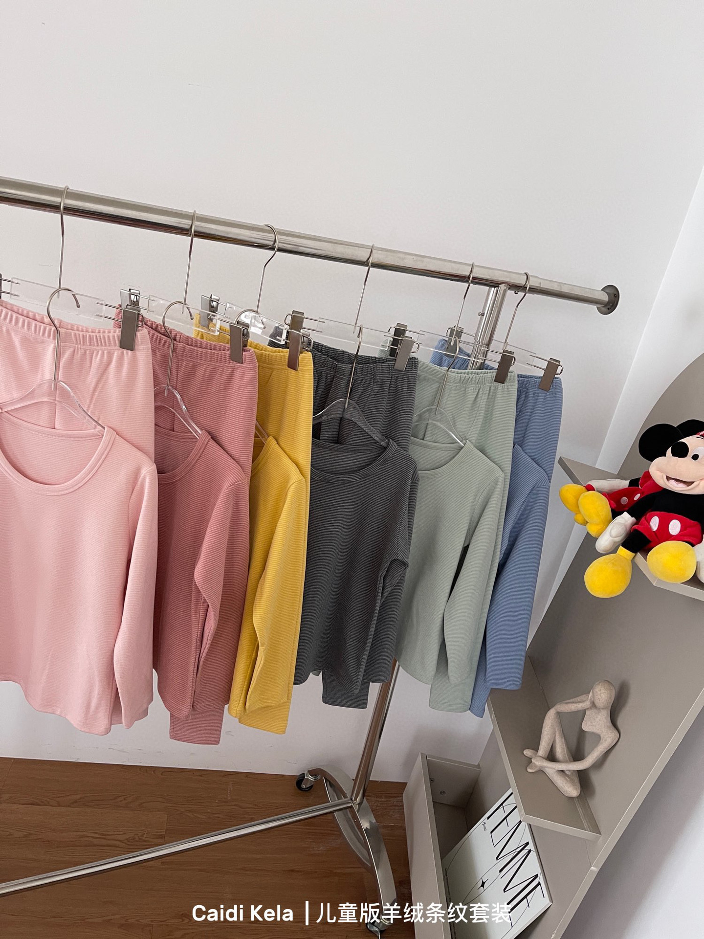 남성과 여성의 어린이 버전 양면 캐시미어 줄무늬 세트 따뜻한 홈 옷 드 벨벳 기모 기본 속옷스토어 가기