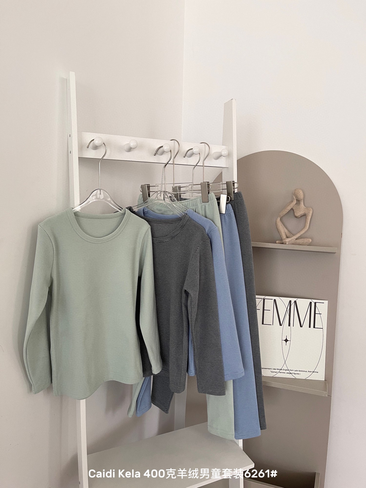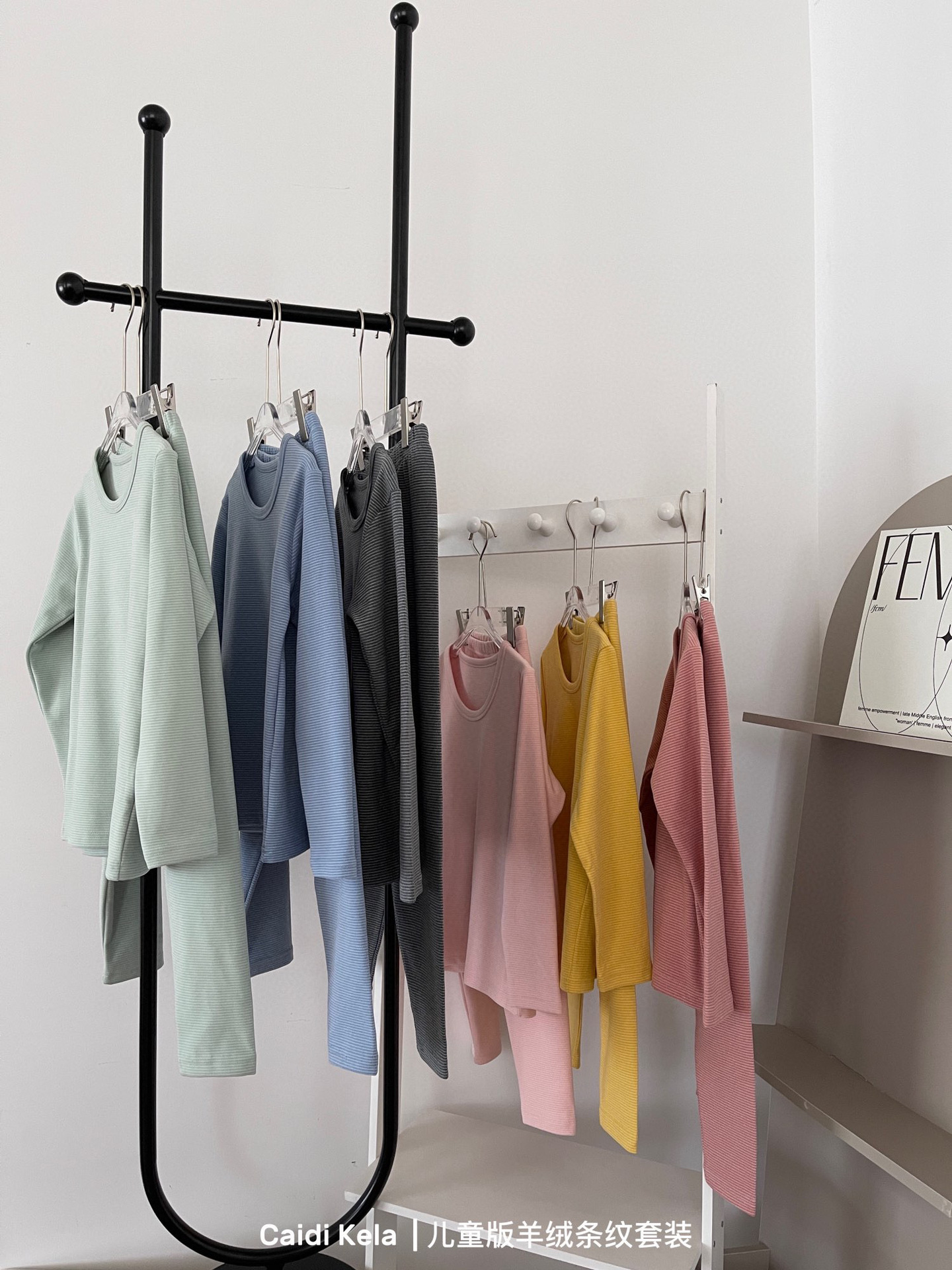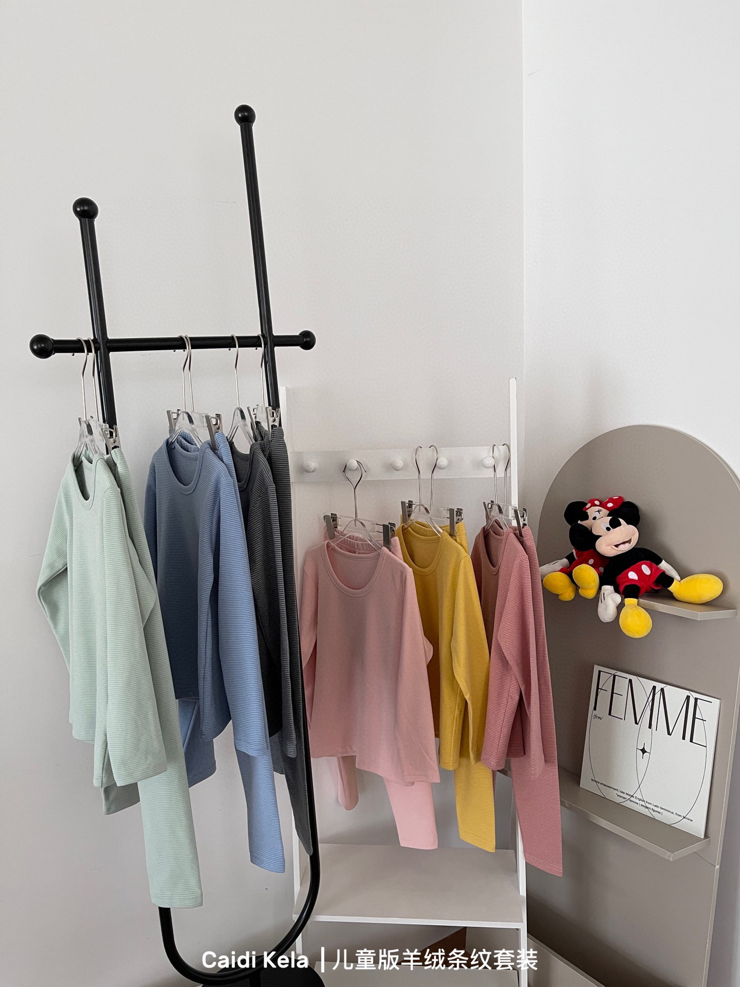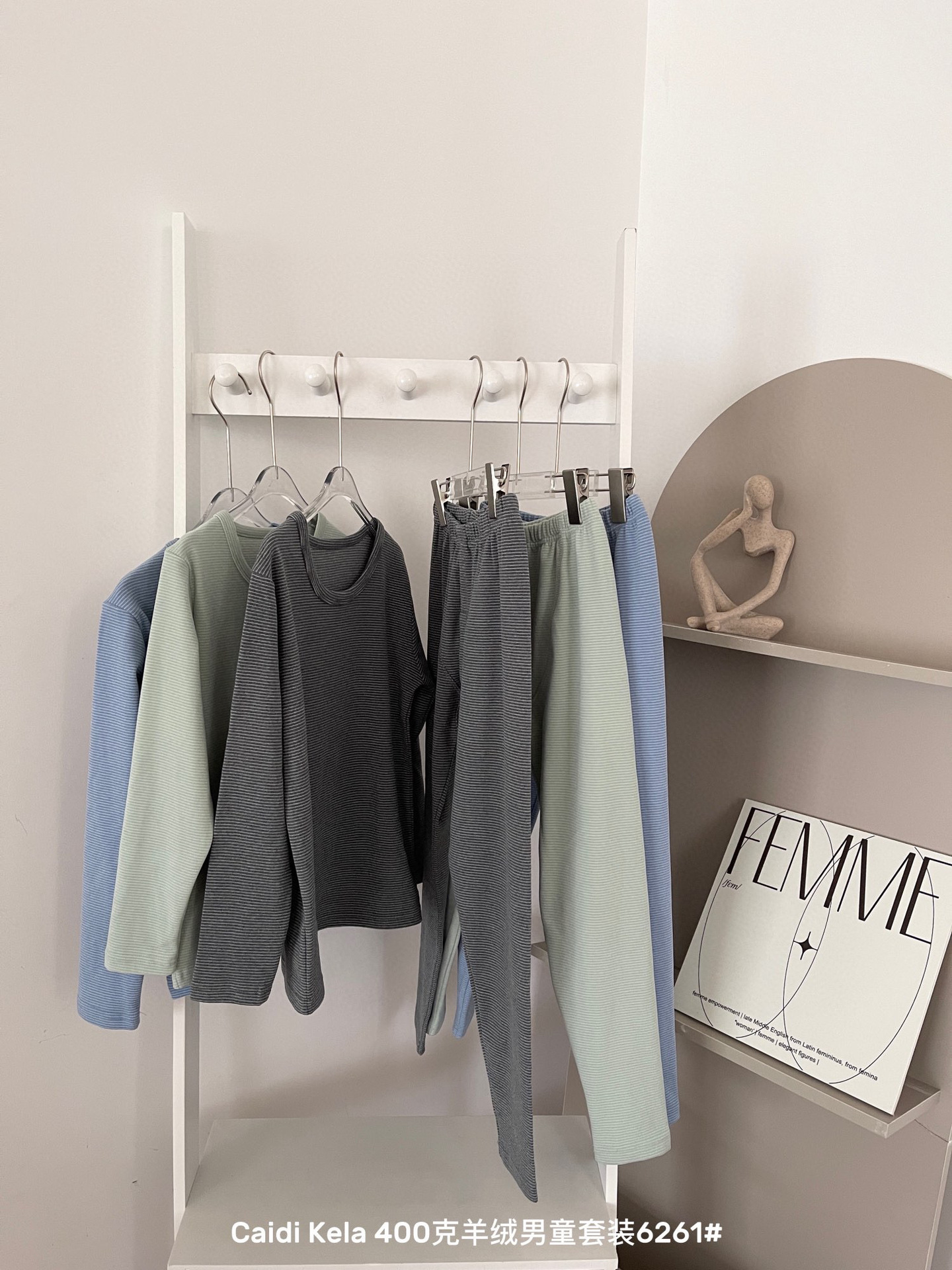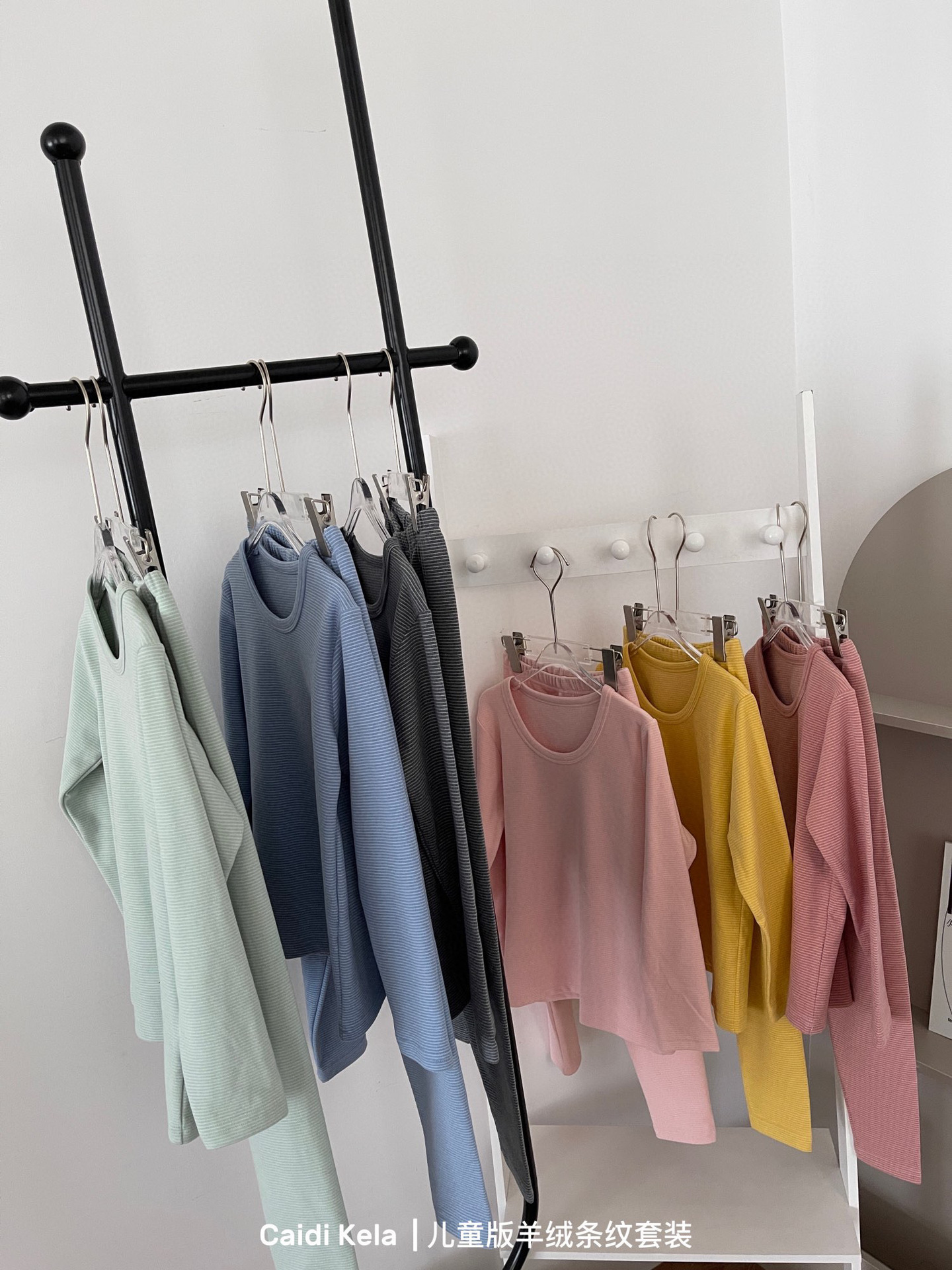 남성과 여성의 어린이 버전 양면 캐시미어 줄무늬 세트 따뜻한 홈 옷 드 벨벳 기모 기본 속옷스토어 가기