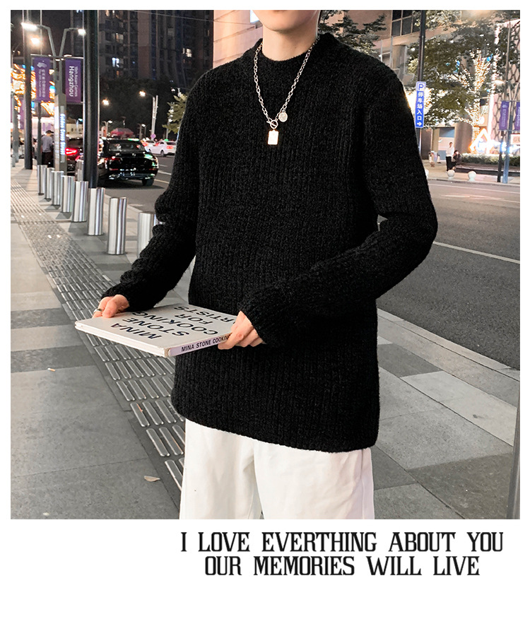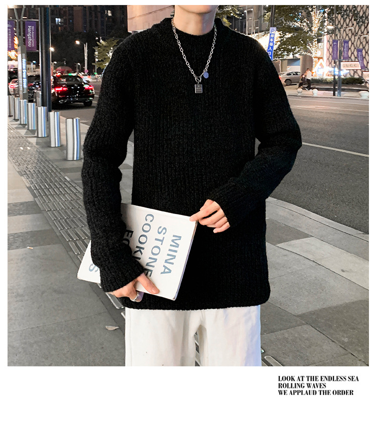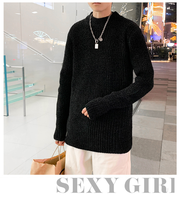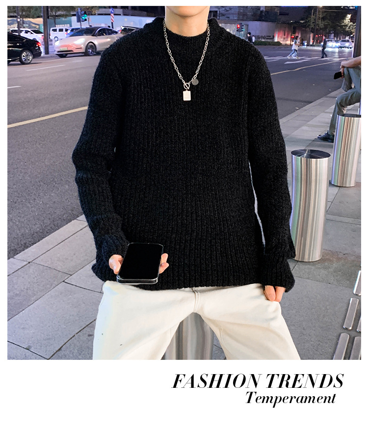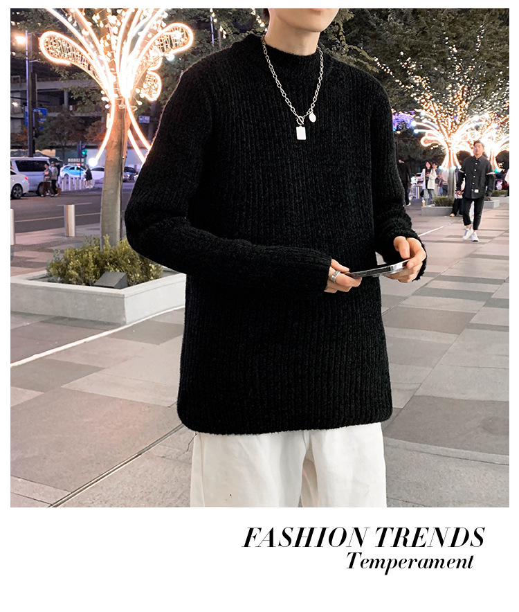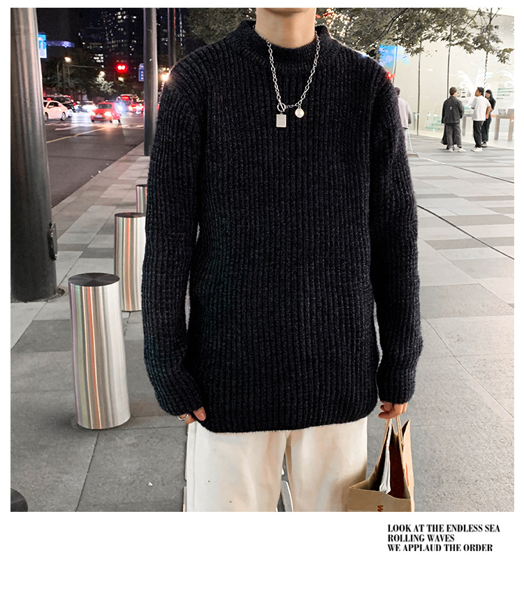 트렌디 브랜드 2023 새로운 스웨터 남성용 슬림핏 만능 스웨터 캐주얼 청소년 트렌디 세미 하이 칼라 스웨터스토어 가기