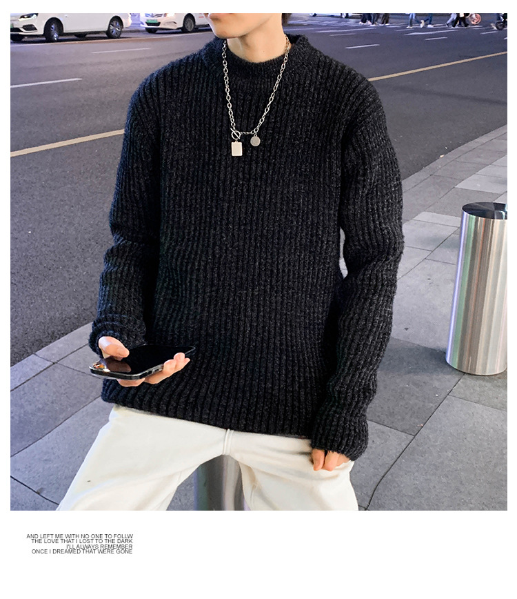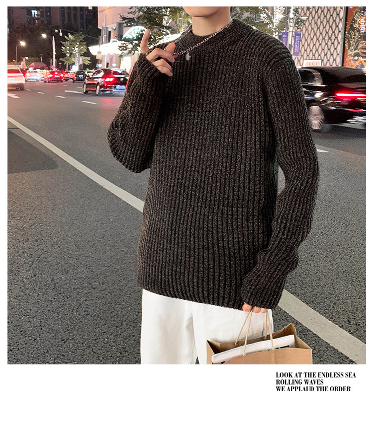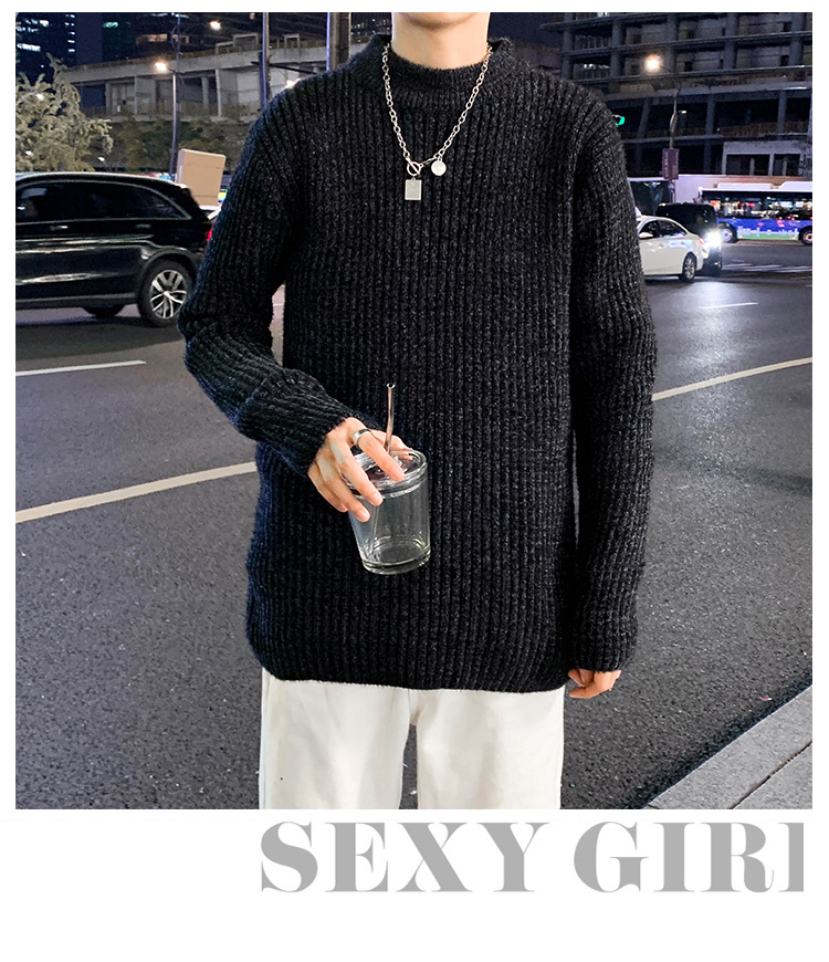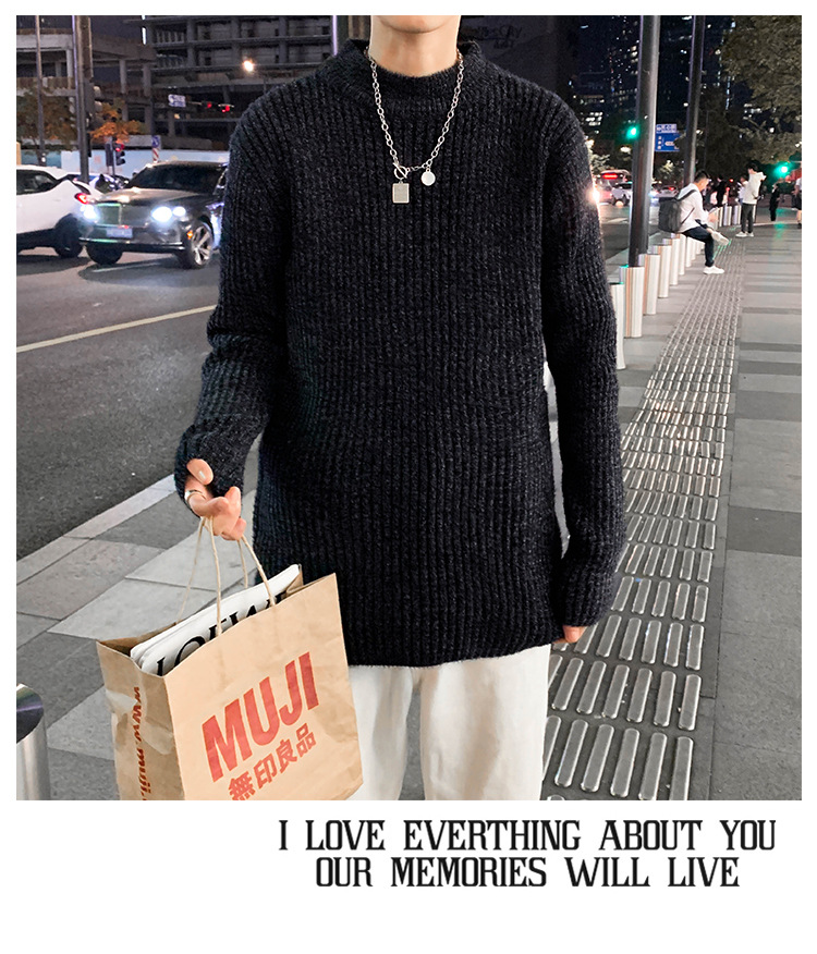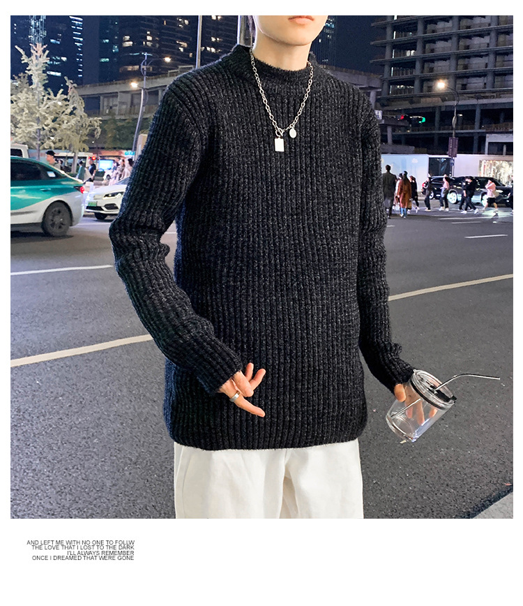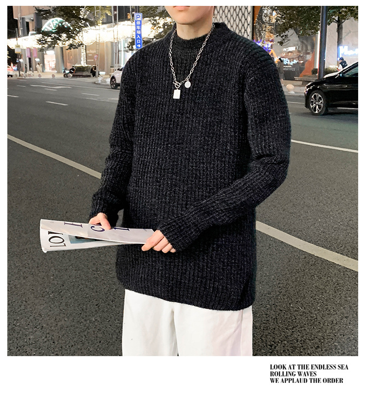 트렌디 브랜드 2023 새로운 스웨터 남성용 슬림핏 만능 스웨터 캐주얼 청소년 트렌디 세미 하이 칼라 스웨터스토어 가기