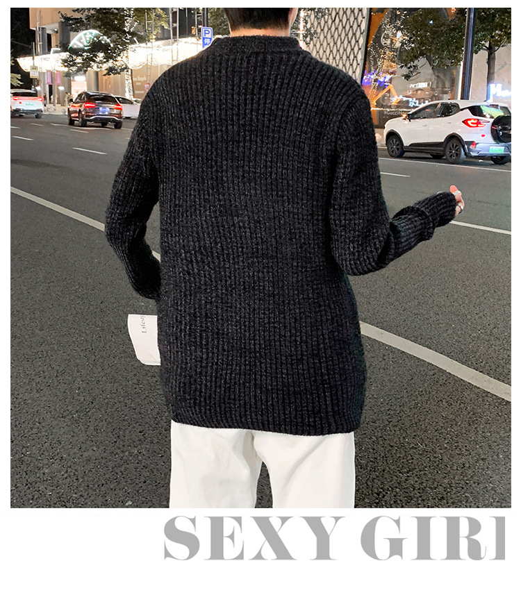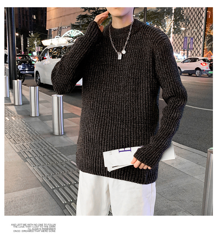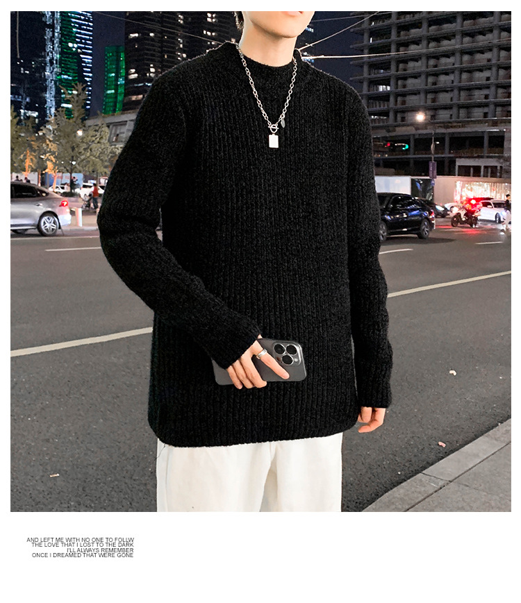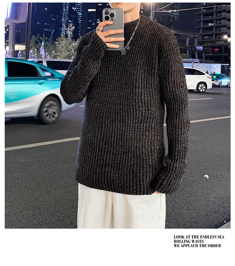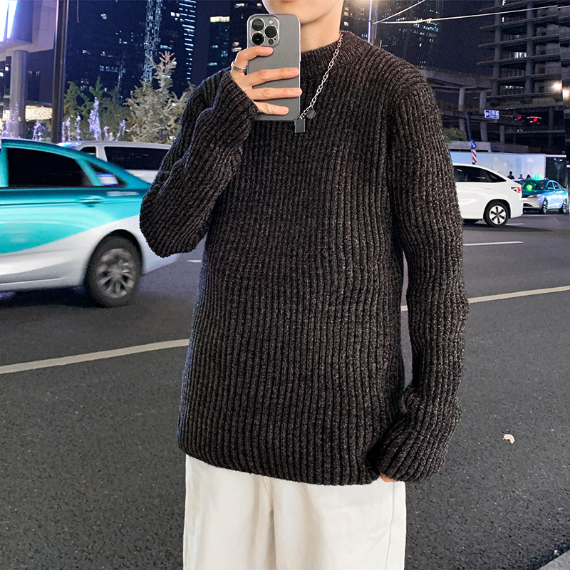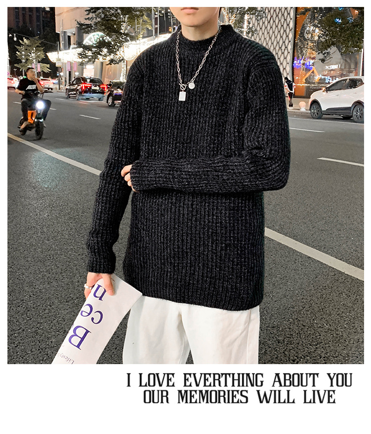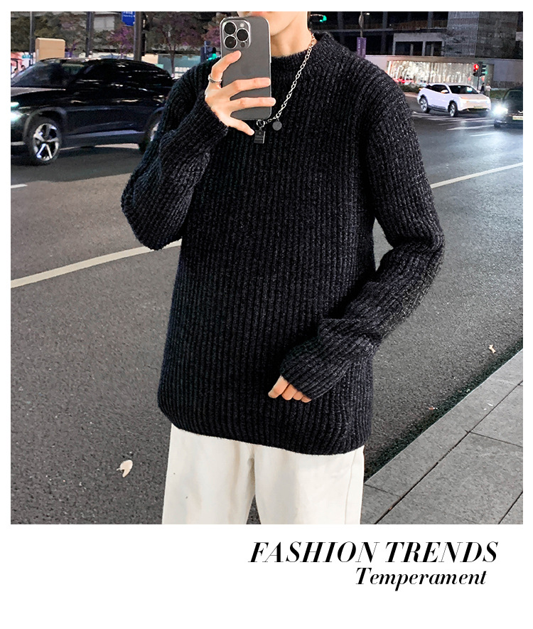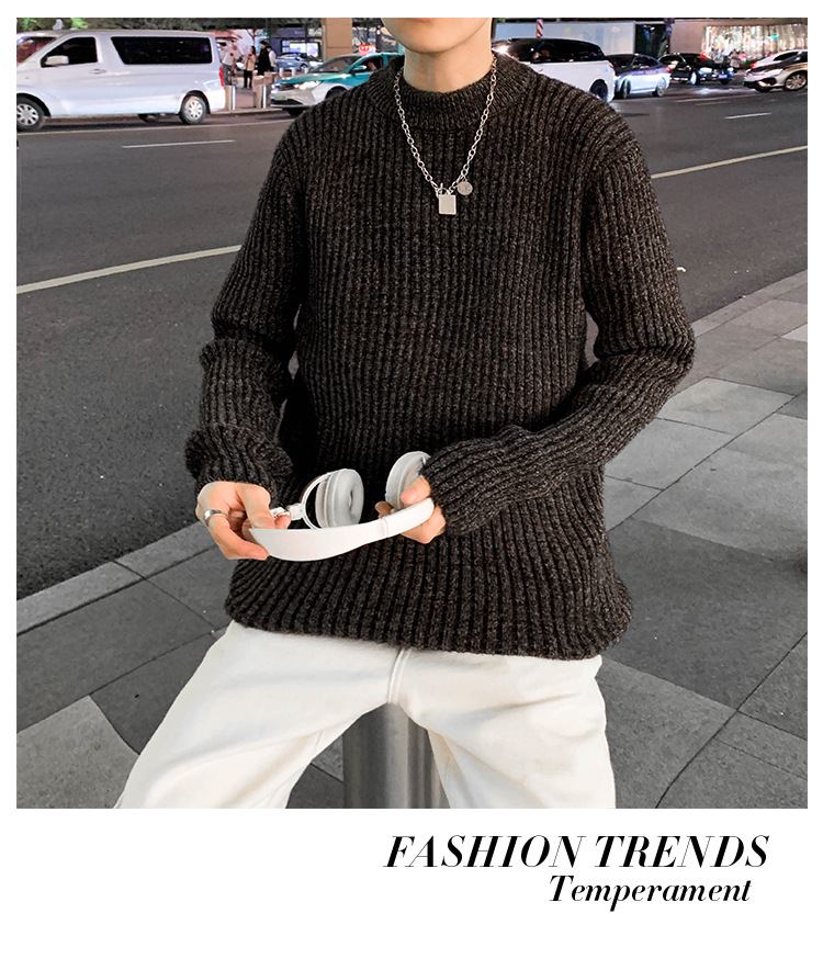 트렌디 브랜드 2023 새로운 스웨터 남성용 슬림핏 만능 스웨터 캐주얼 청소년 트렌디 세미 하이 칼라 스웨터