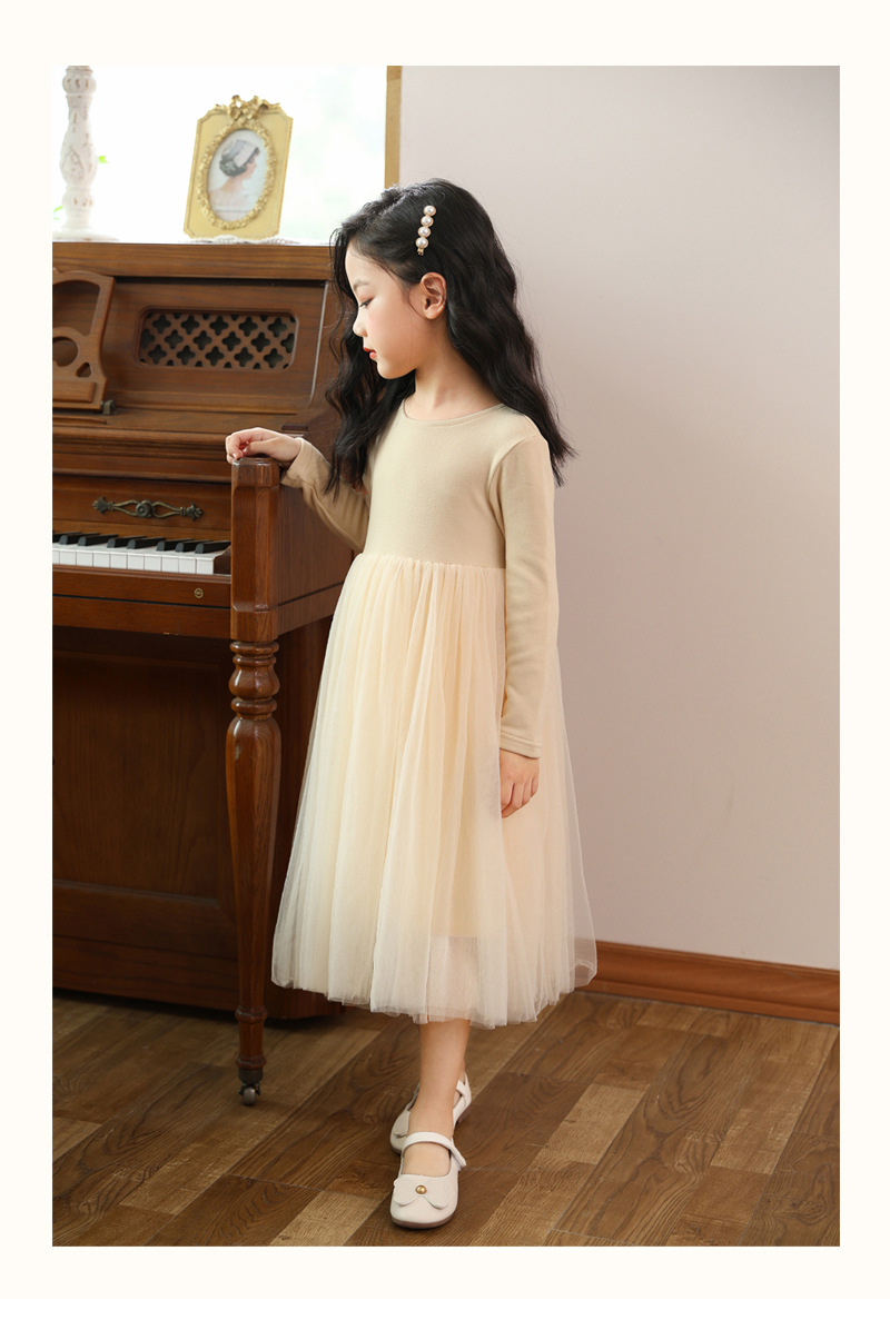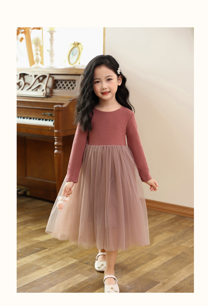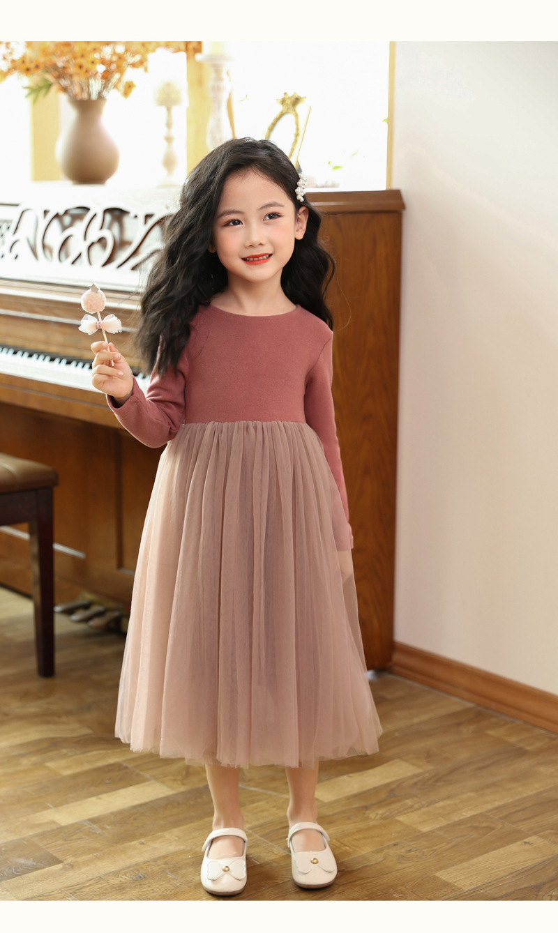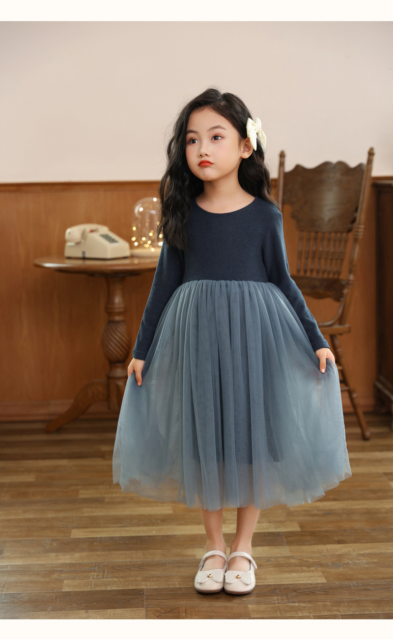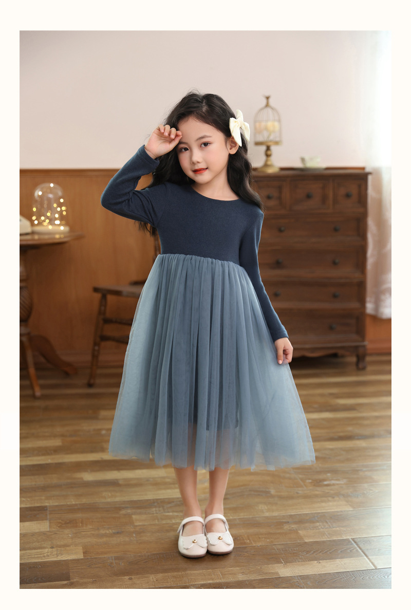여자 가을과 겨울 원피스 2023 한국 스타일 새로운 어린이 서양 스타일 공주 원피스 중간과 큰 어린이의 우아한 메쉬 원피스